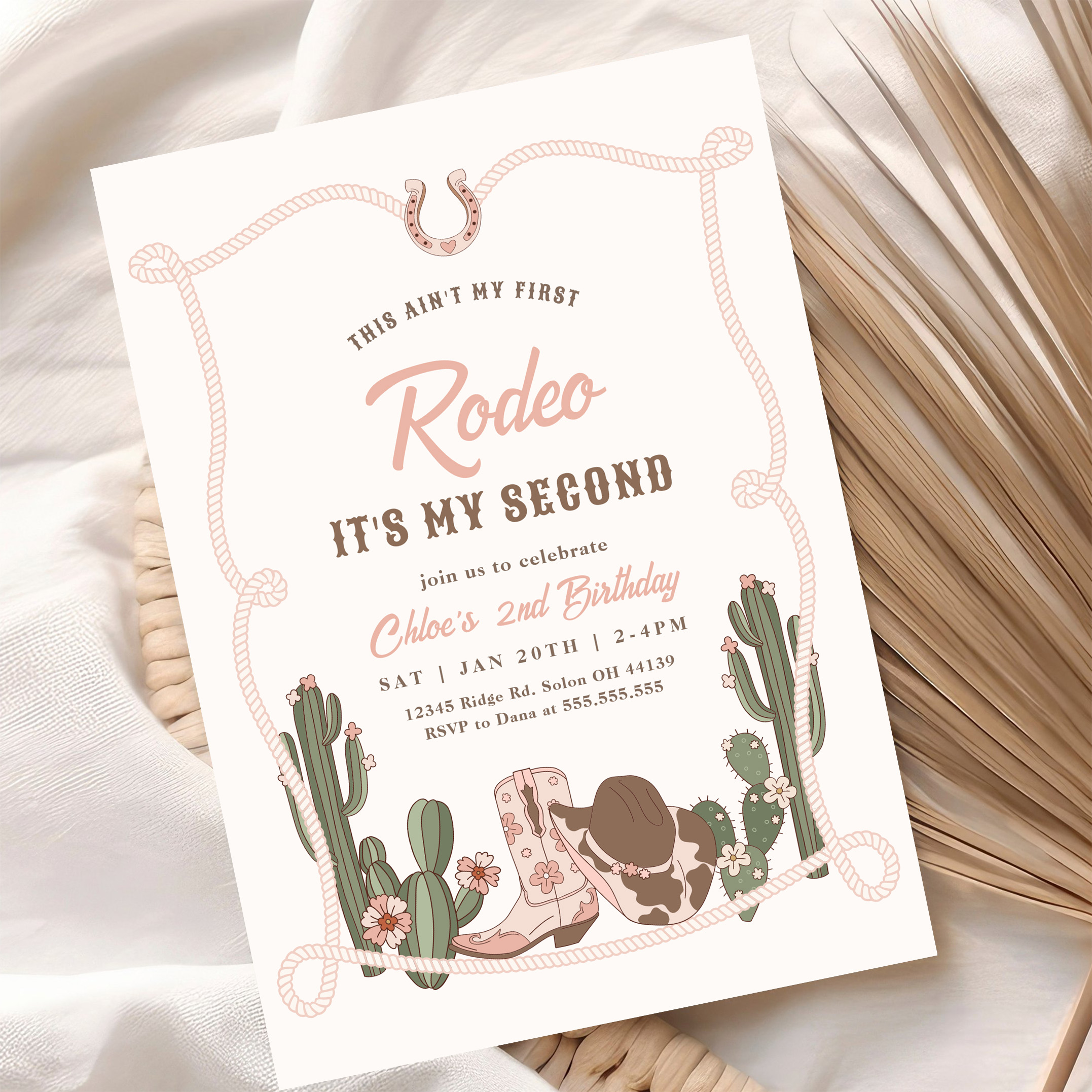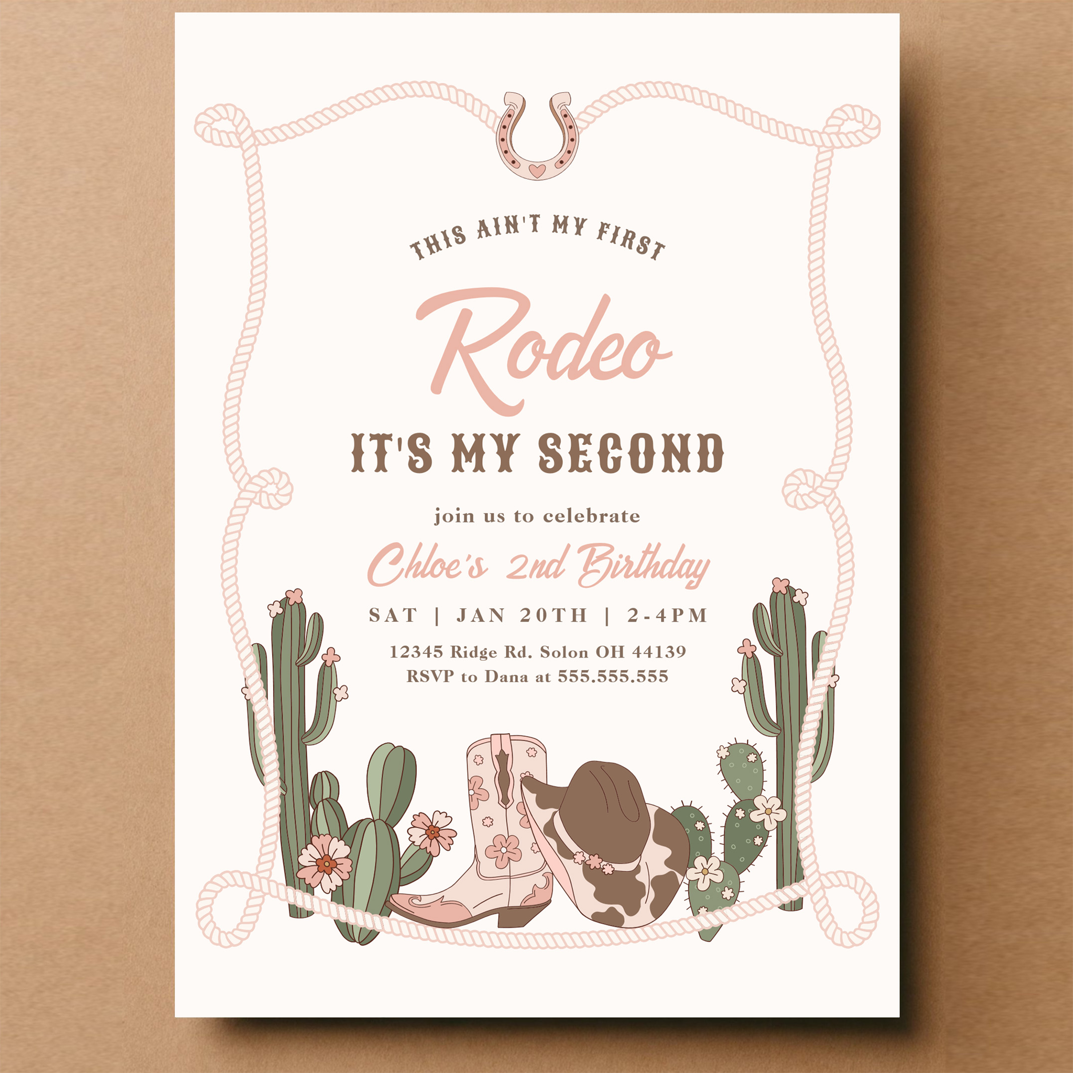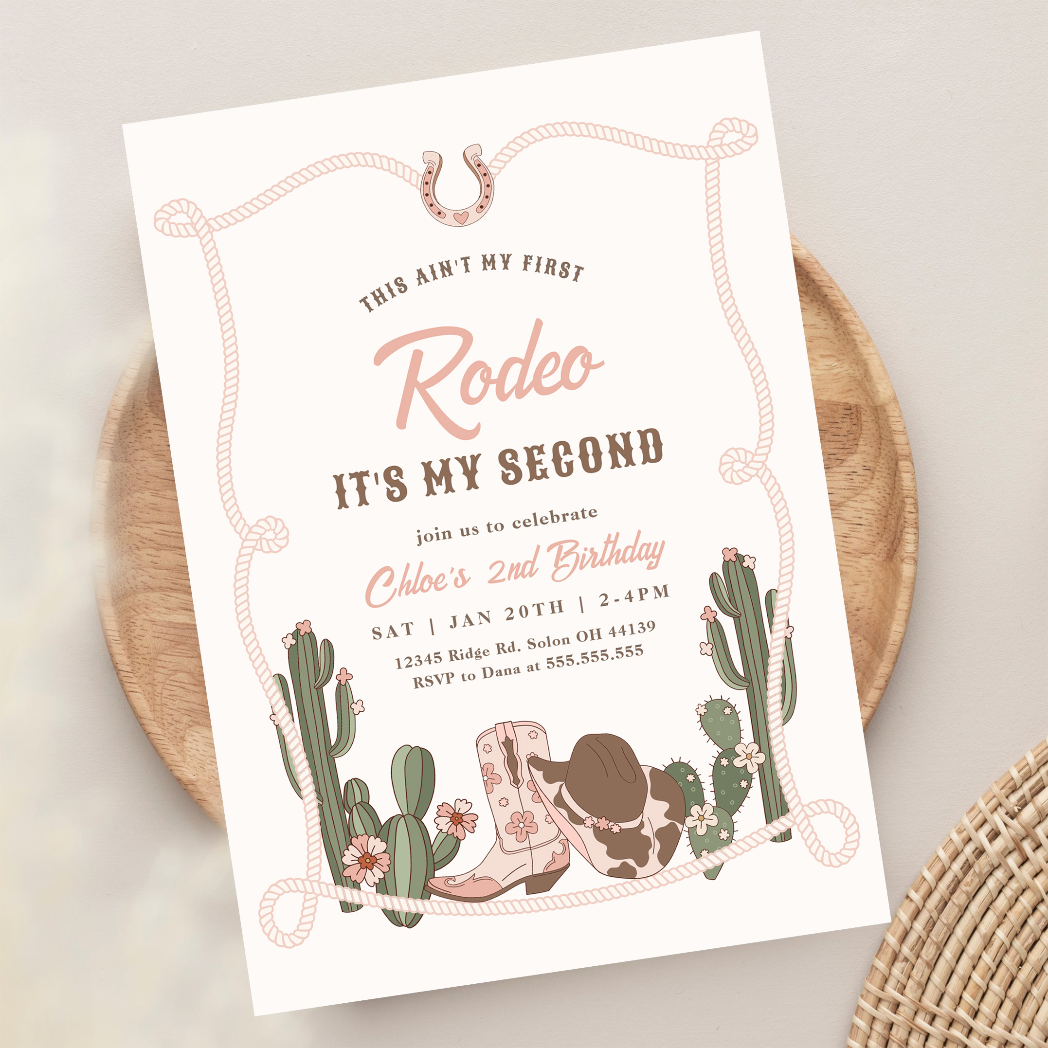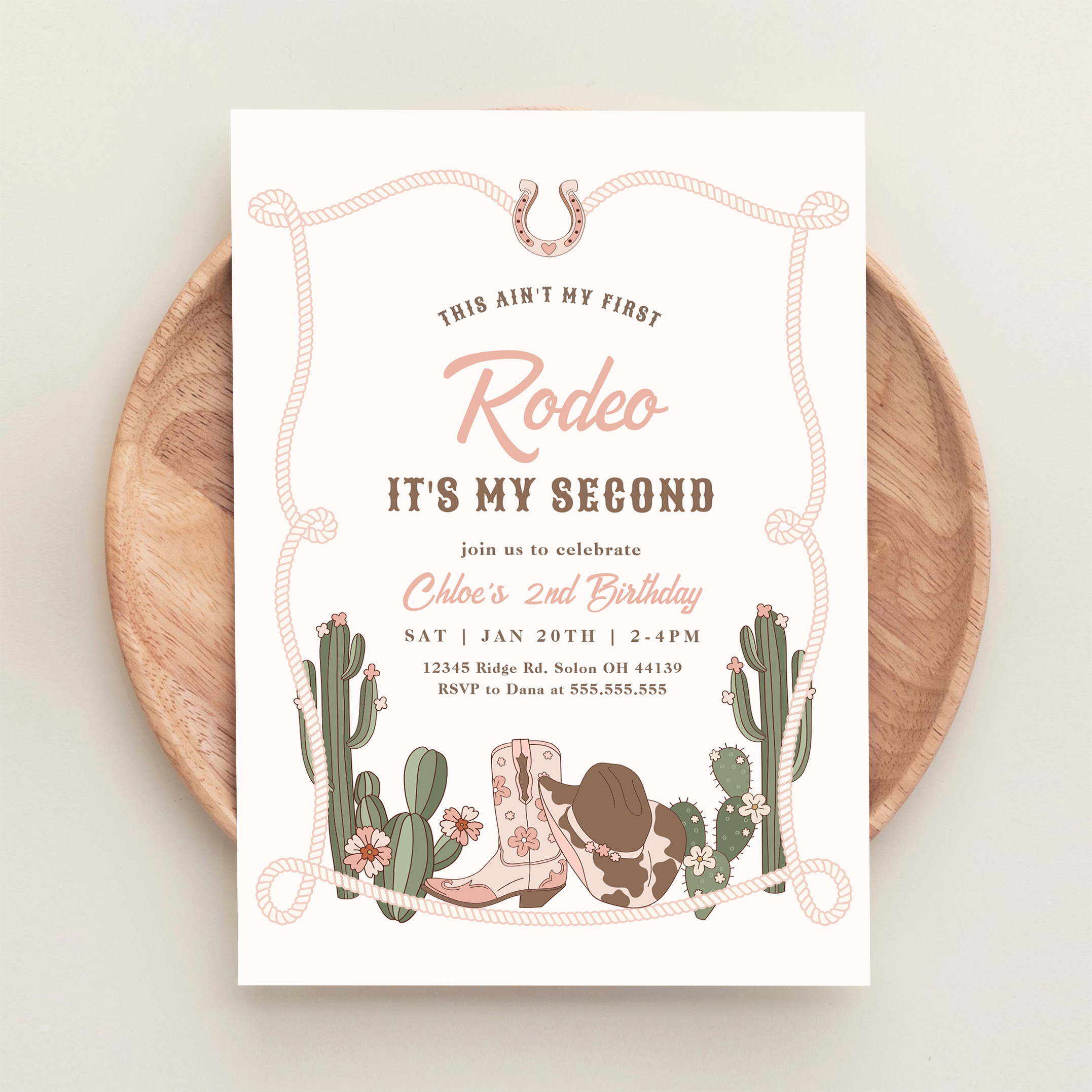 Second Rodeo Wild West Cowgirl 2nd Rodeo Birthday Invitation