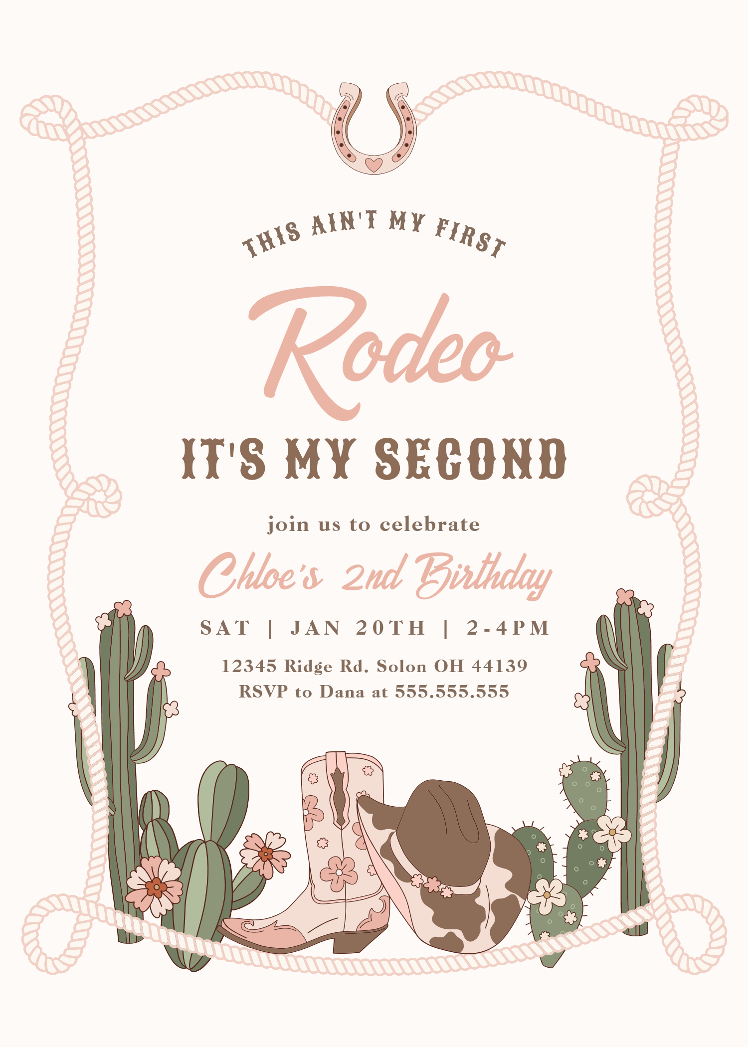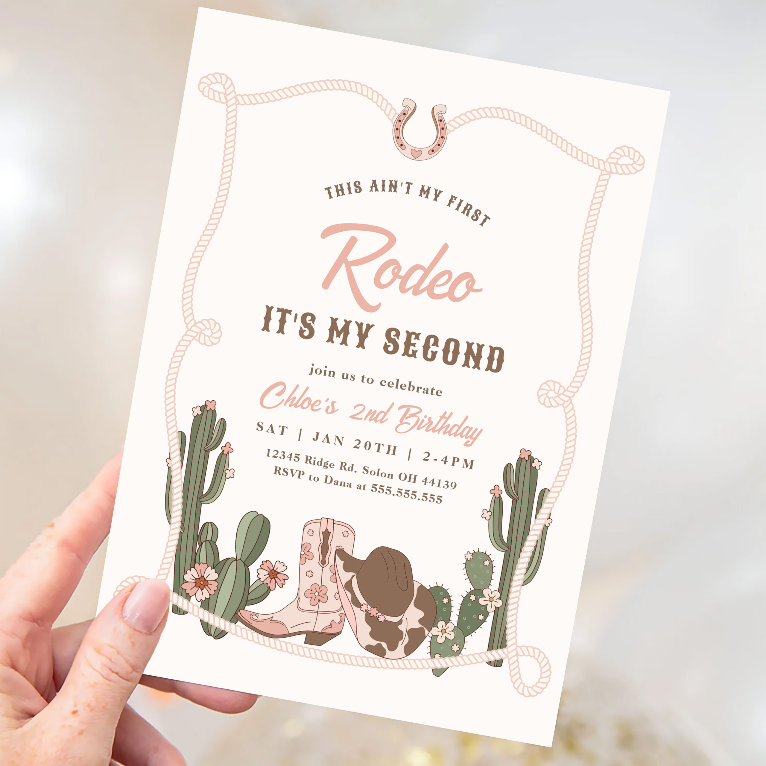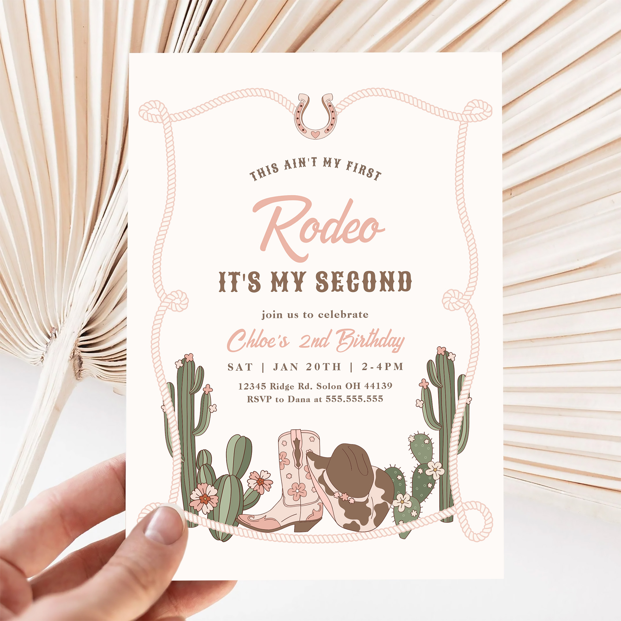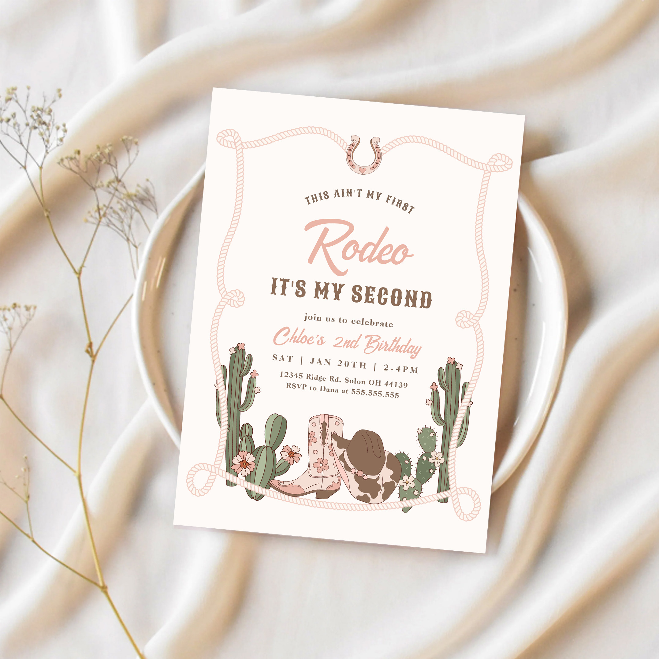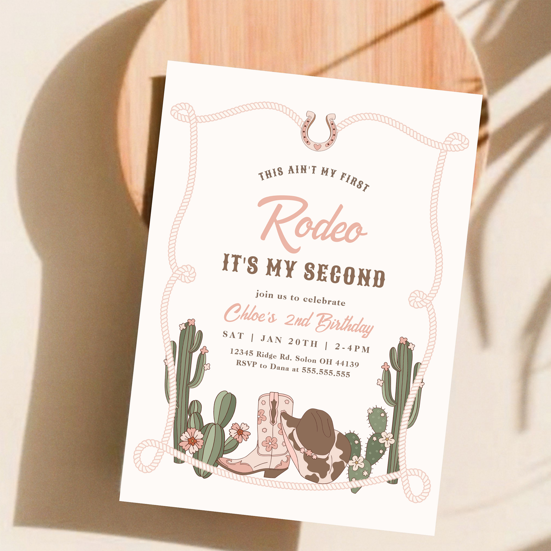 Second Rodeo Wild West Cowgirl 2nd Rodeo Birthday Invitation