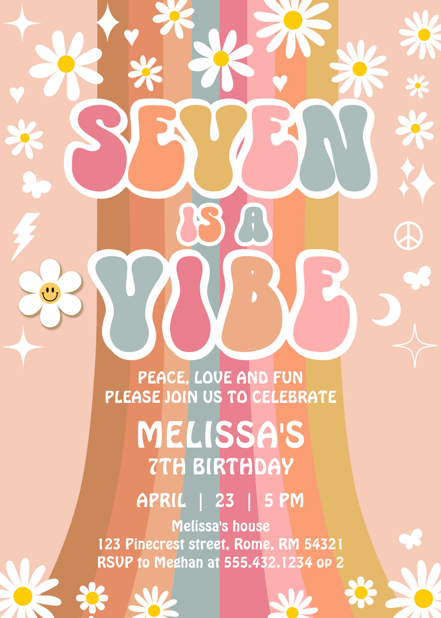 Seven Is A Vibe Rainbow Groovy 7th Birthday Invitation