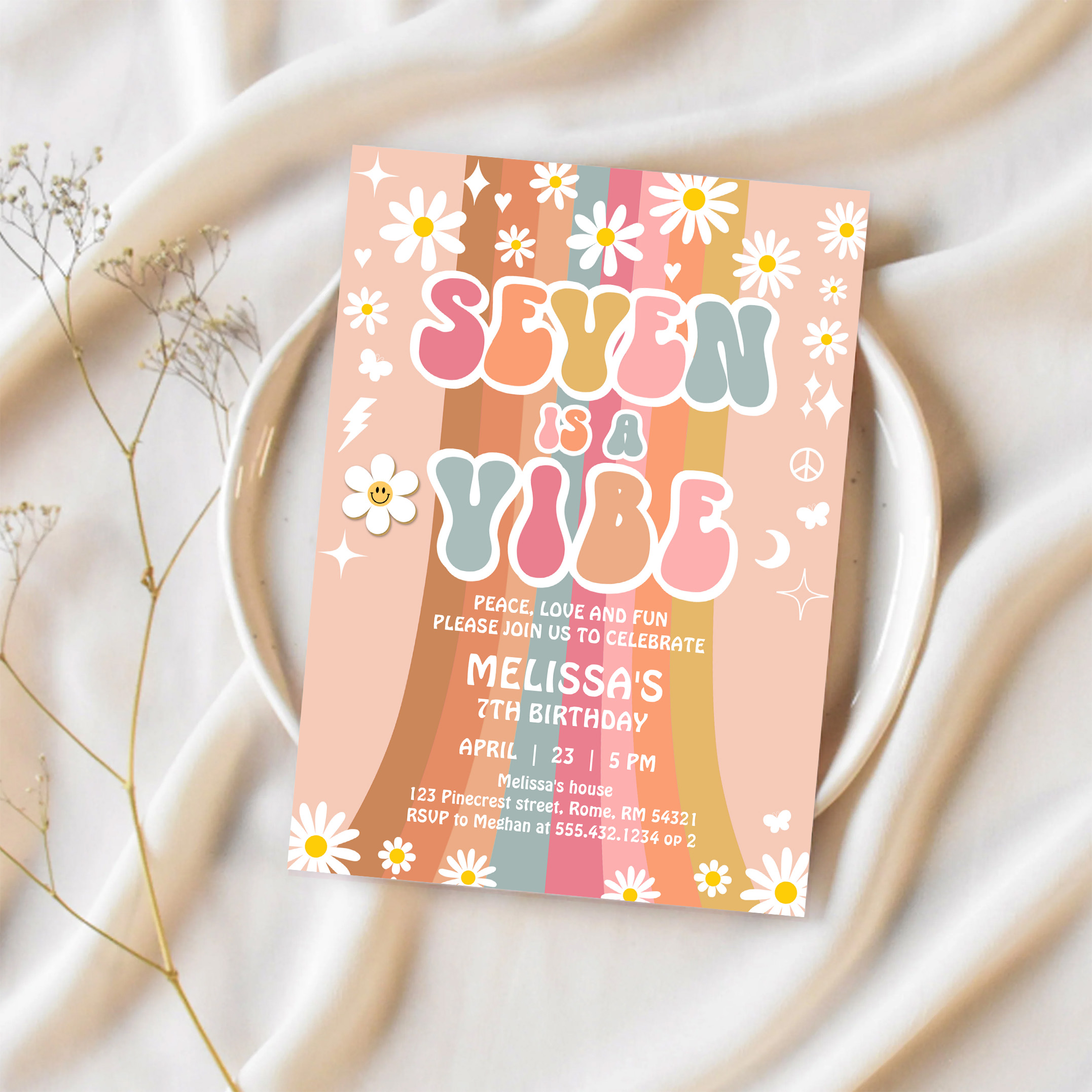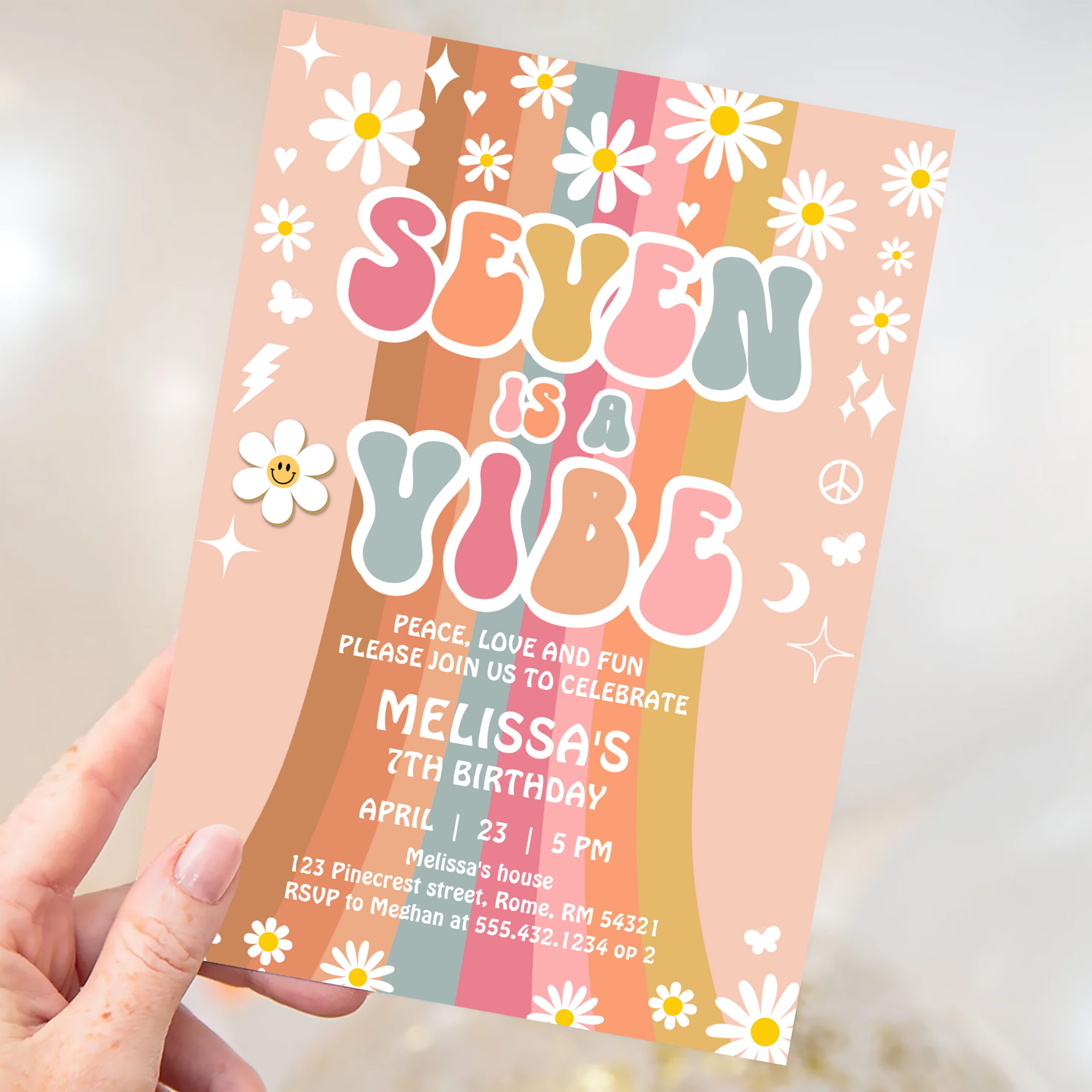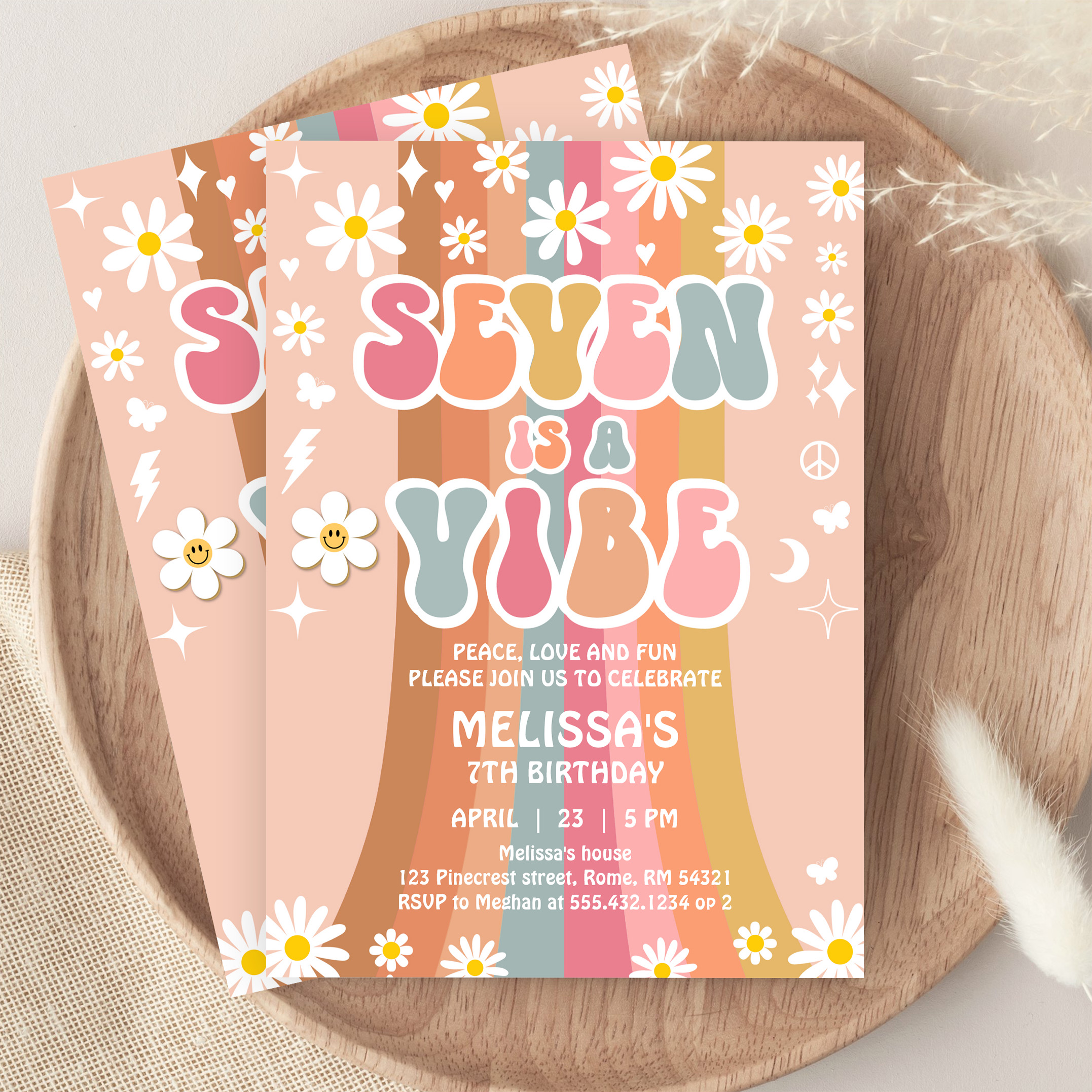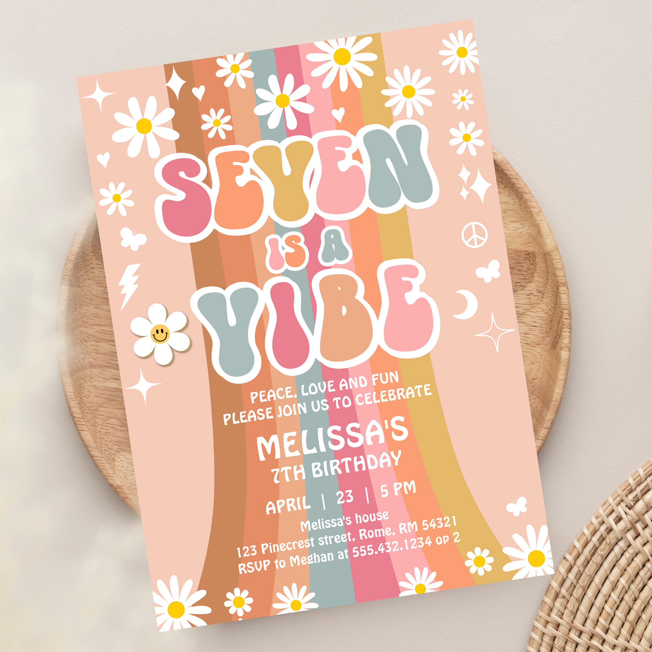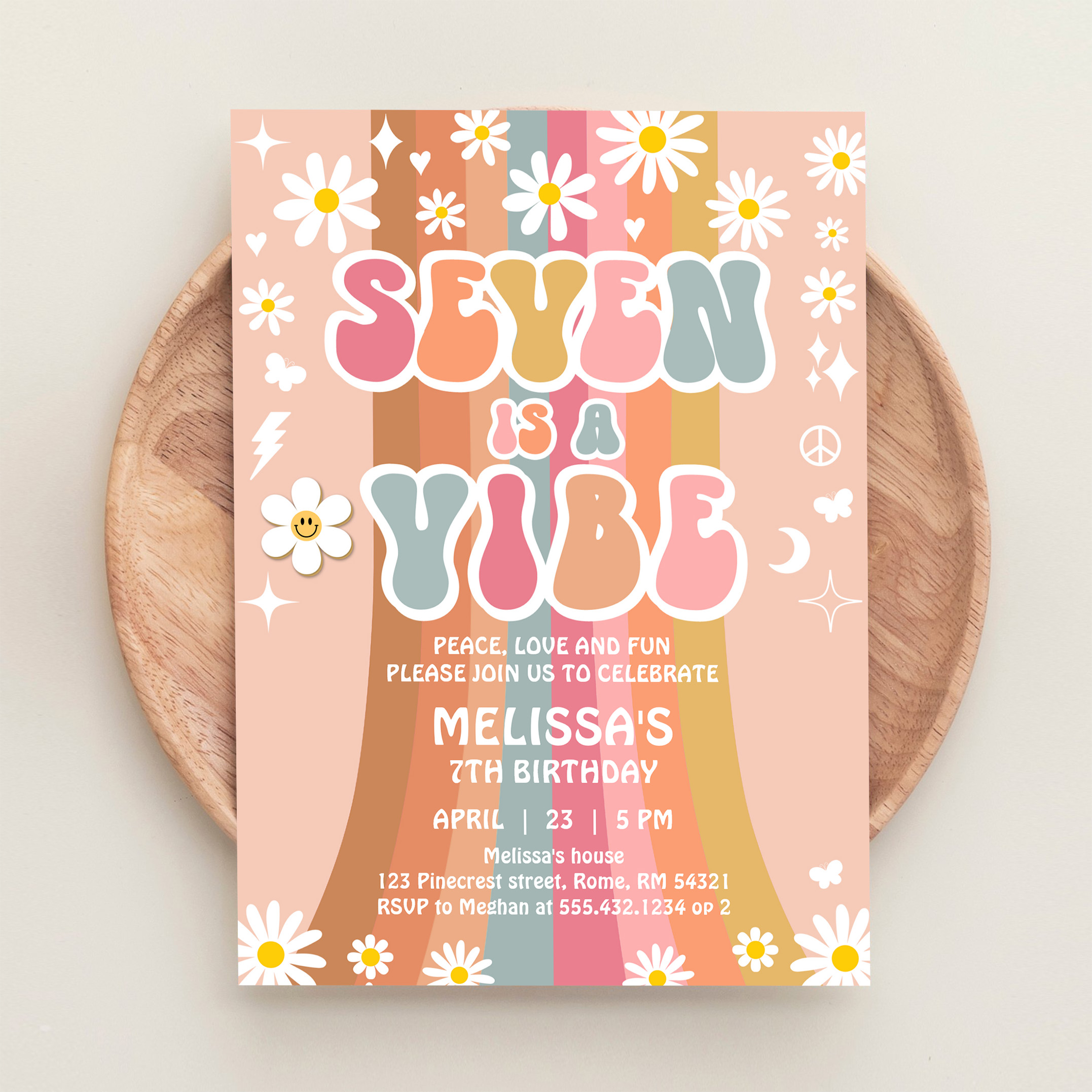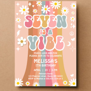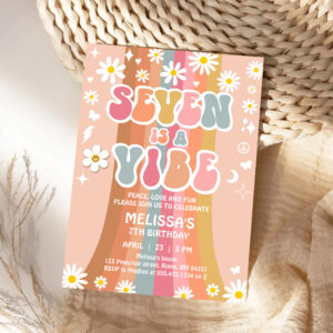 Seven Is A Vibe Rainbow Groovy 7th Birthday Invitation - Related products