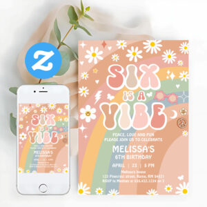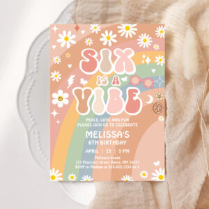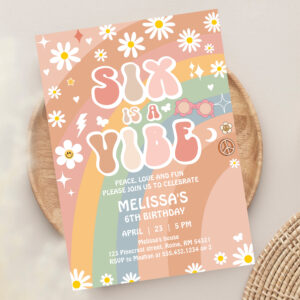 Six Is A Vibe Groovy Retro 70S 6th Birthday Invitation - Related products