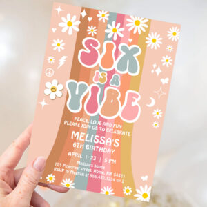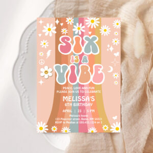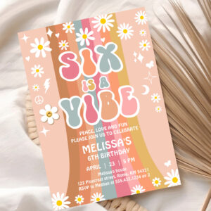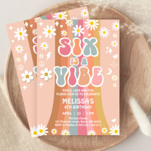 Six Is A Vibe Rainbow Retro Groovy 6th Birthday Invitation - Related products