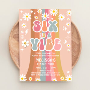 Six Is A Vibe Rainbow Retro Groovy 6th Birthday Invitation