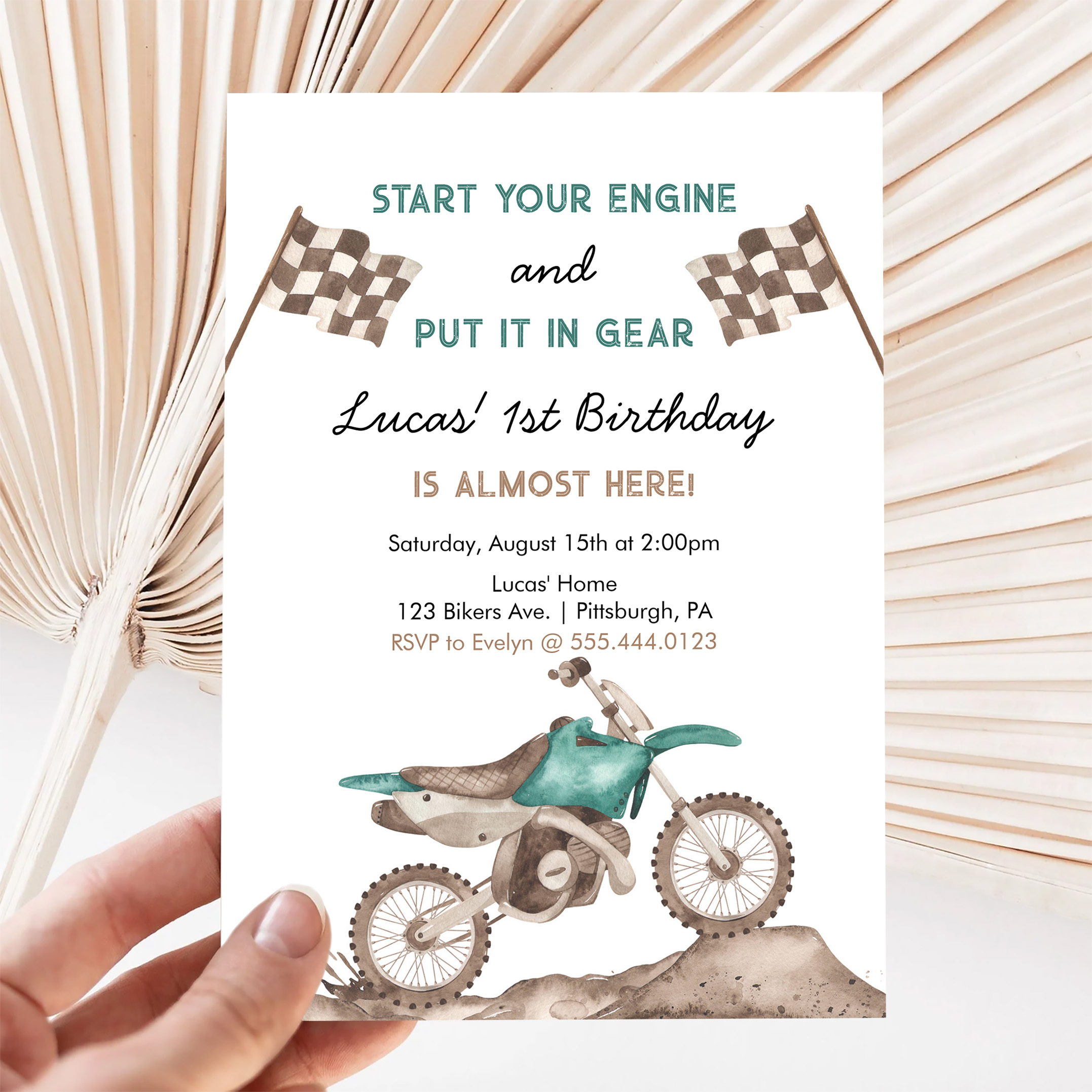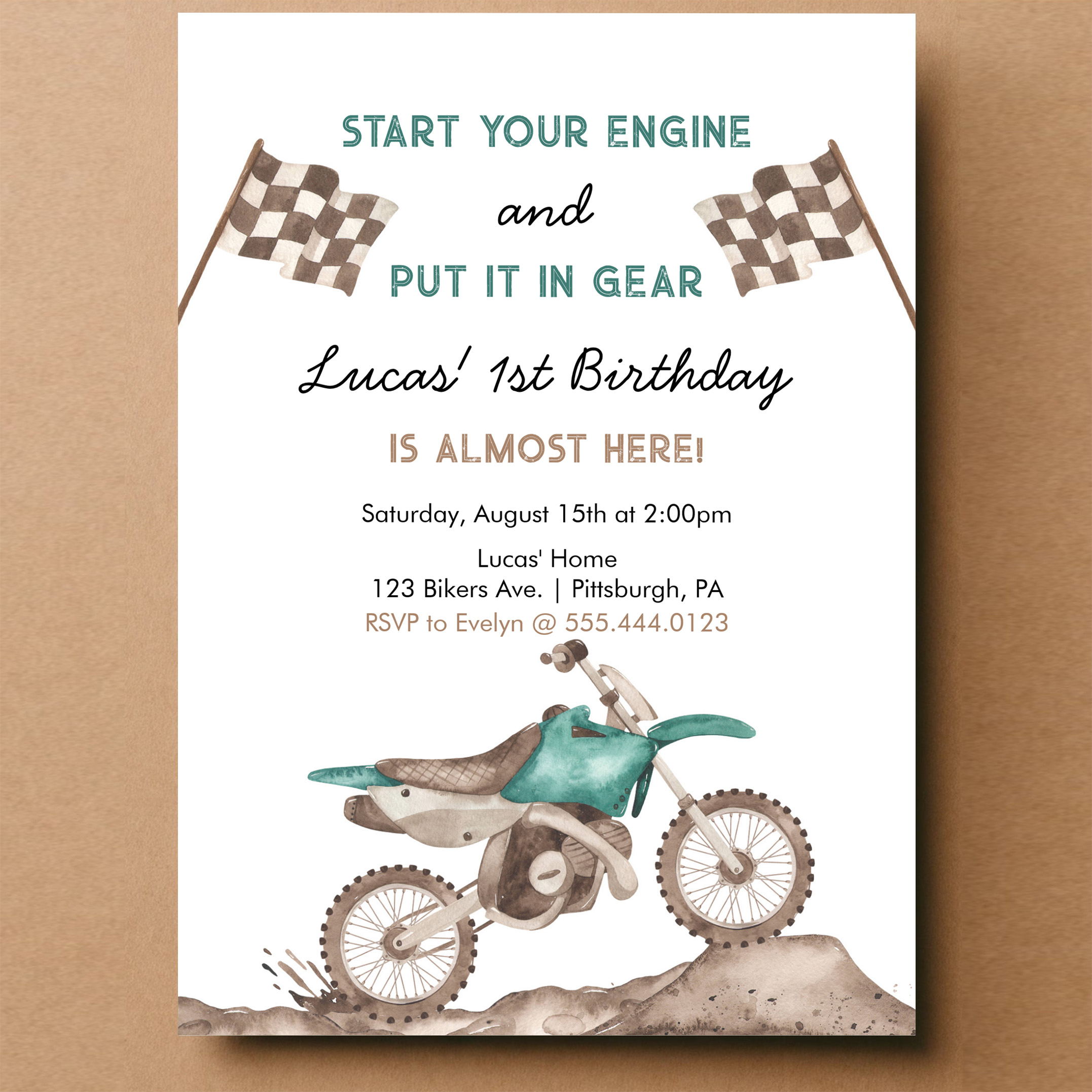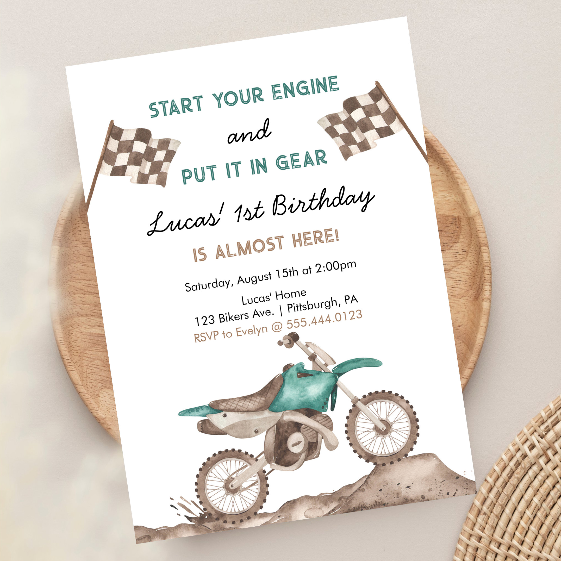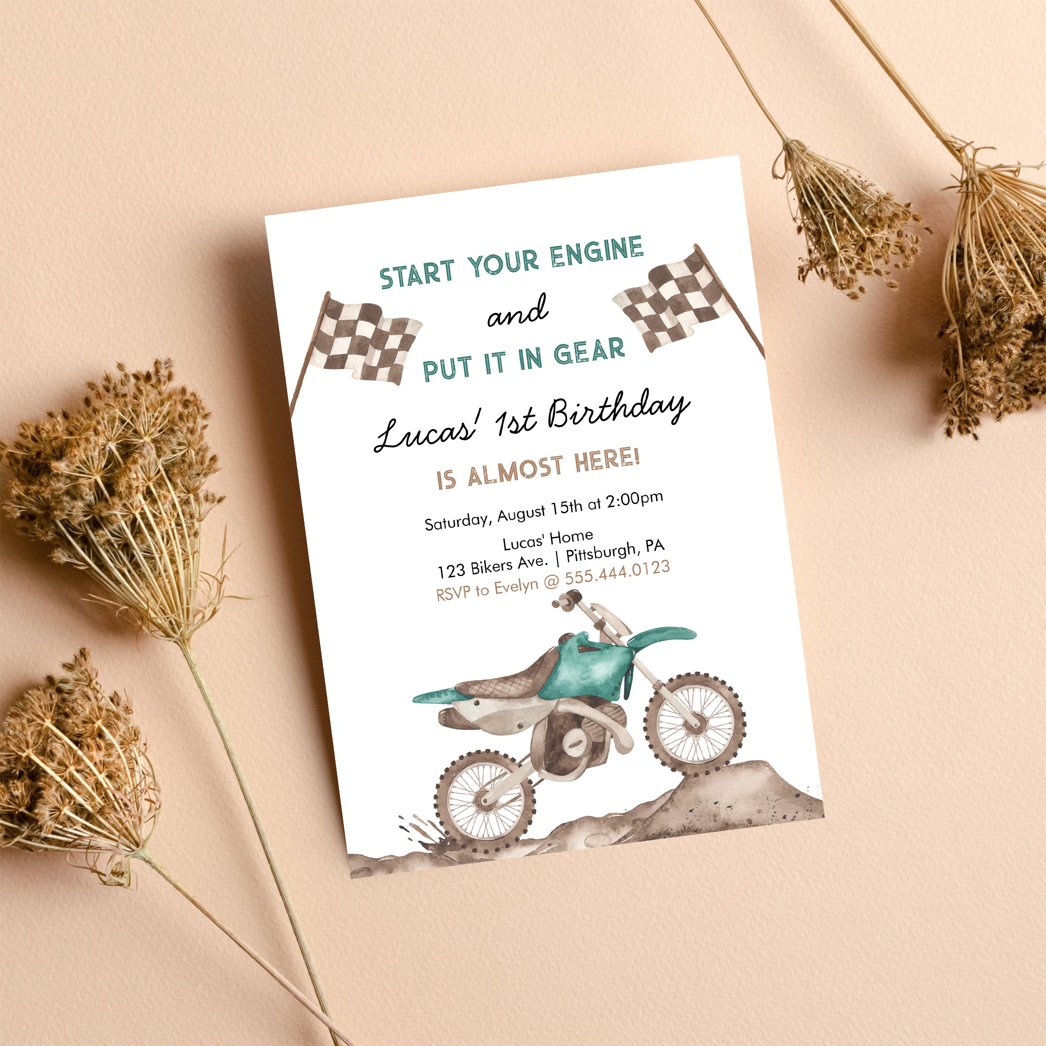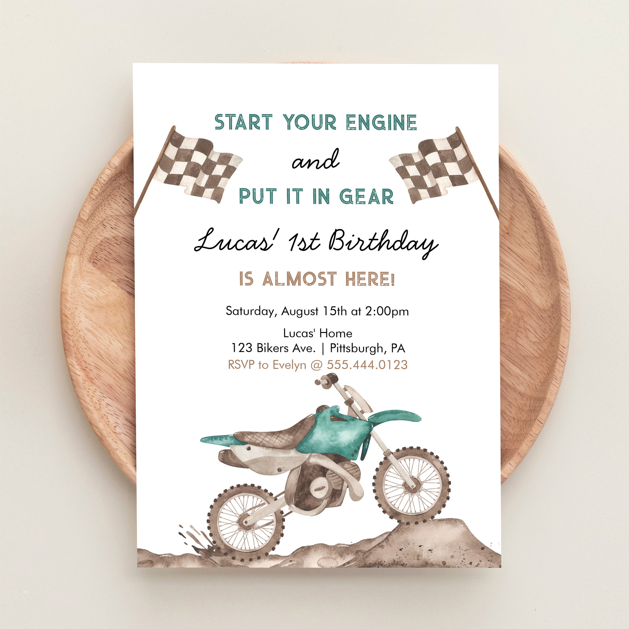 Start Your Engine Dirt Bike Motocross Boy Birthday Invitation