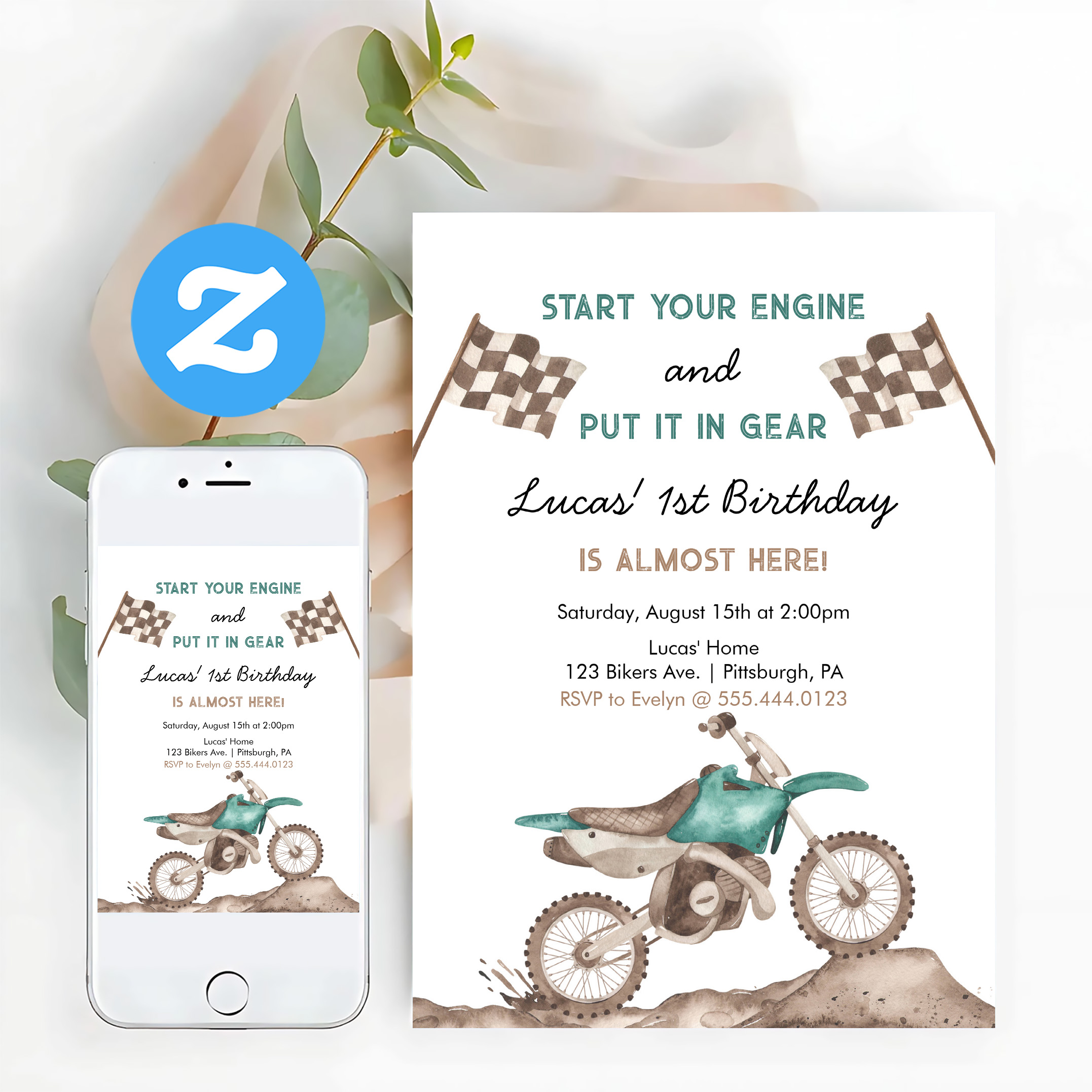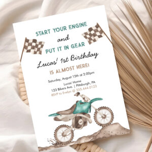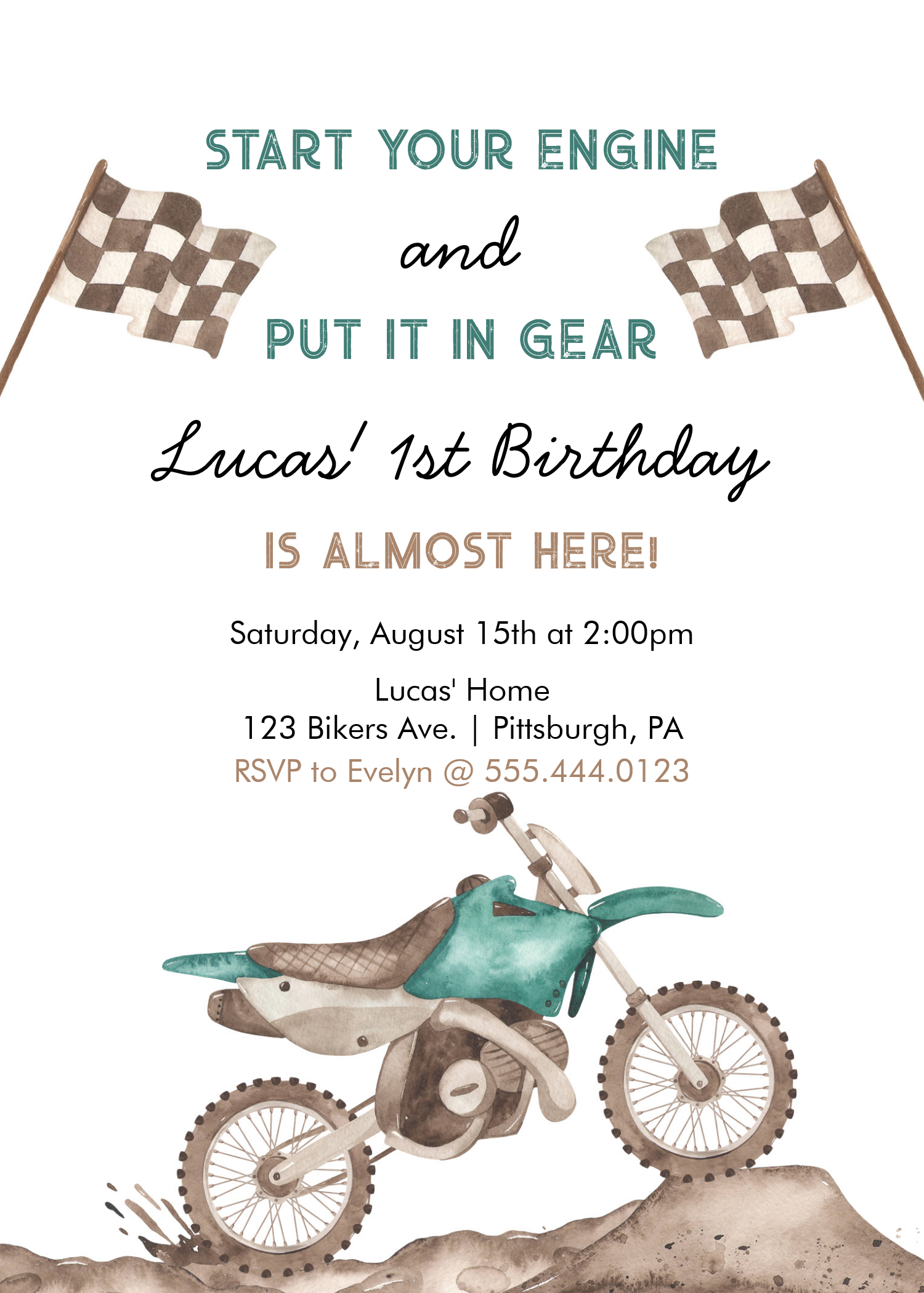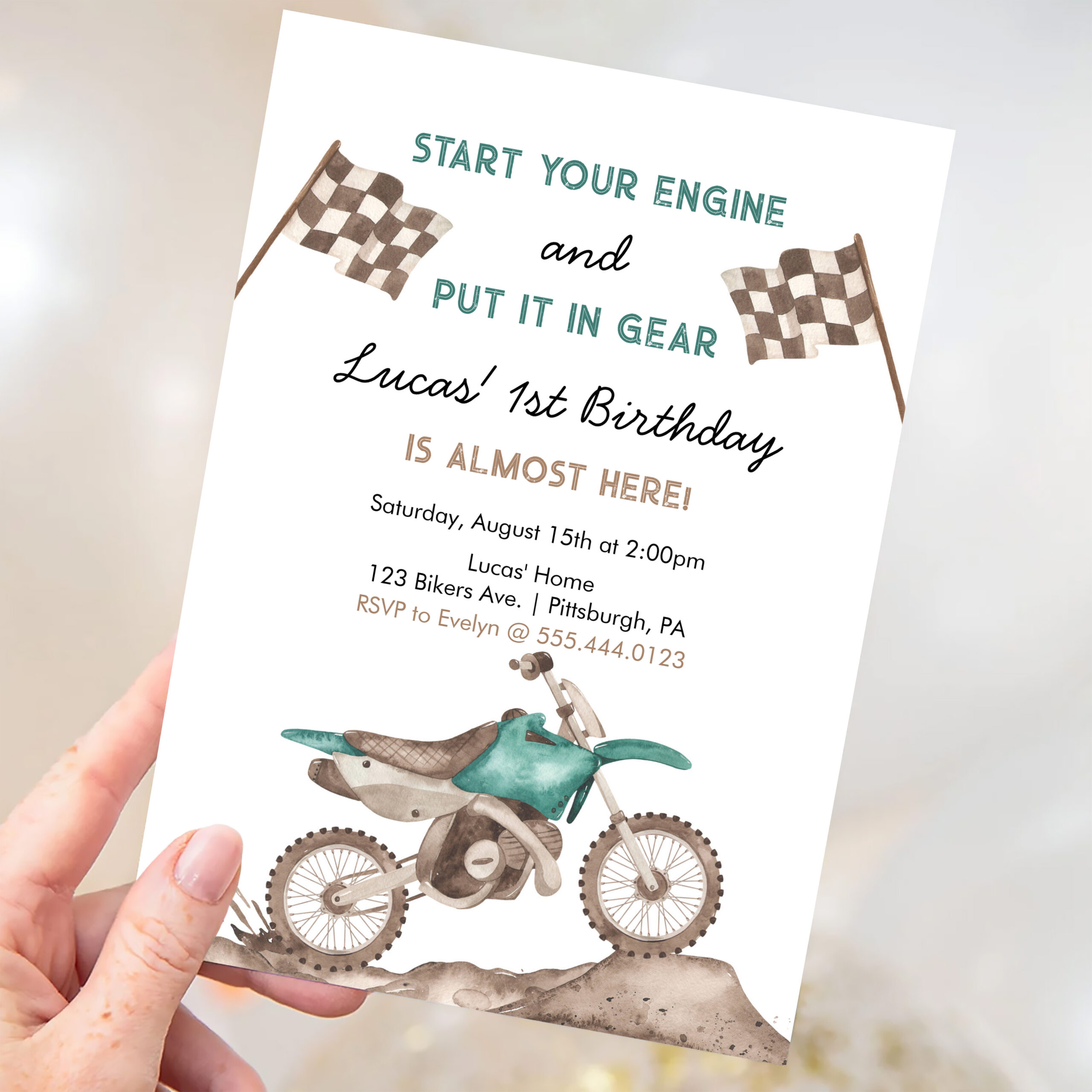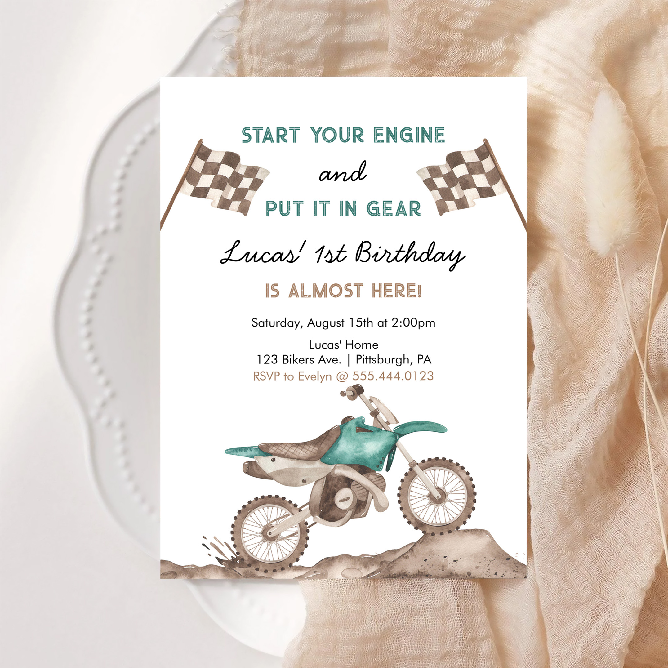 Start Your Engine Dirt Bike Motocross Boy Birthday Invitation