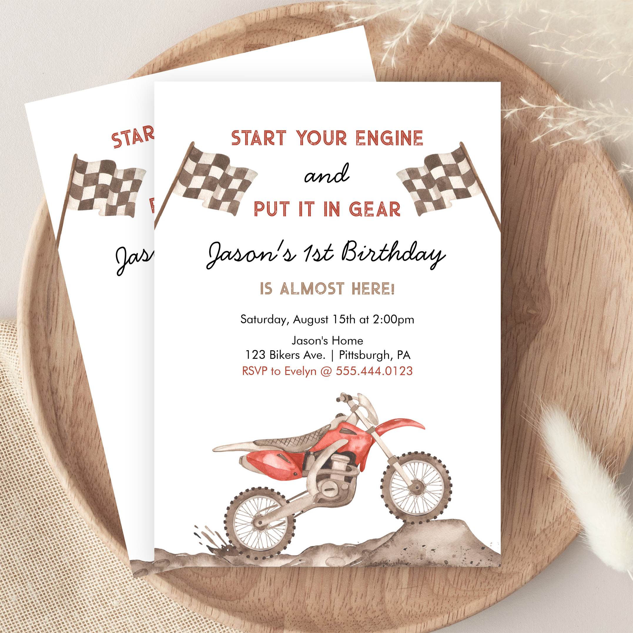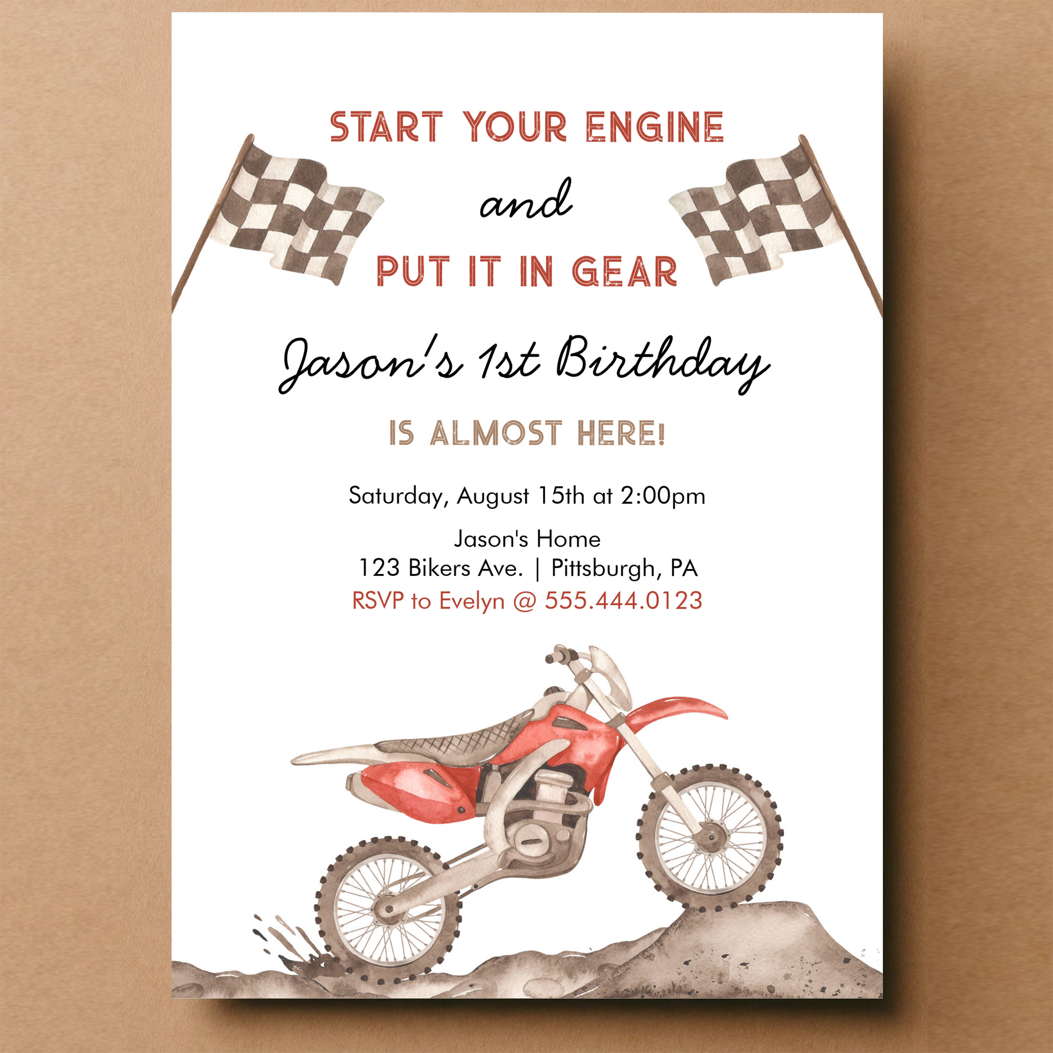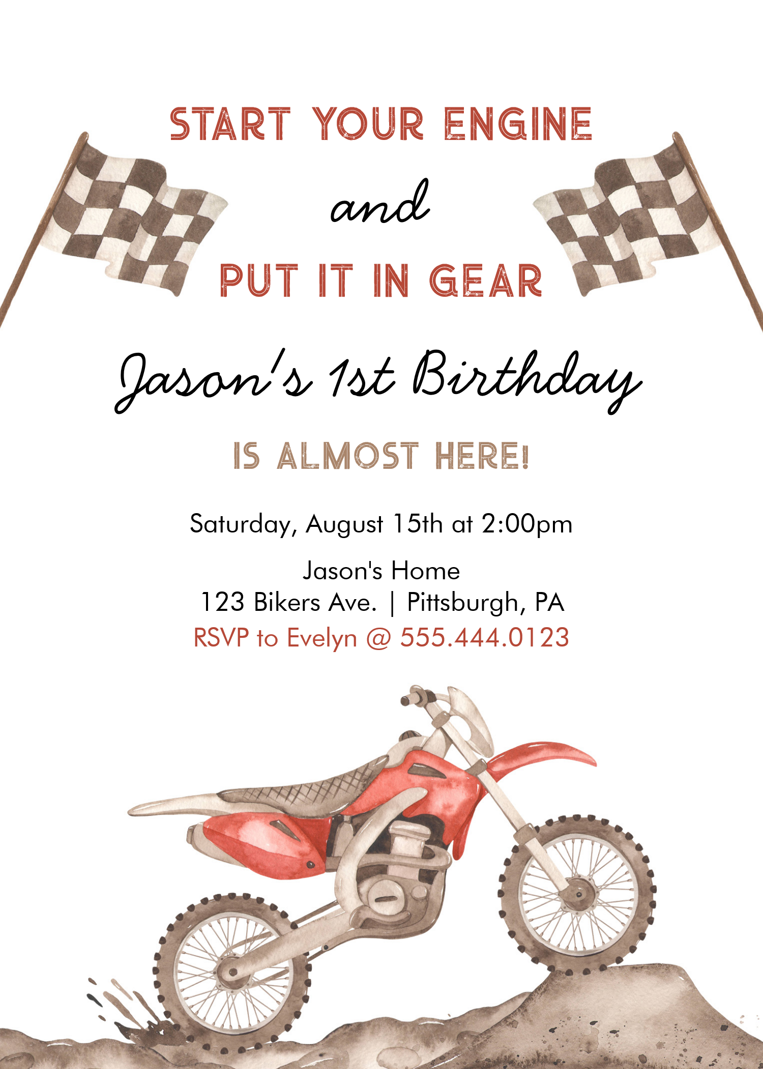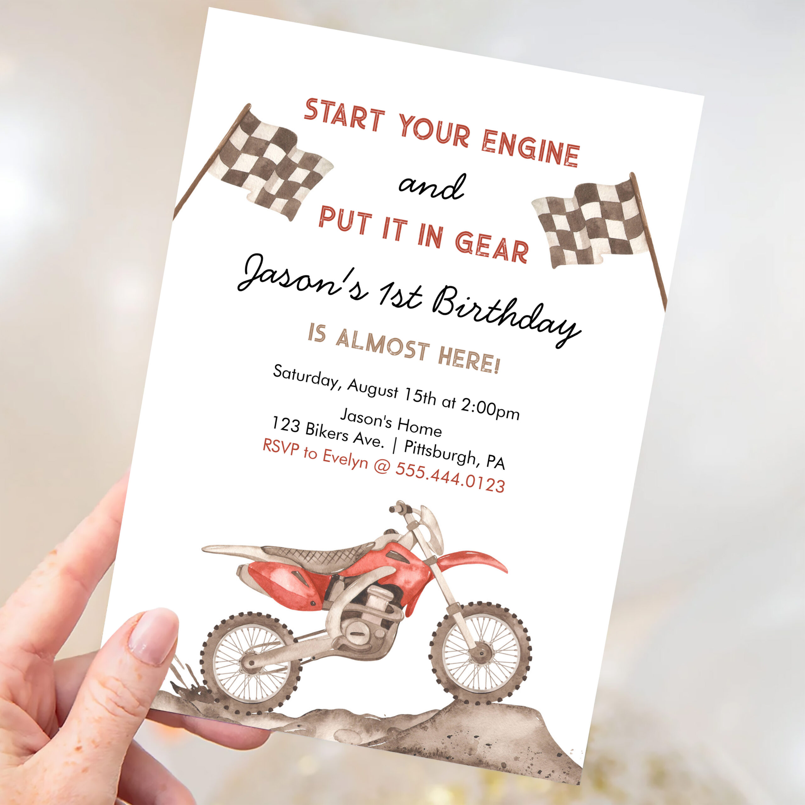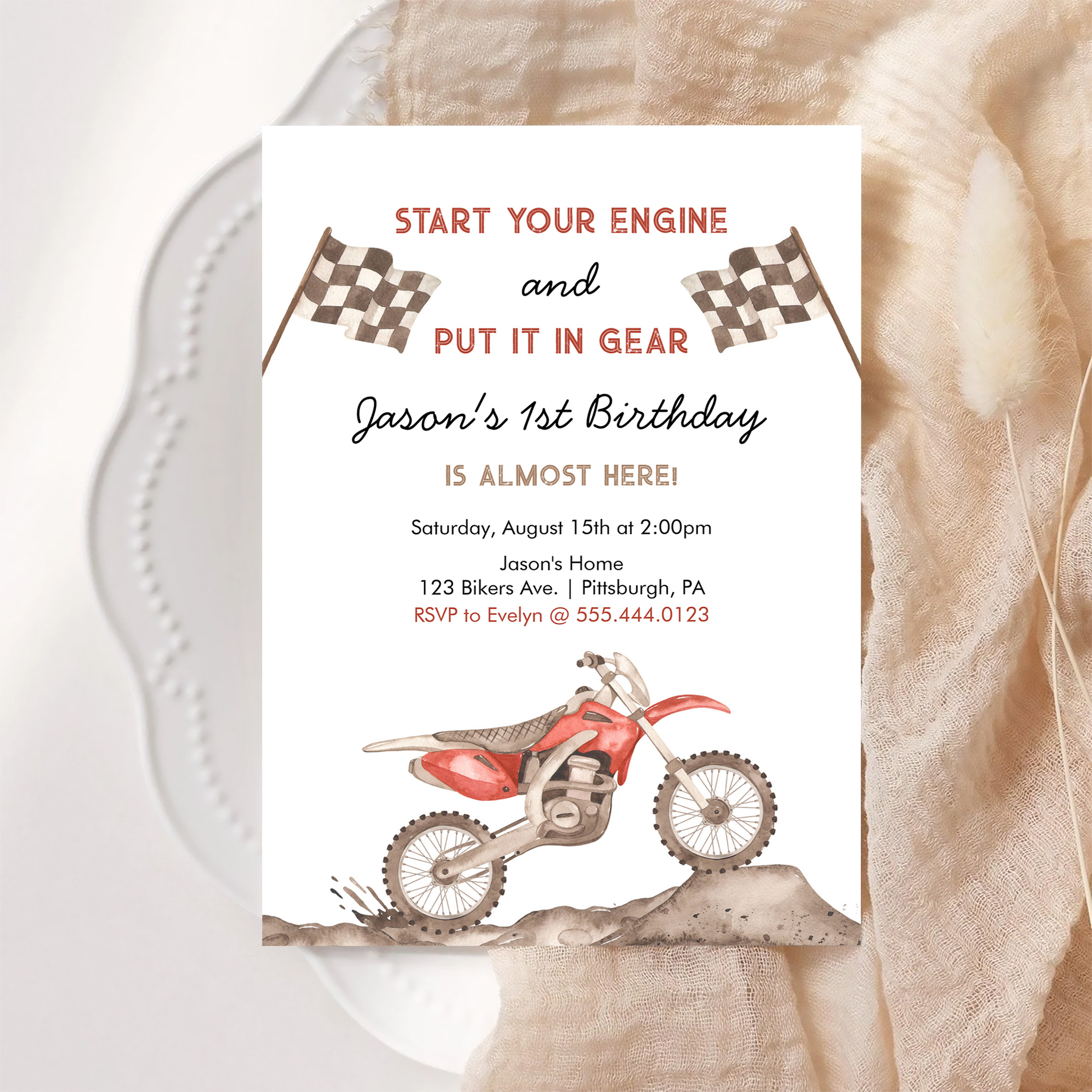 Start Your Engine Dirt Bike Motocross Boy Birthday Invitation
