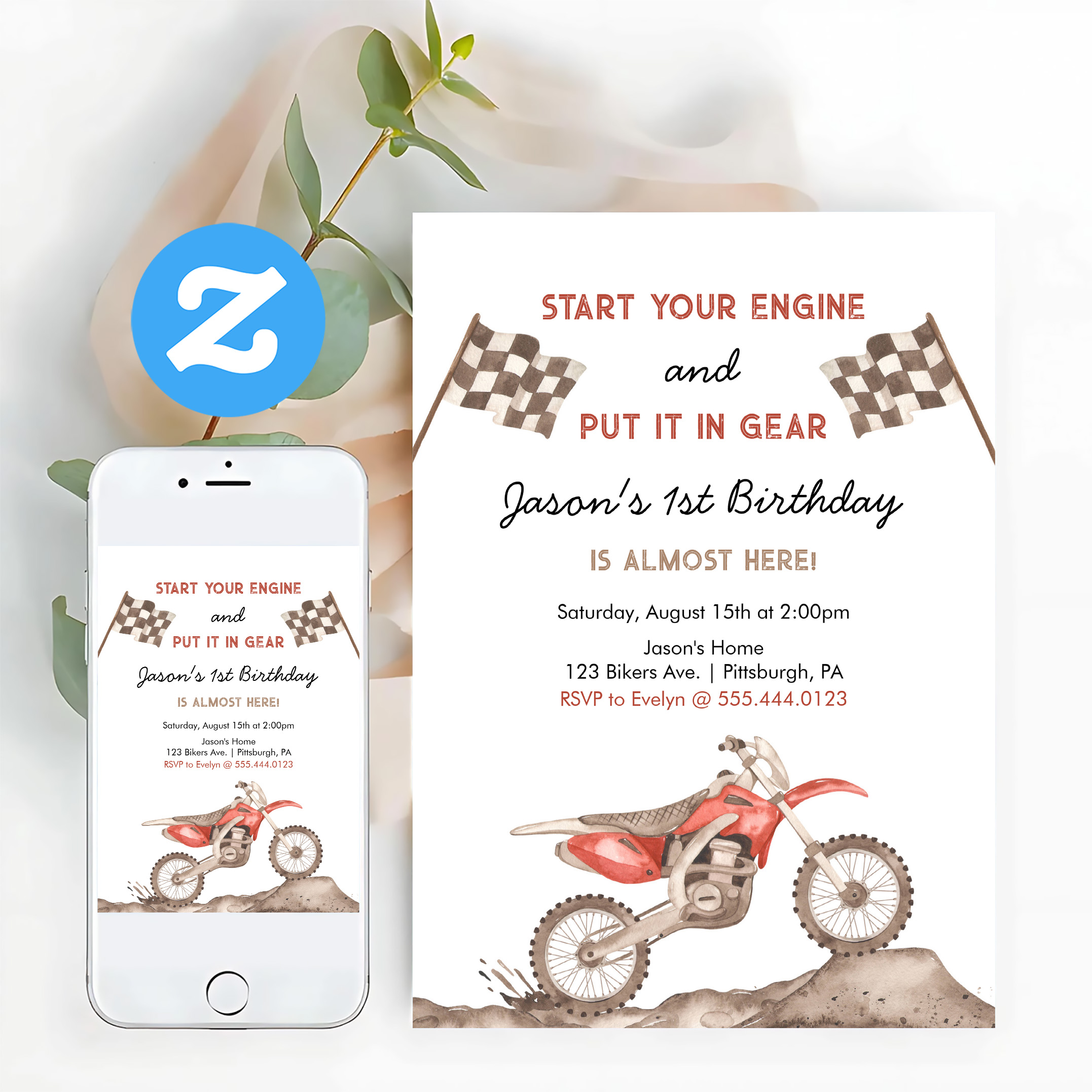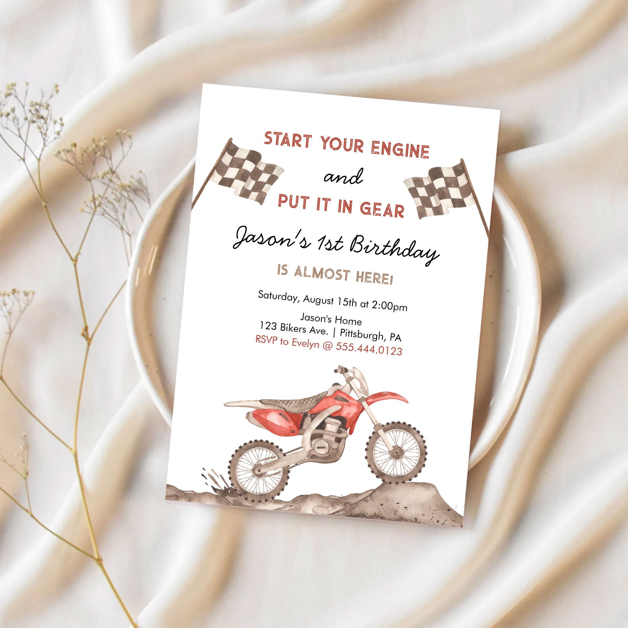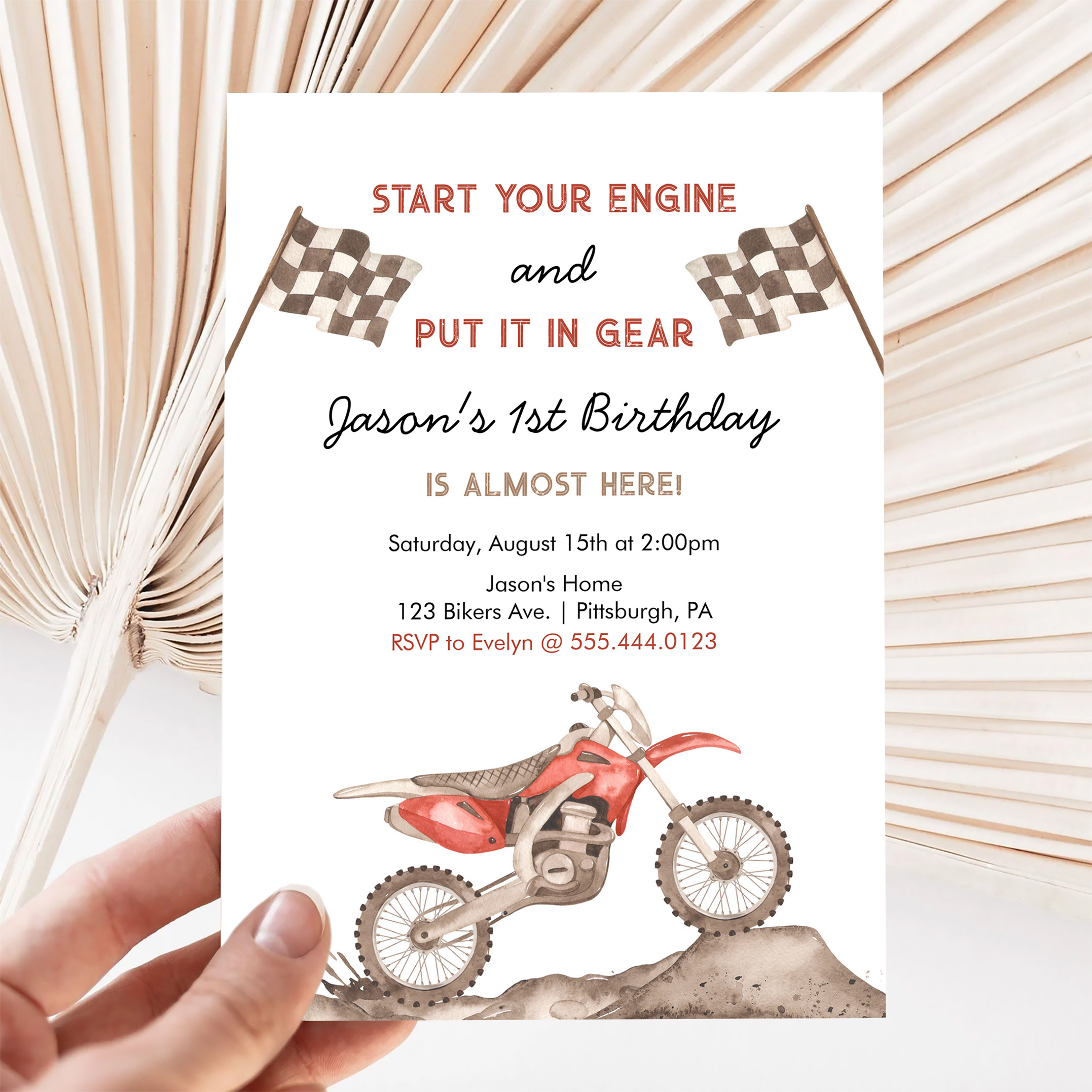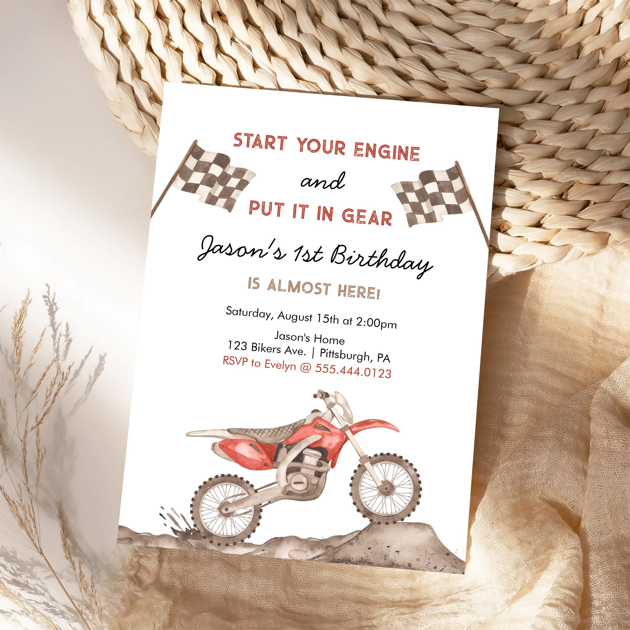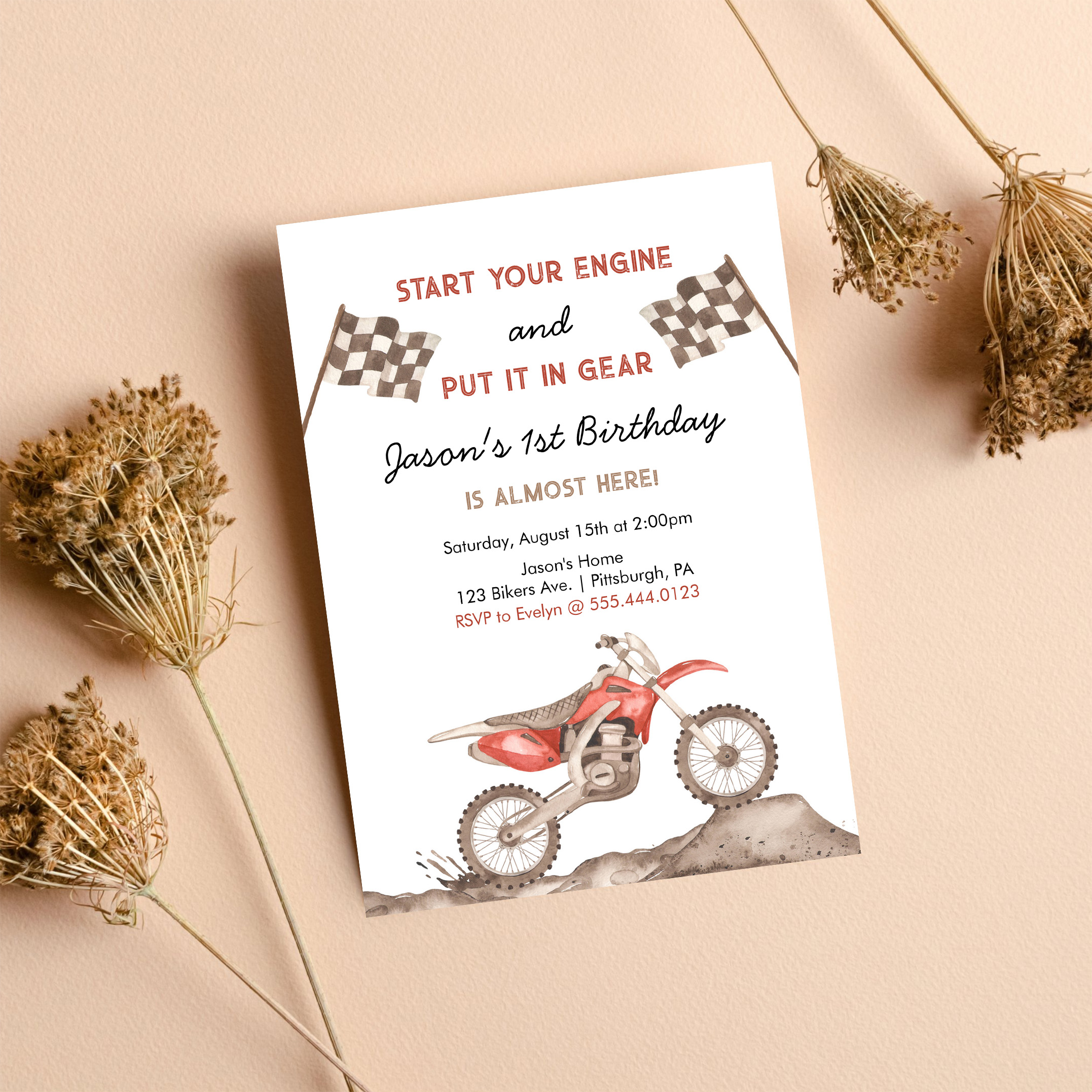 Start Your Engine Dirt Bike Motocross Boy Birthday Invitation