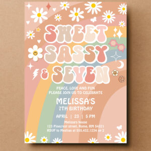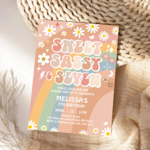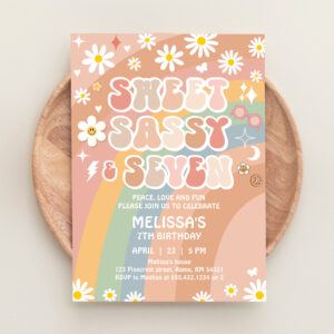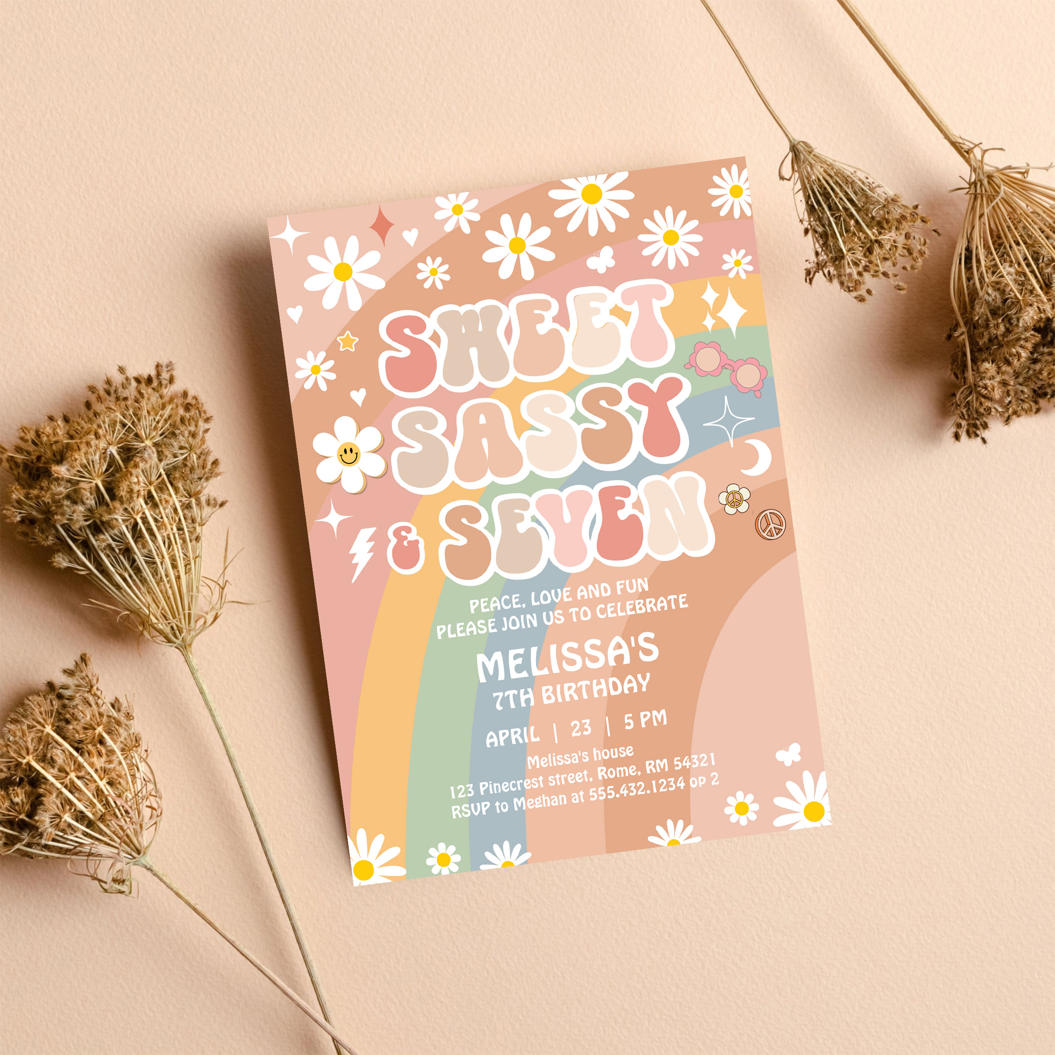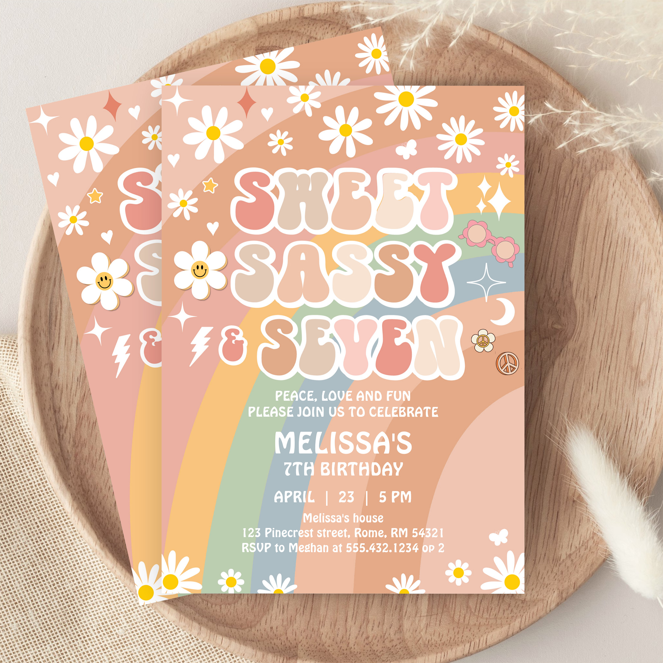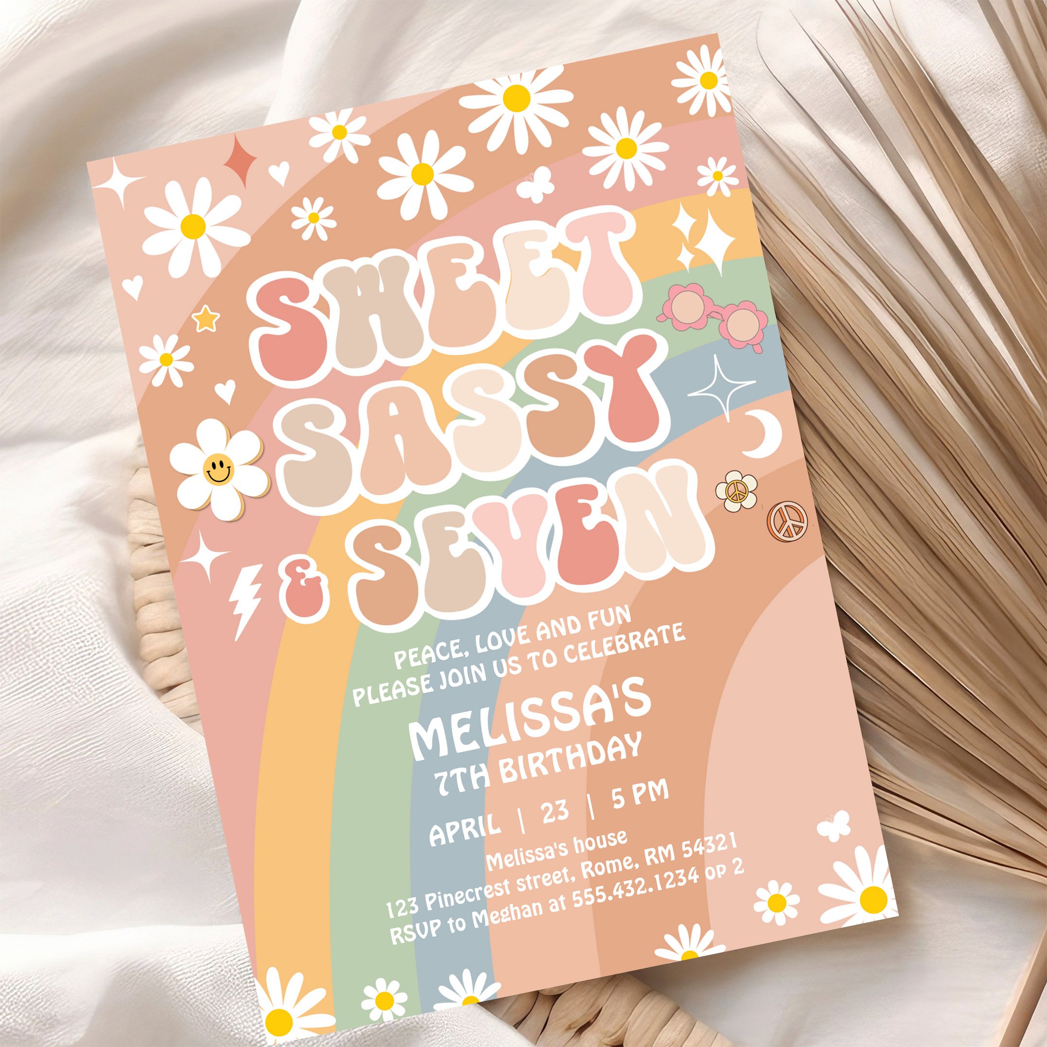 Sweet Sassy And Seven Groovy Rainbow 7th Birthday Invitation - Related products