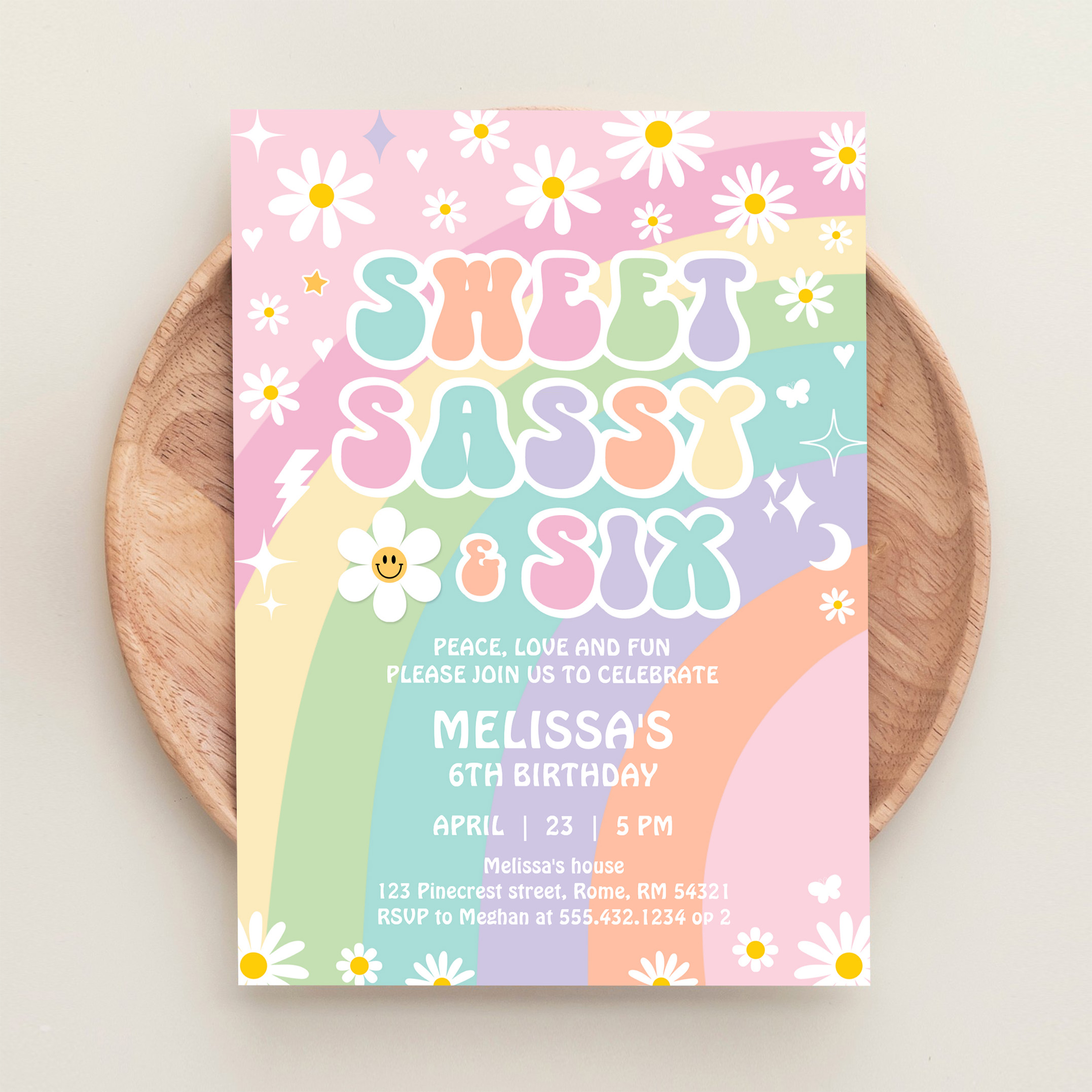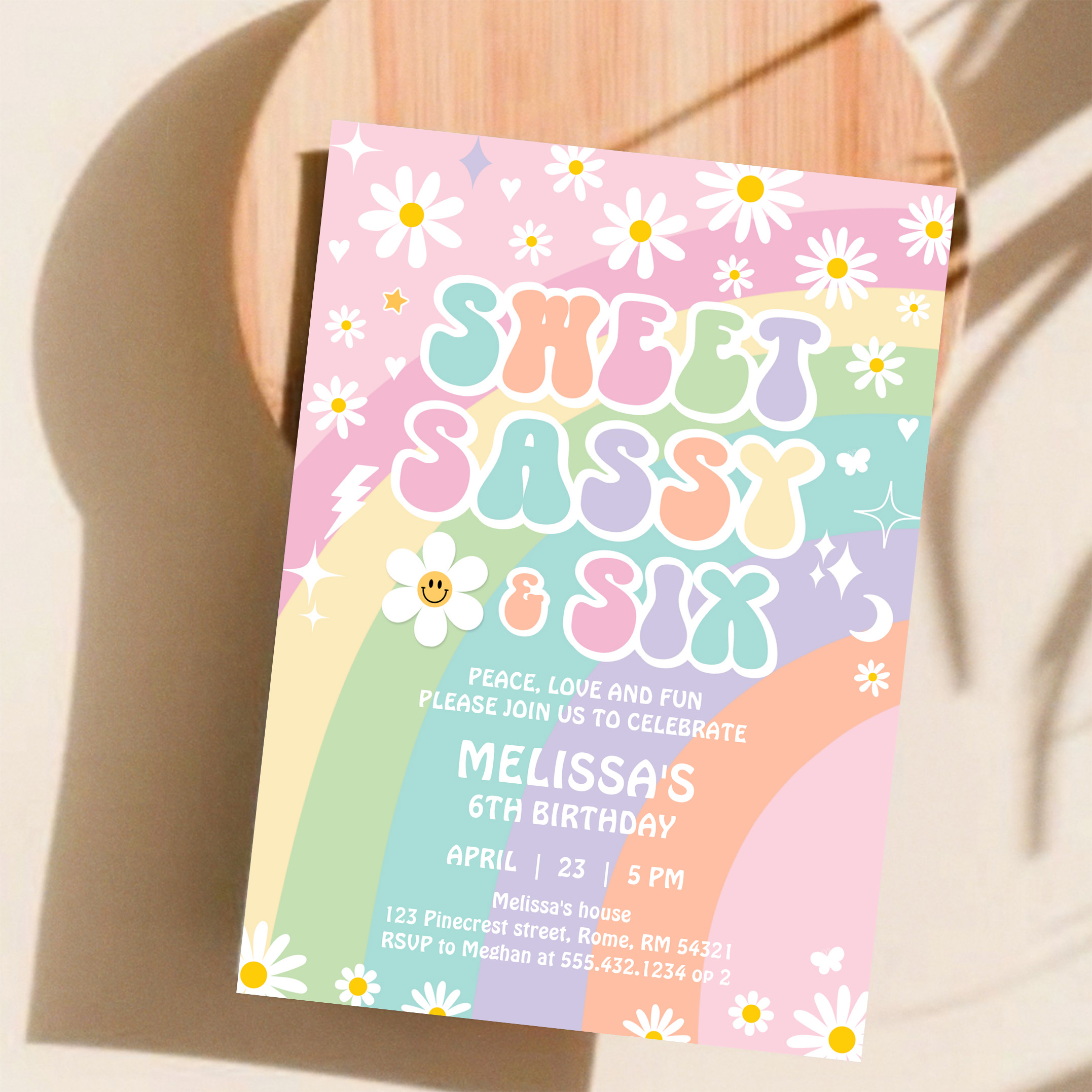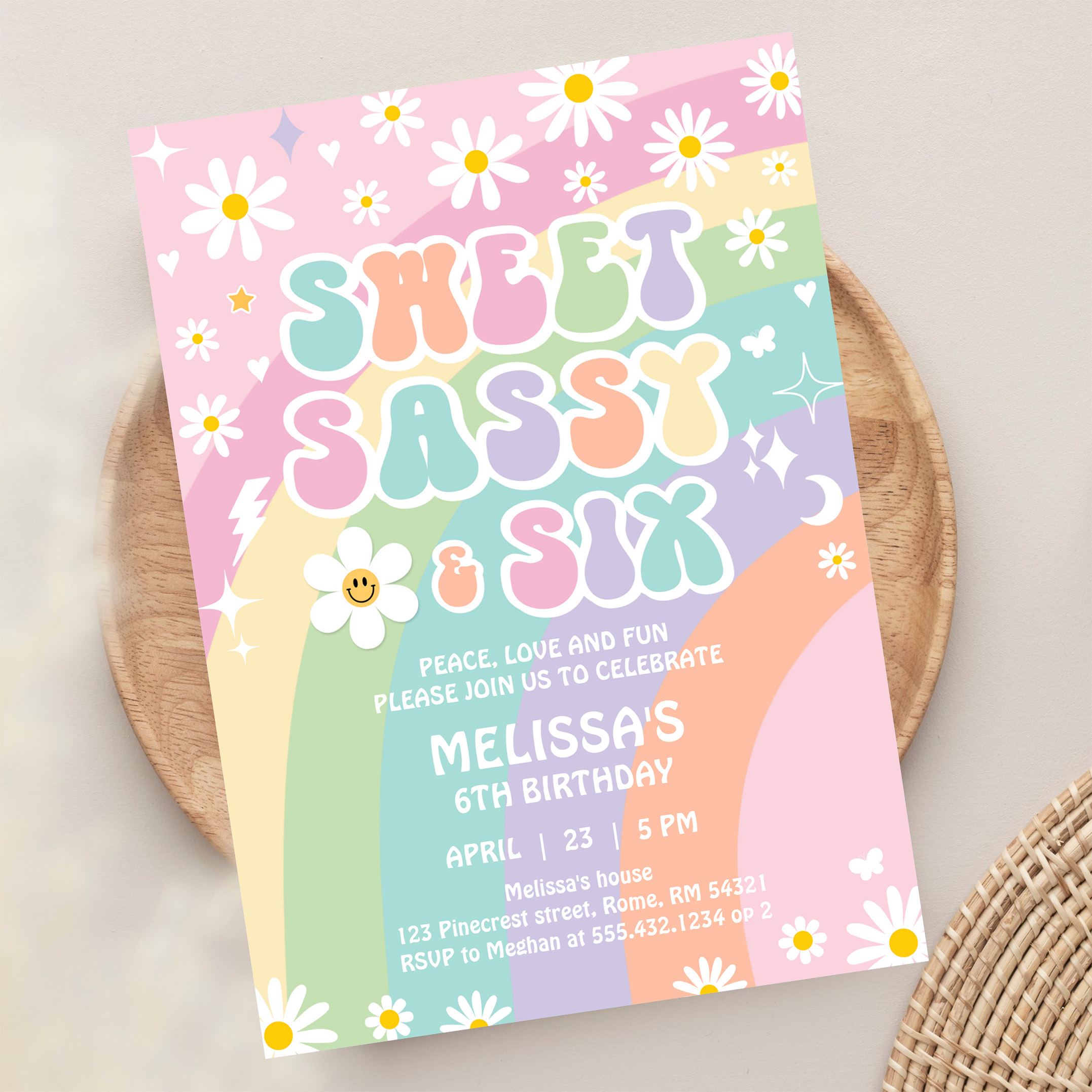 Sweet Sassy And Six Daisy Groovy 6th Birthday Invitation