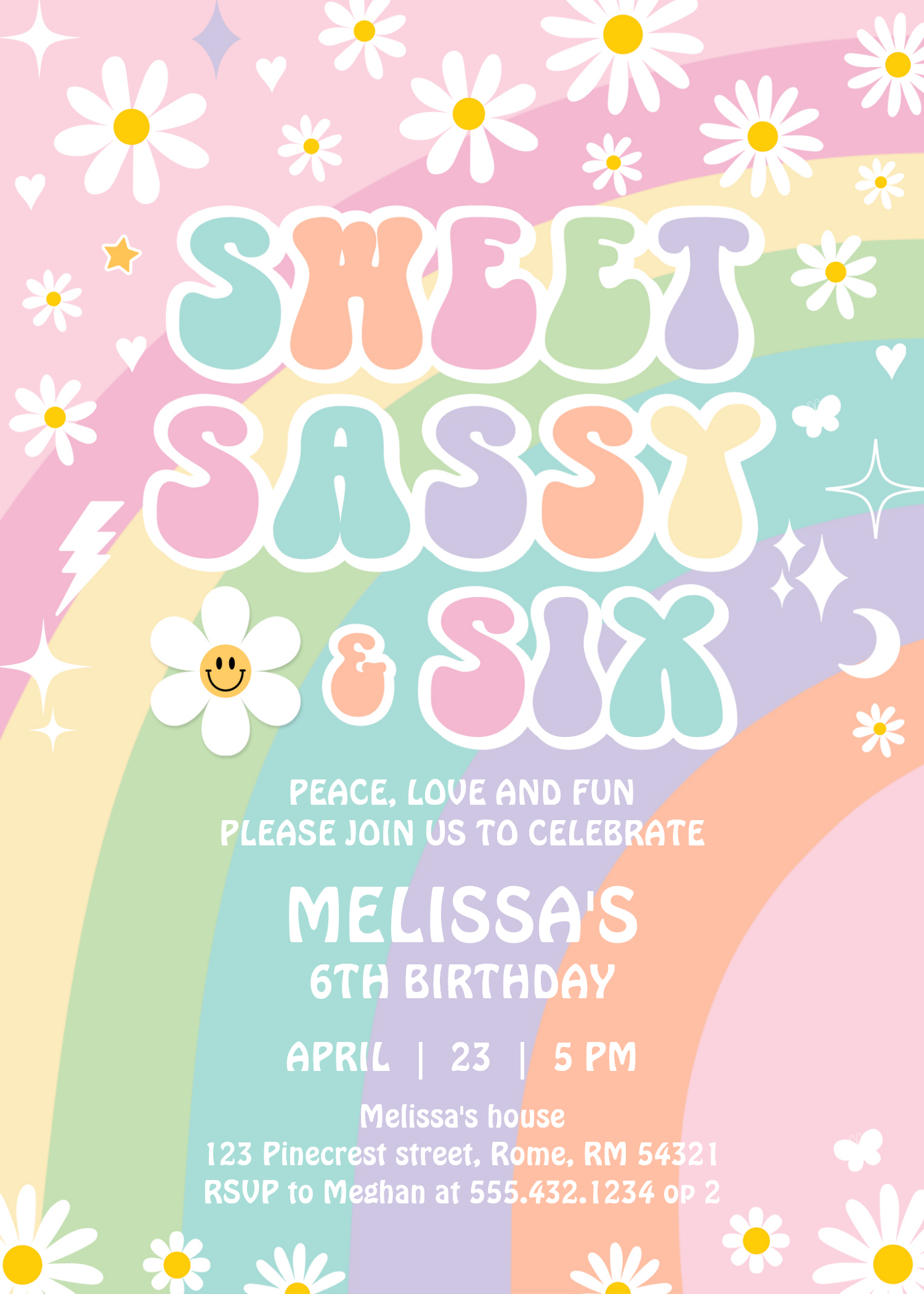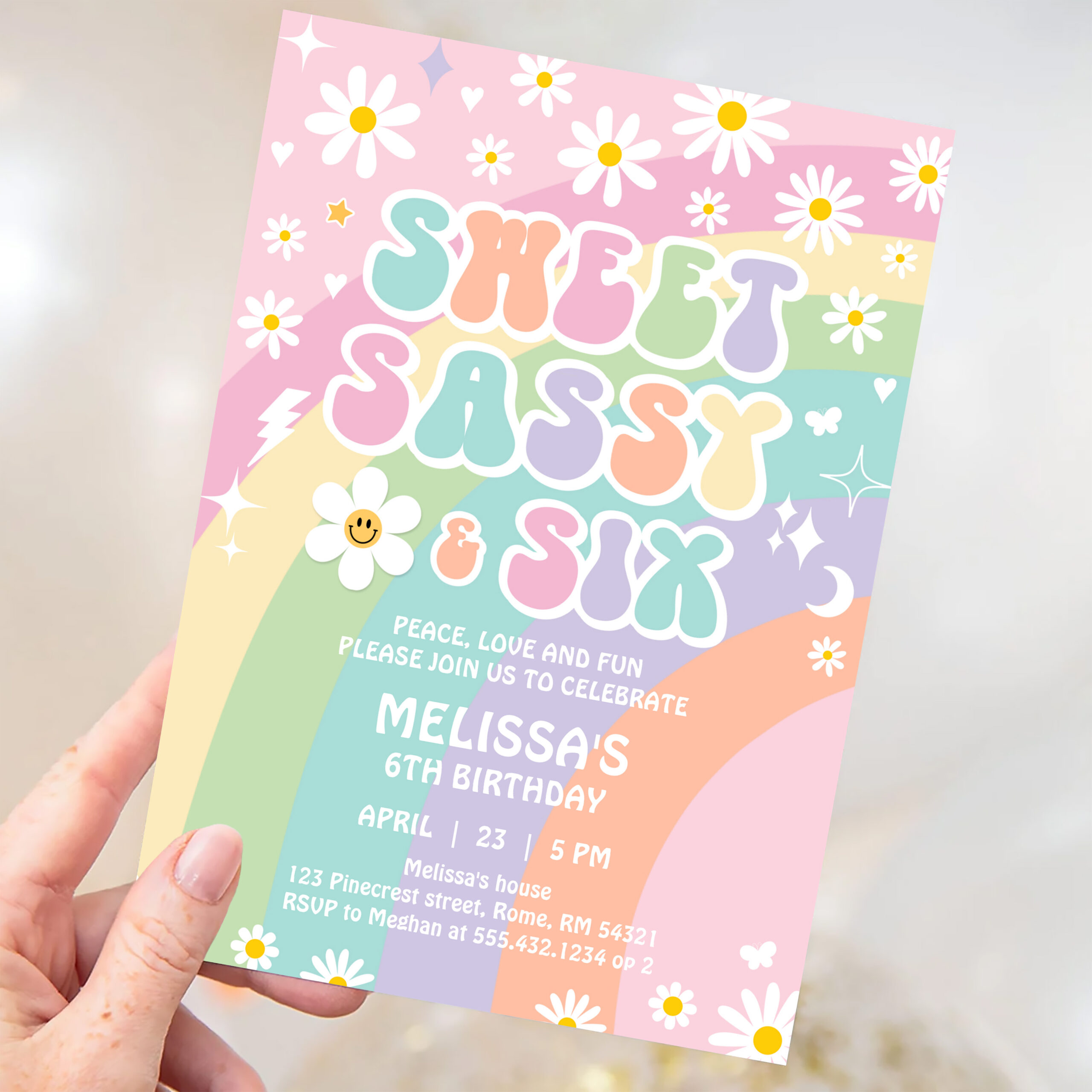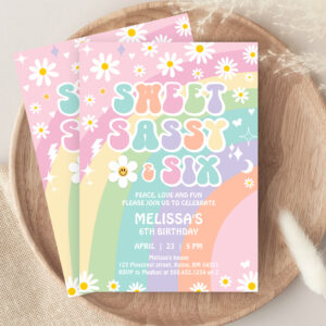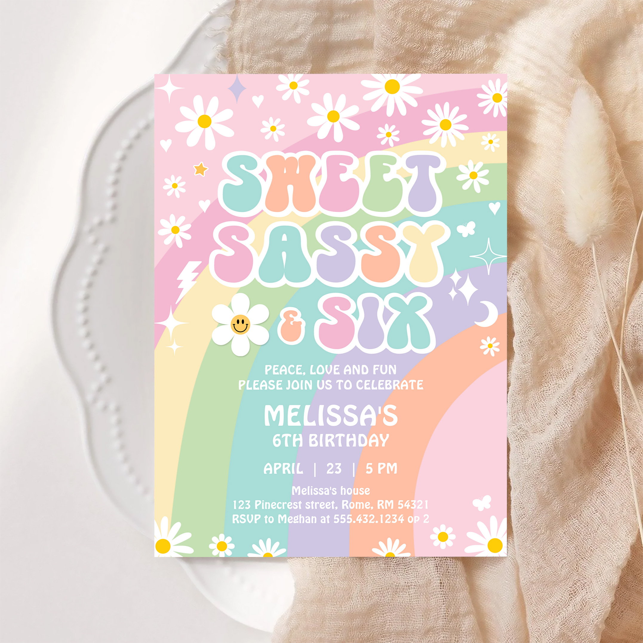 Sweet Sassy And Six Daisy Groovy 6th Birthday Invitation