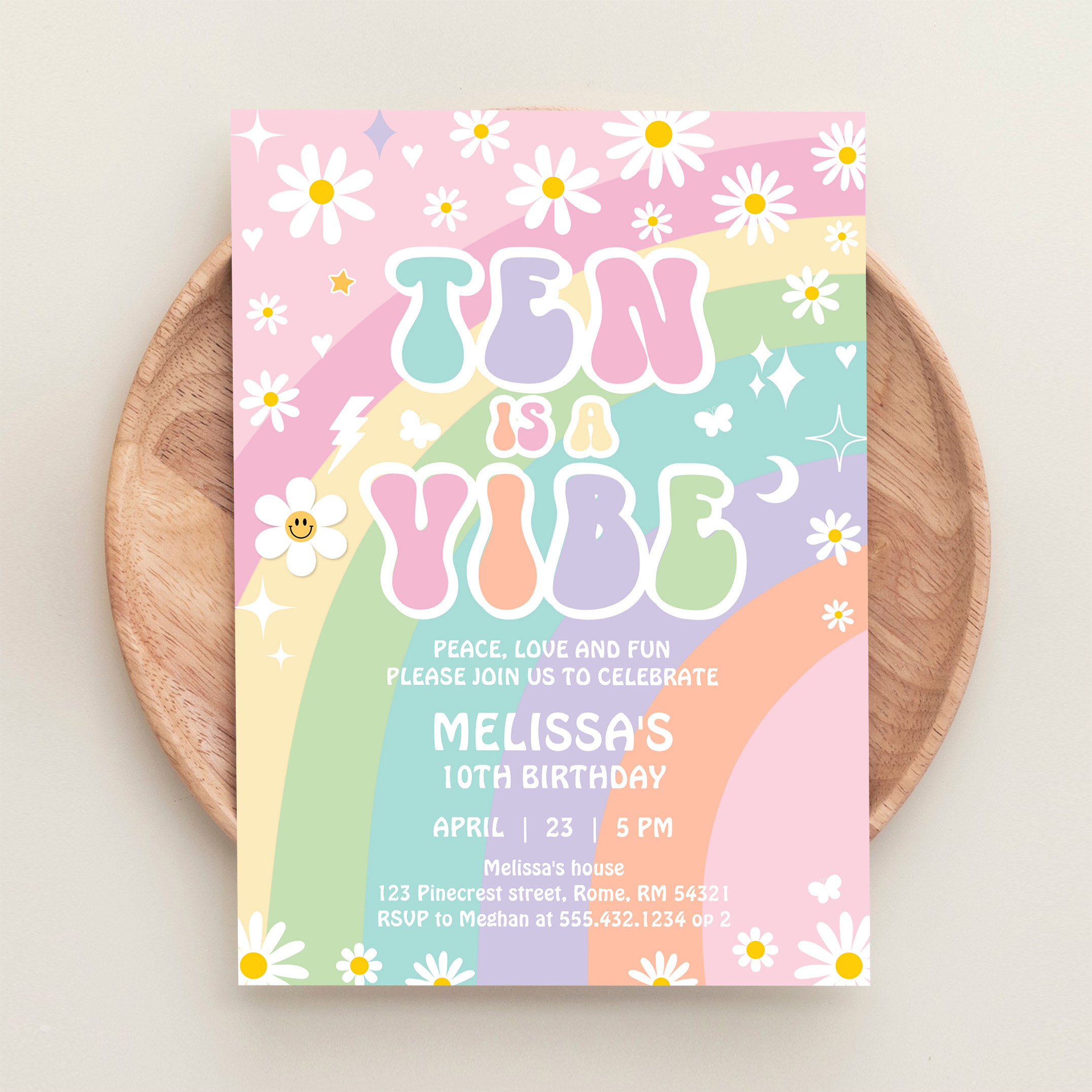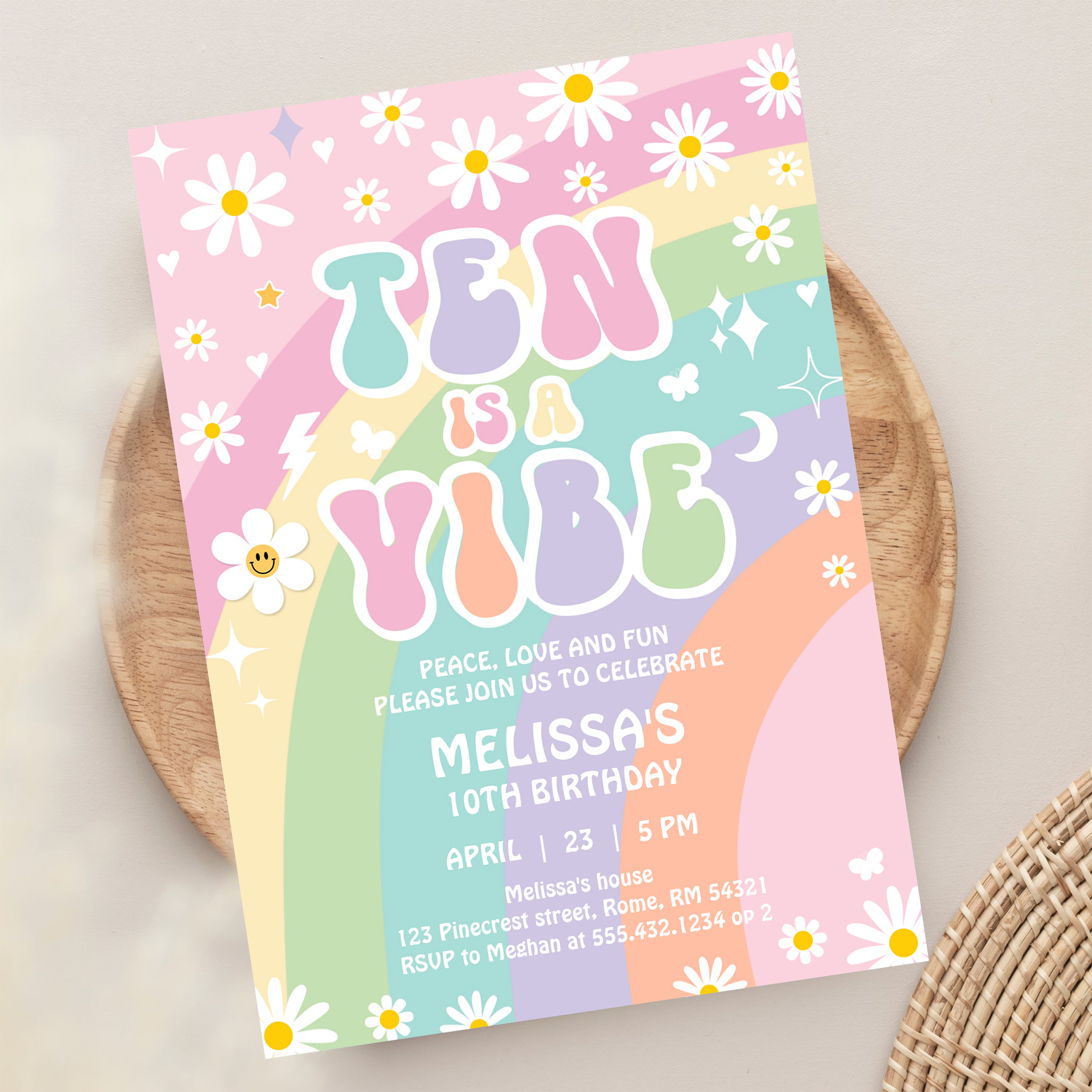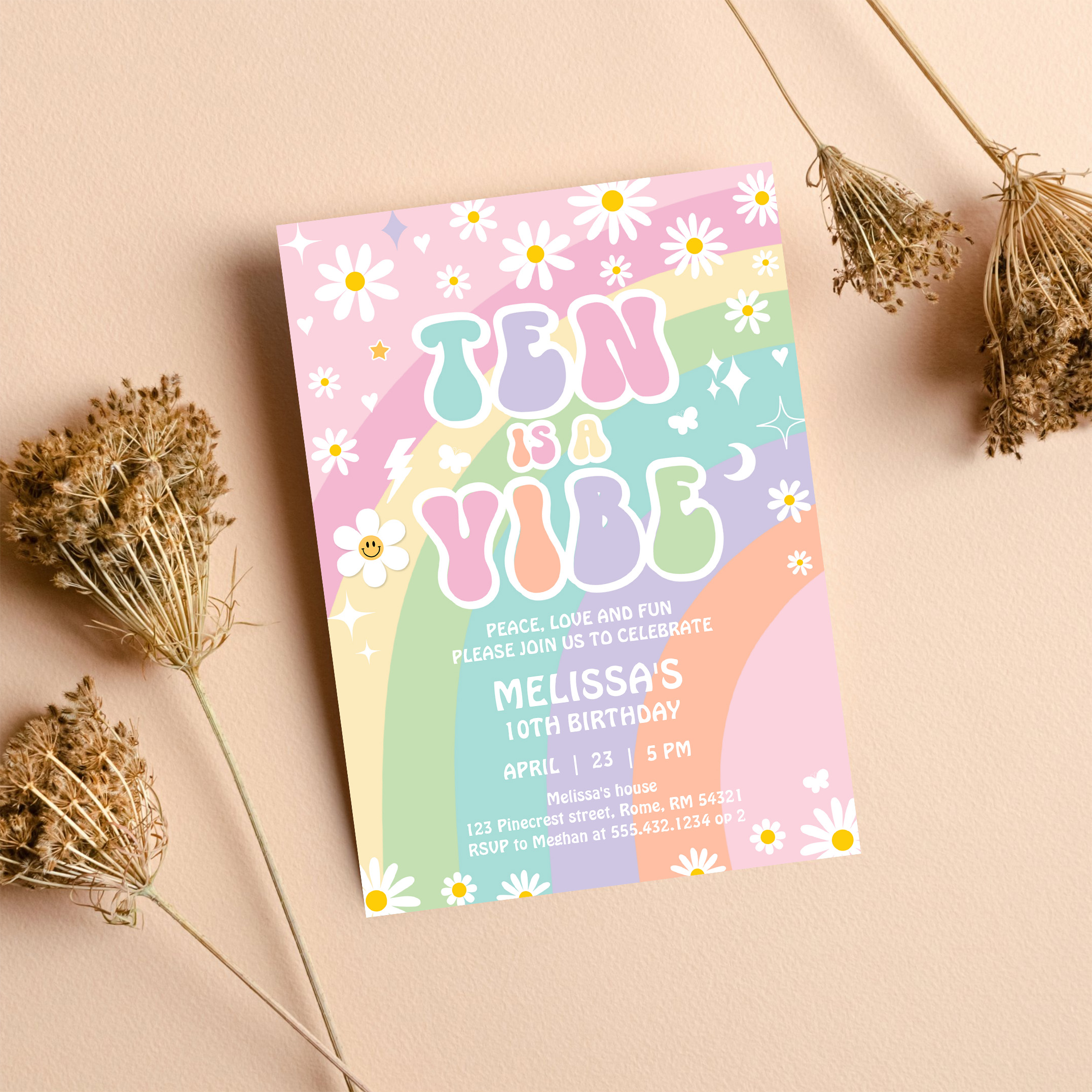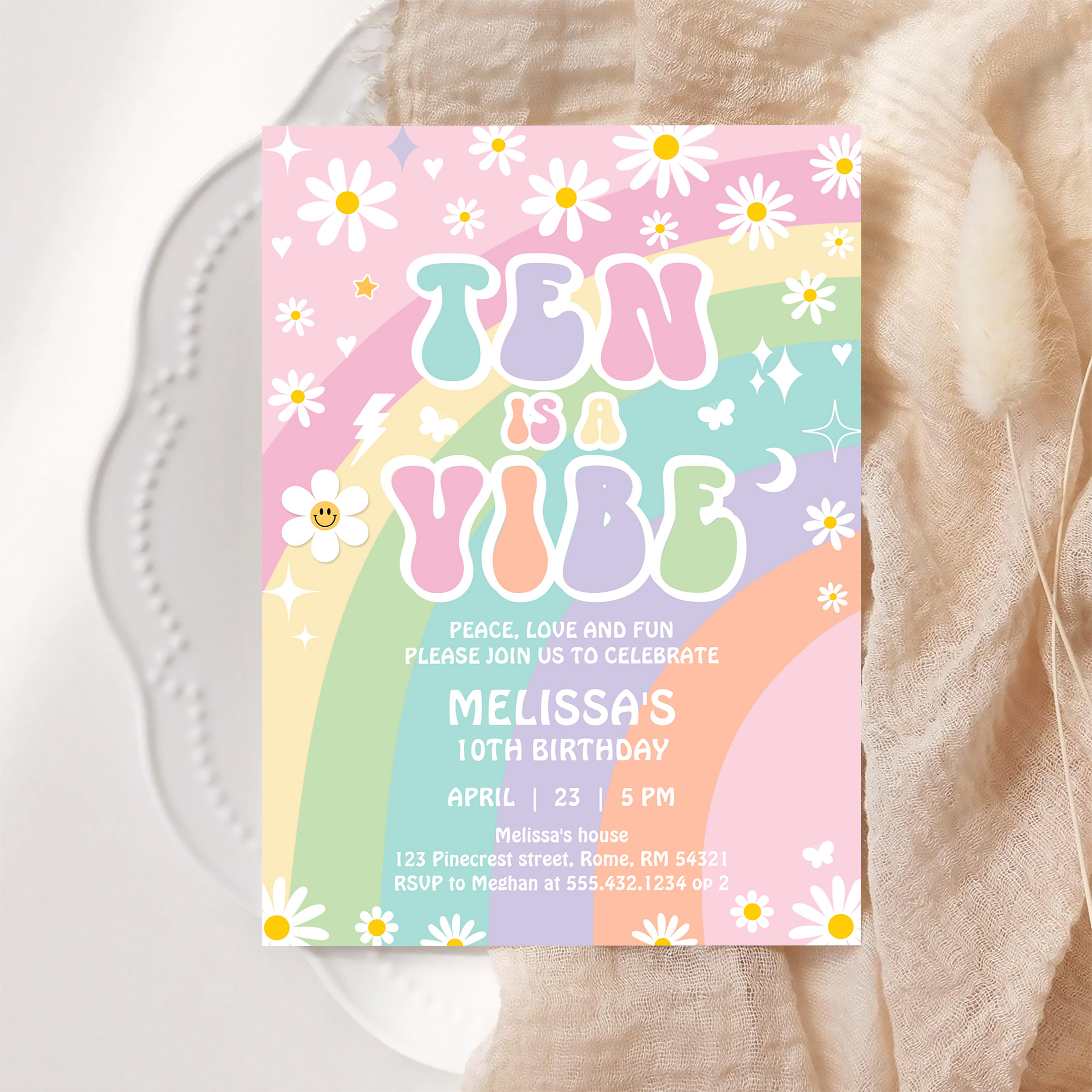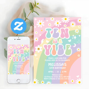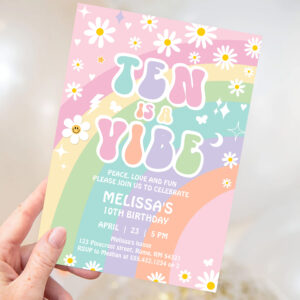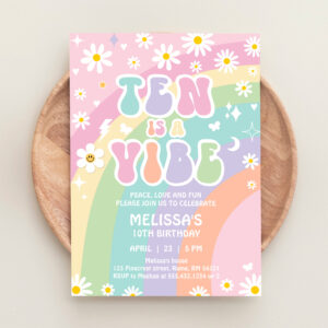 Ten Is A Vibe Daisy Groovy Retro 10th Birthday Invitation - Related products