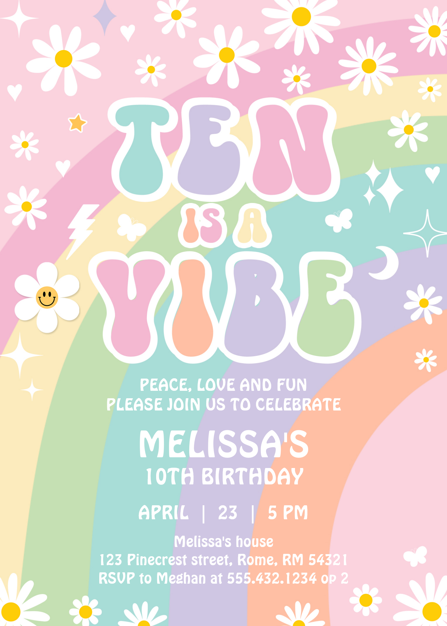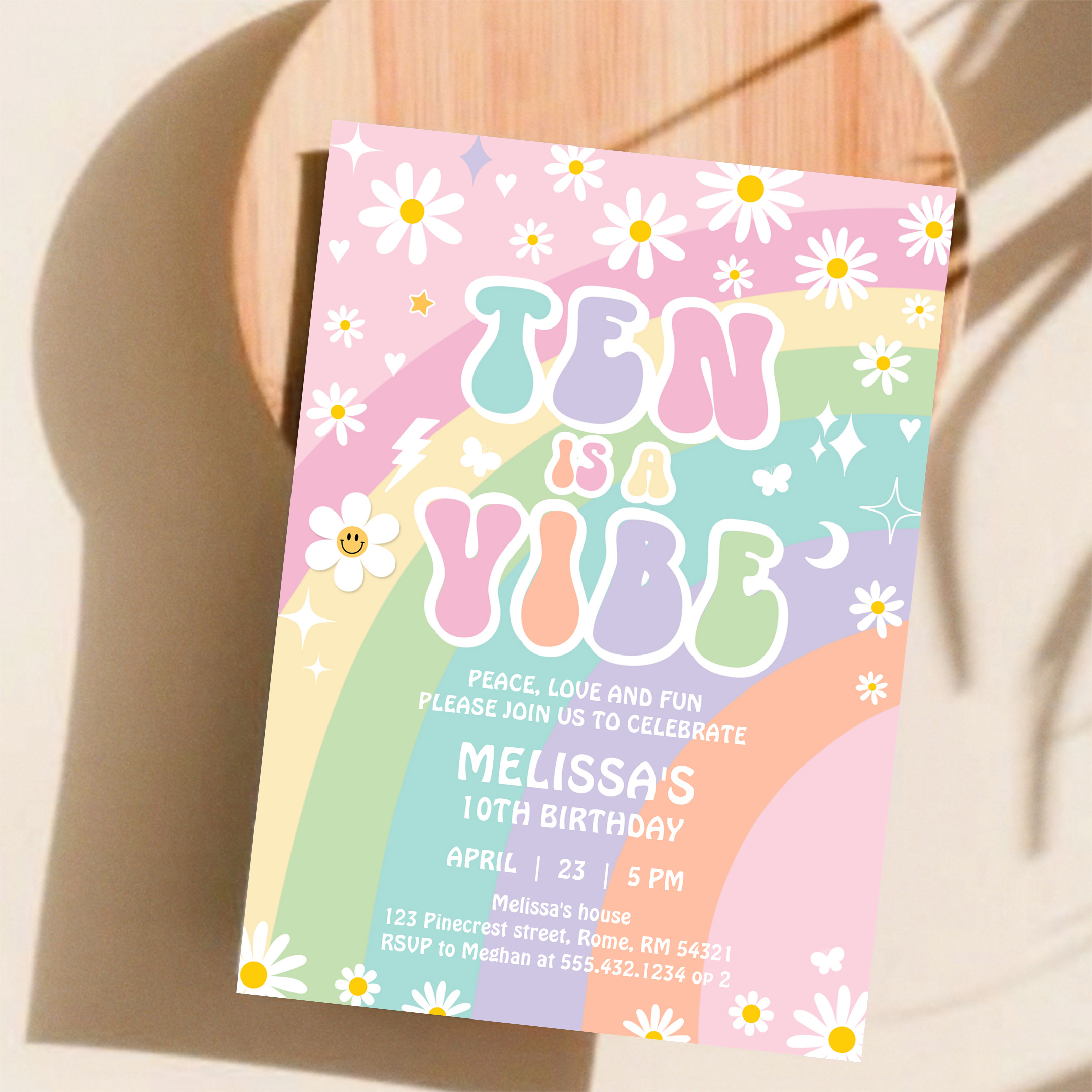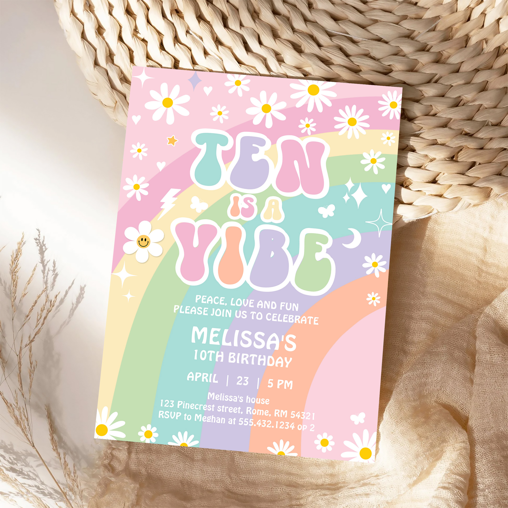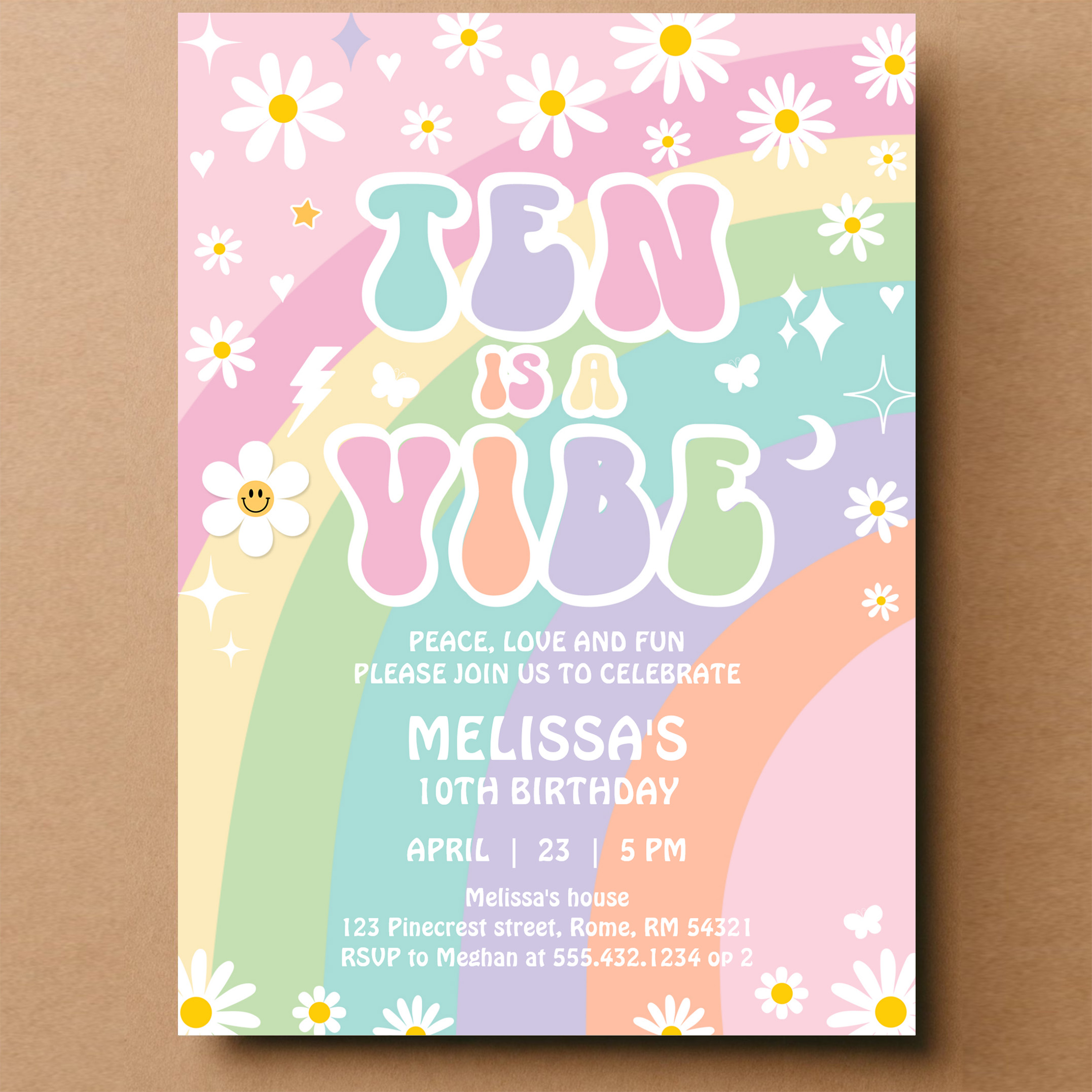 Ten Is A Vibe Daisy Groovy Retro 10th Birthday Invitation - Related products