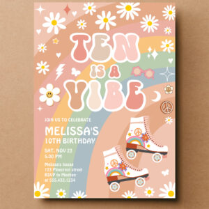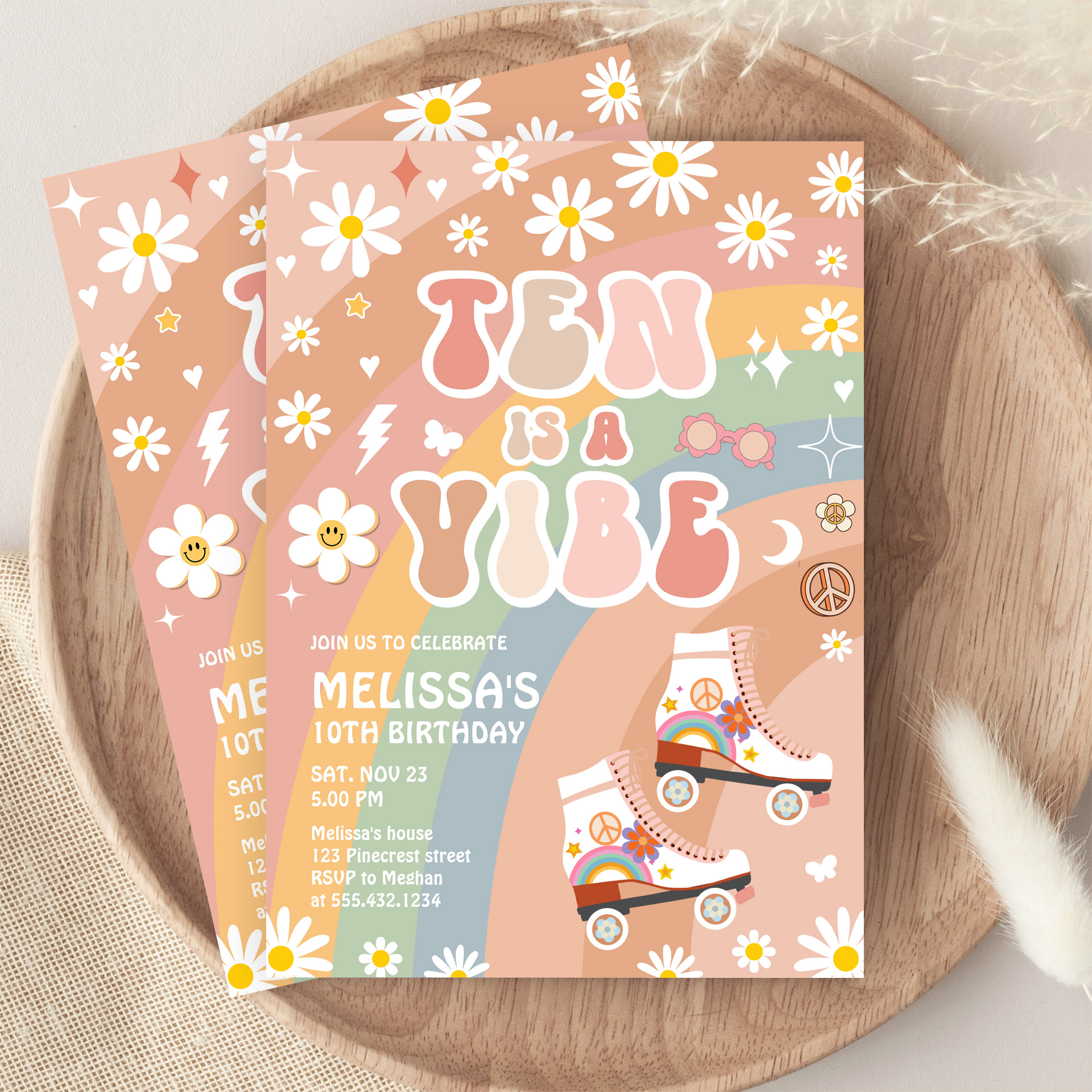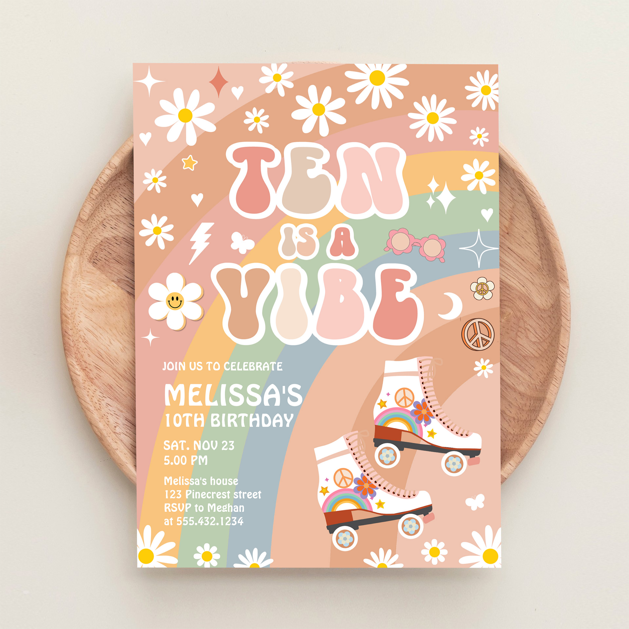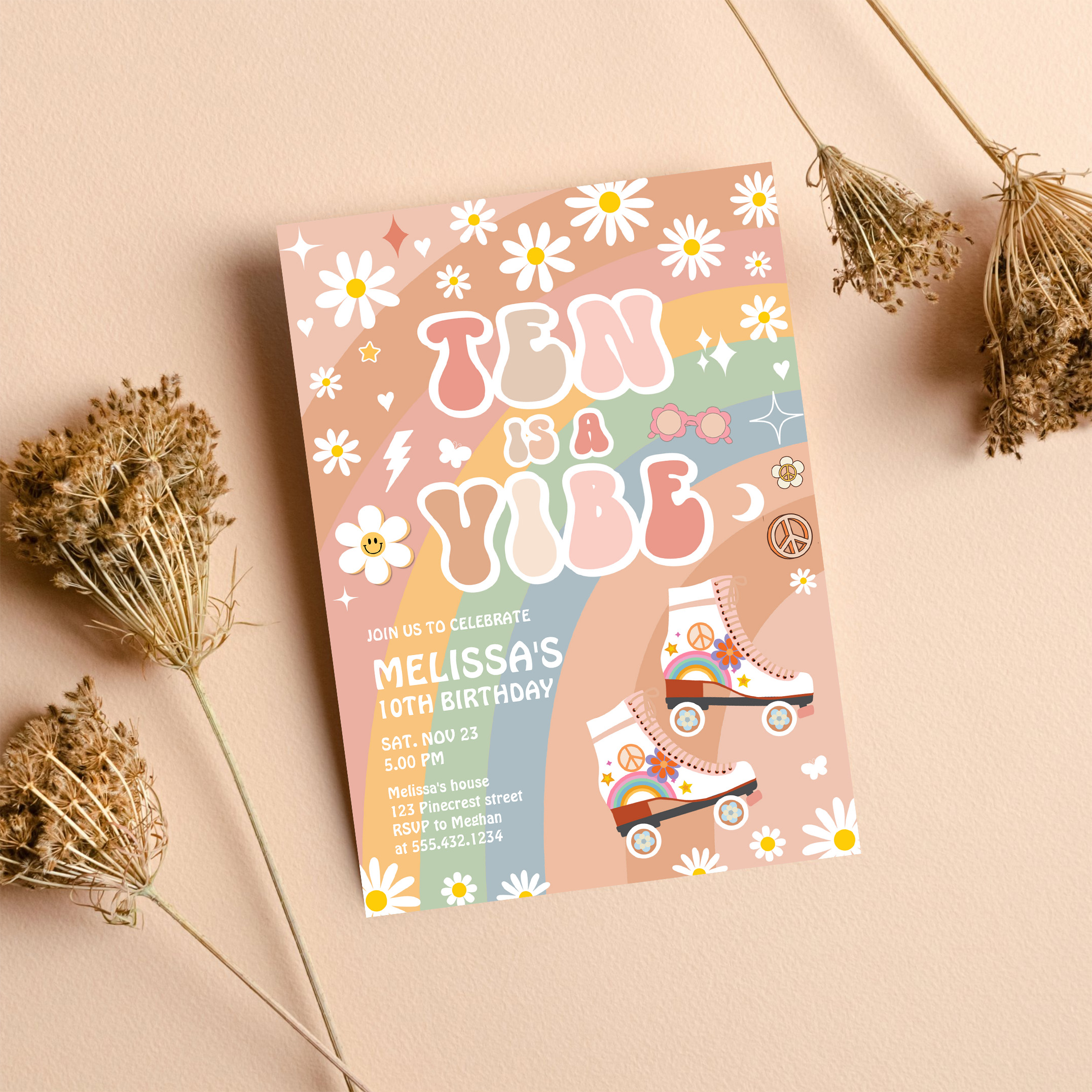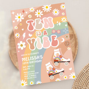 Ten Is A Vibe Groovy Roller Skate 10th Birthday Invitation - Related products