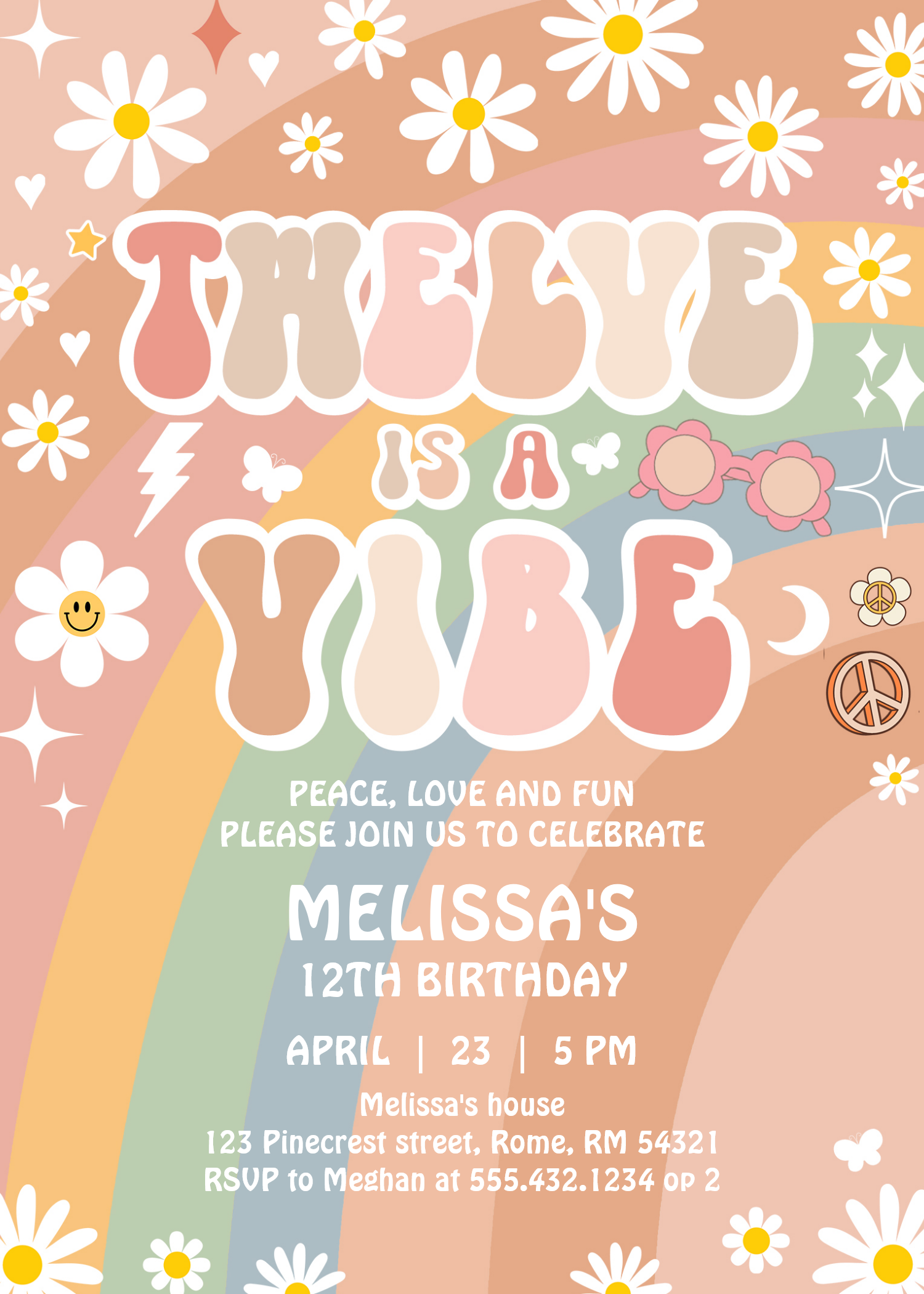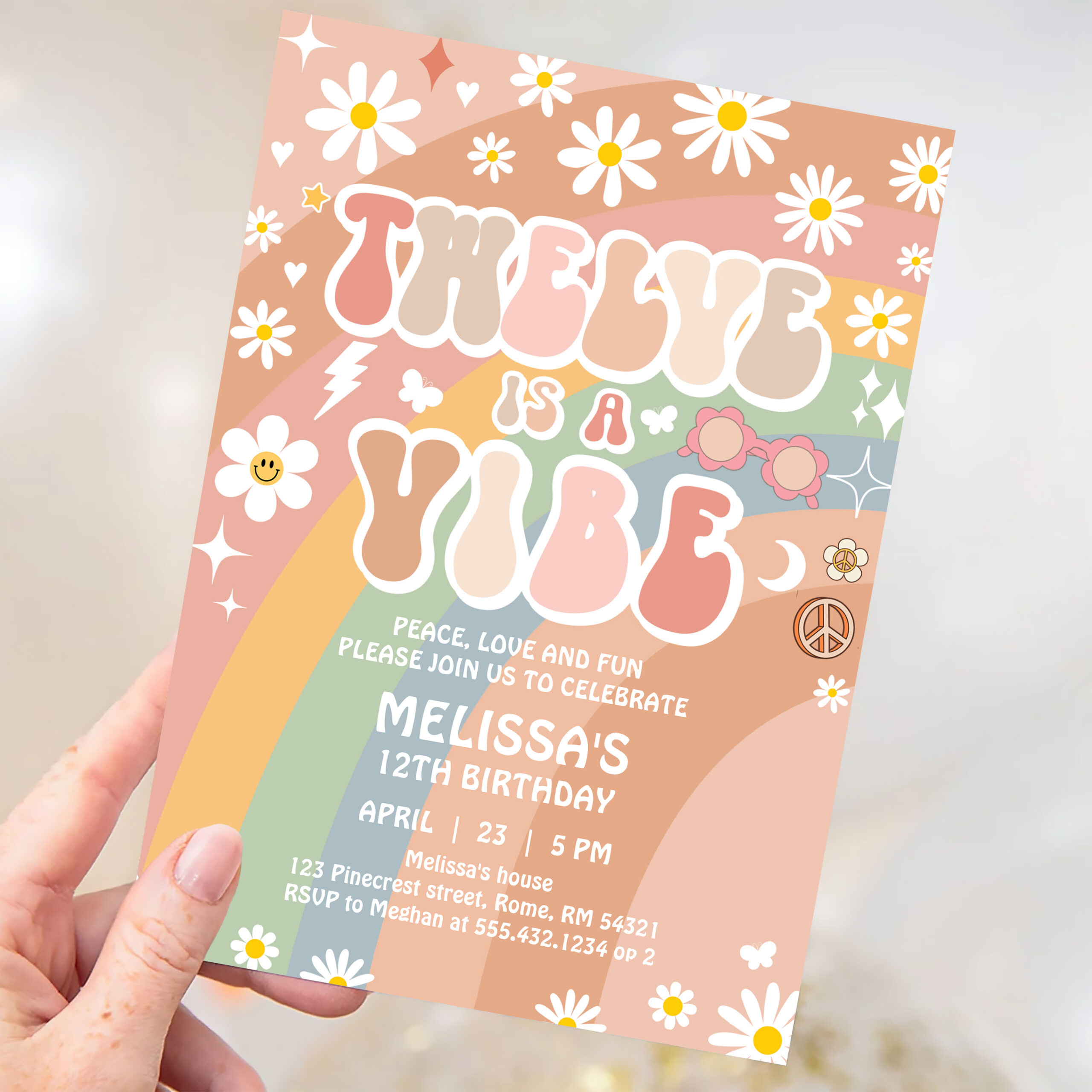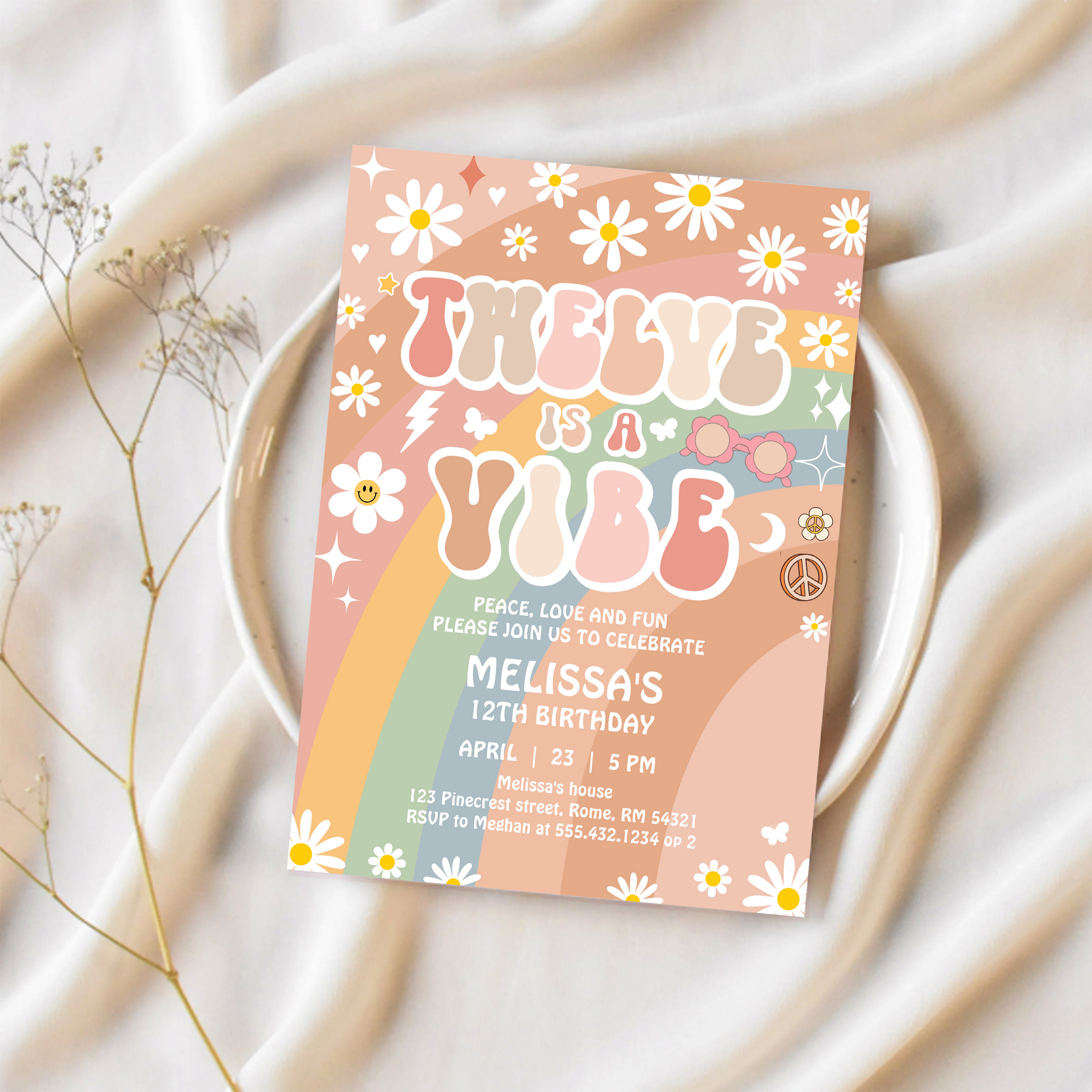 Twelve Is A Vibe Groovy 12th Birthday Party Invitation