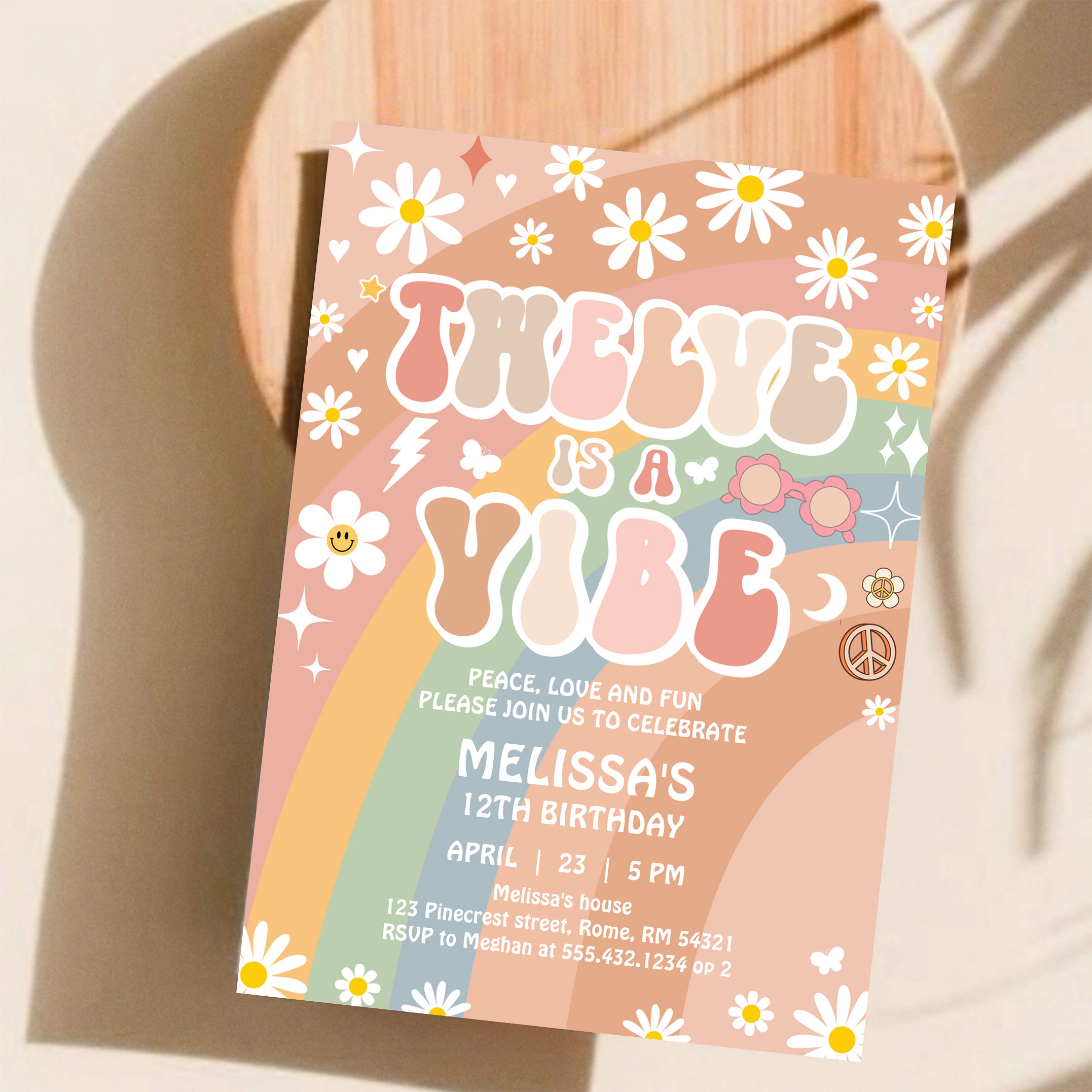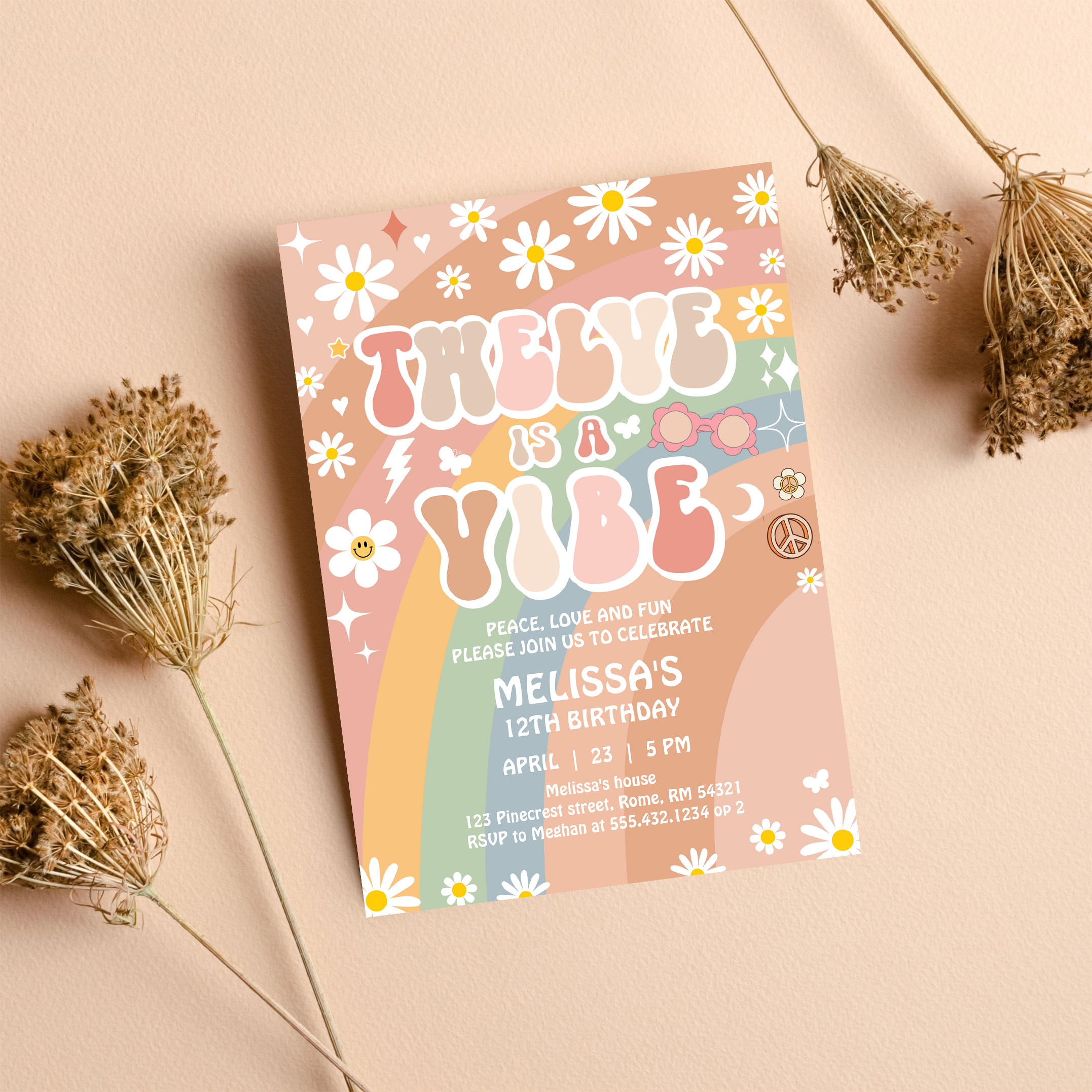 Twelve Is A Vibe Groovy 12th Birthday Party Invitation - Related products