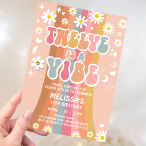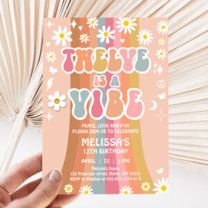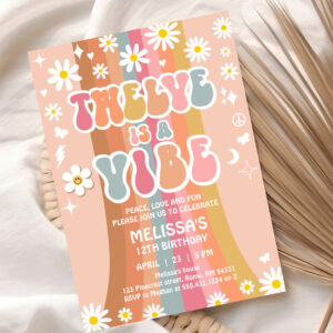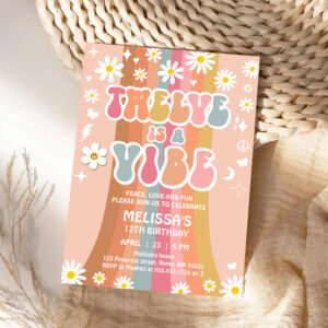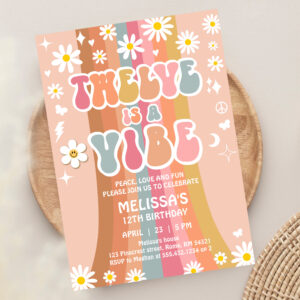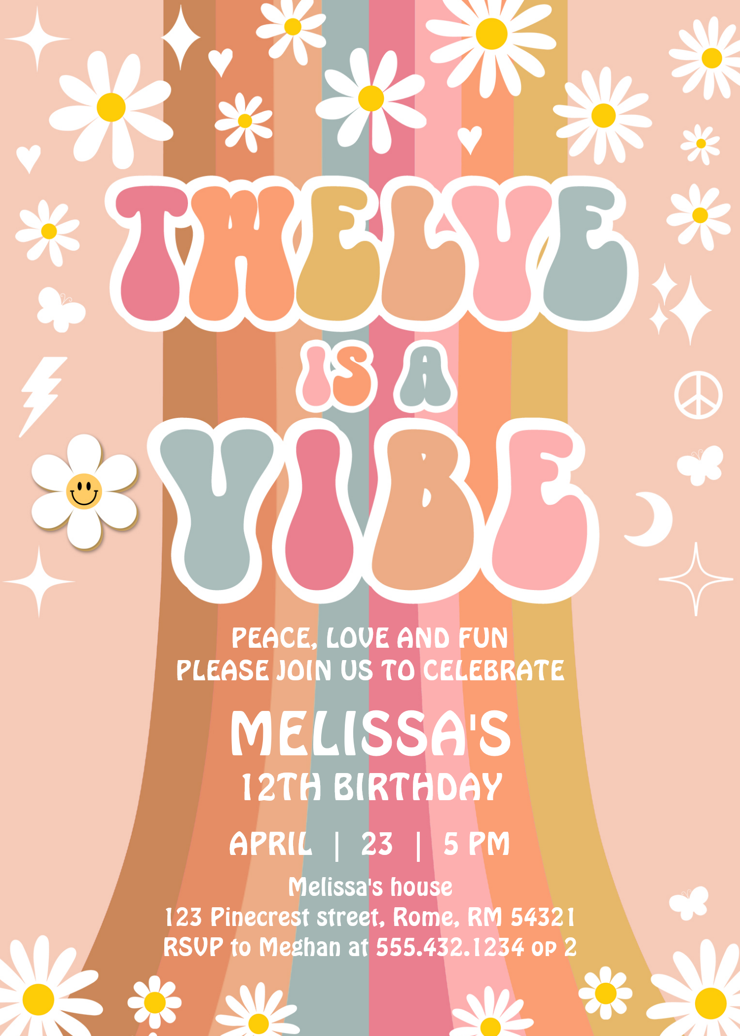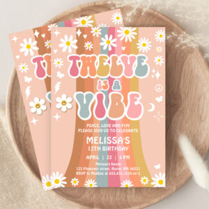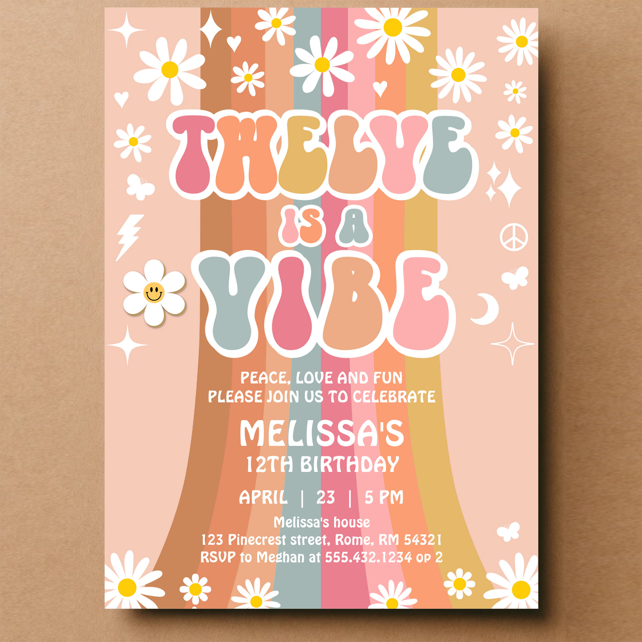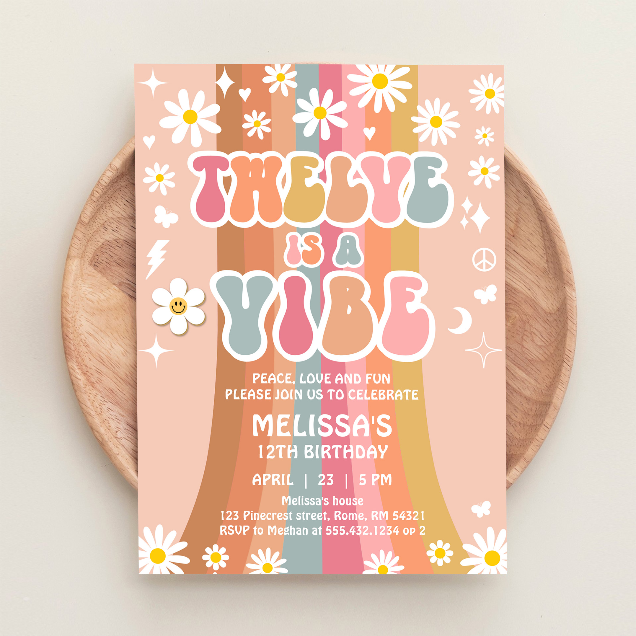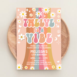 Twelve Is A Vibe Rainbow Groovy 12th Birthday Invitation