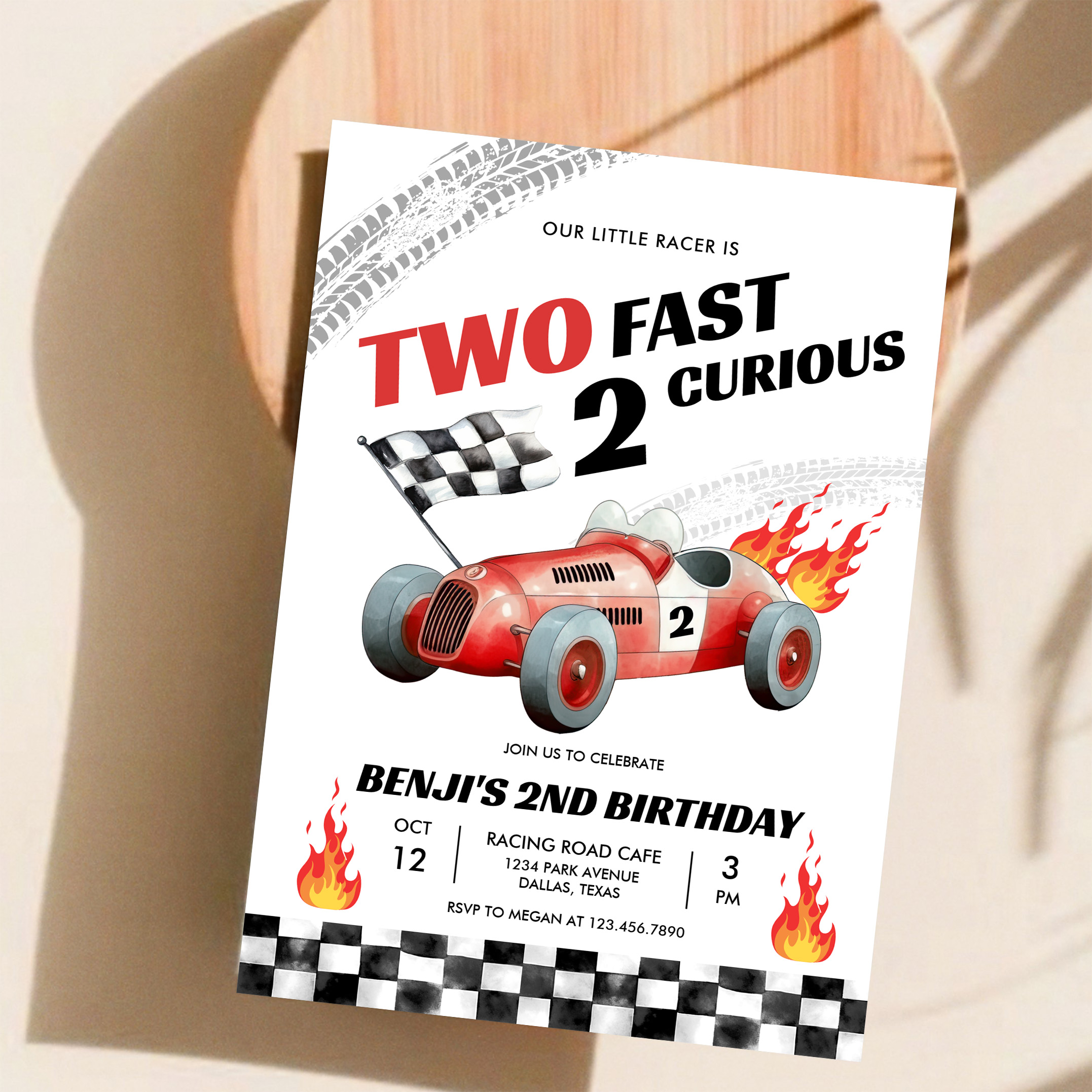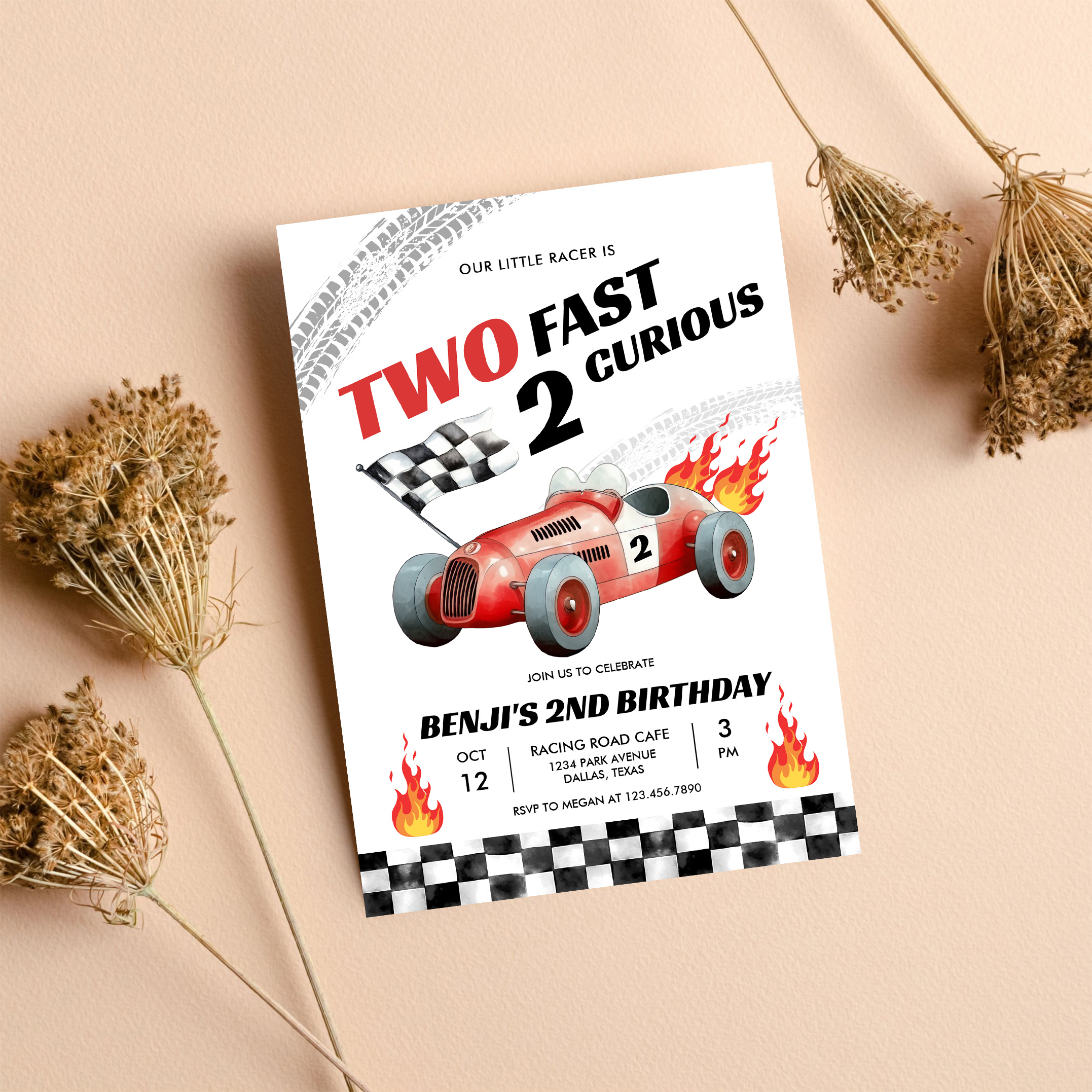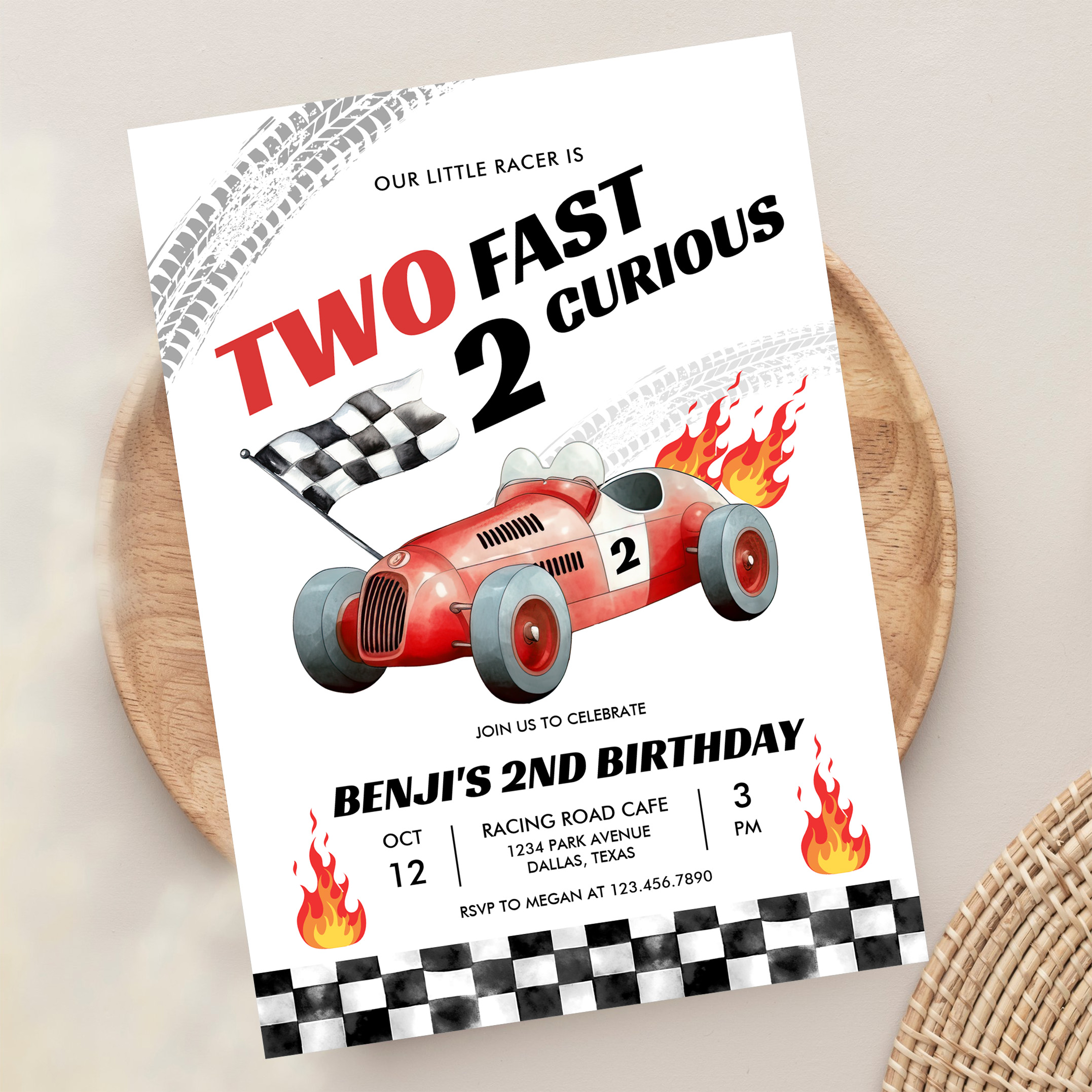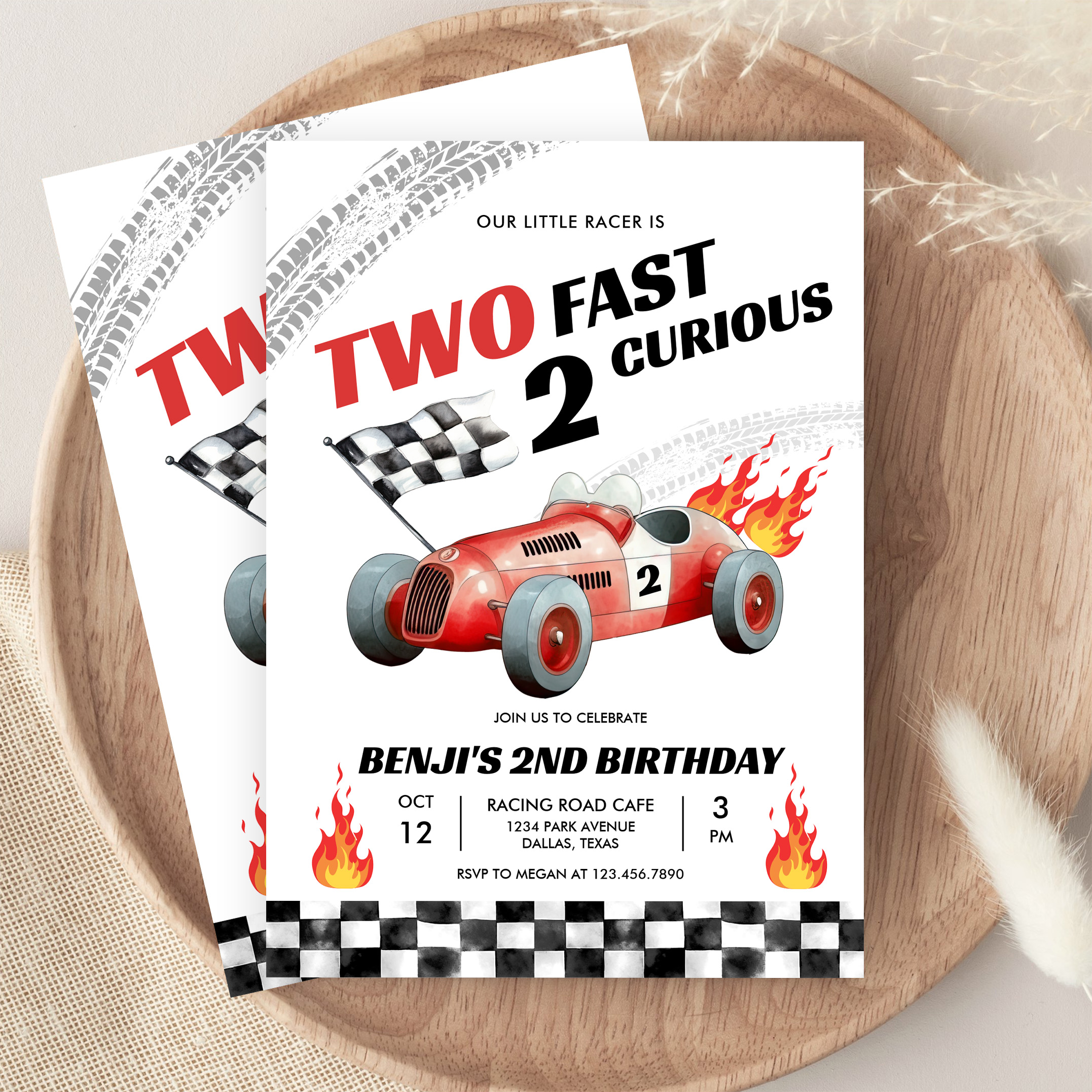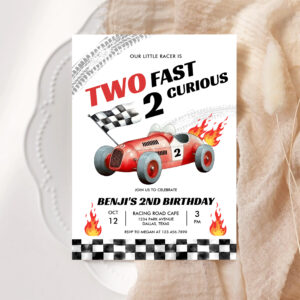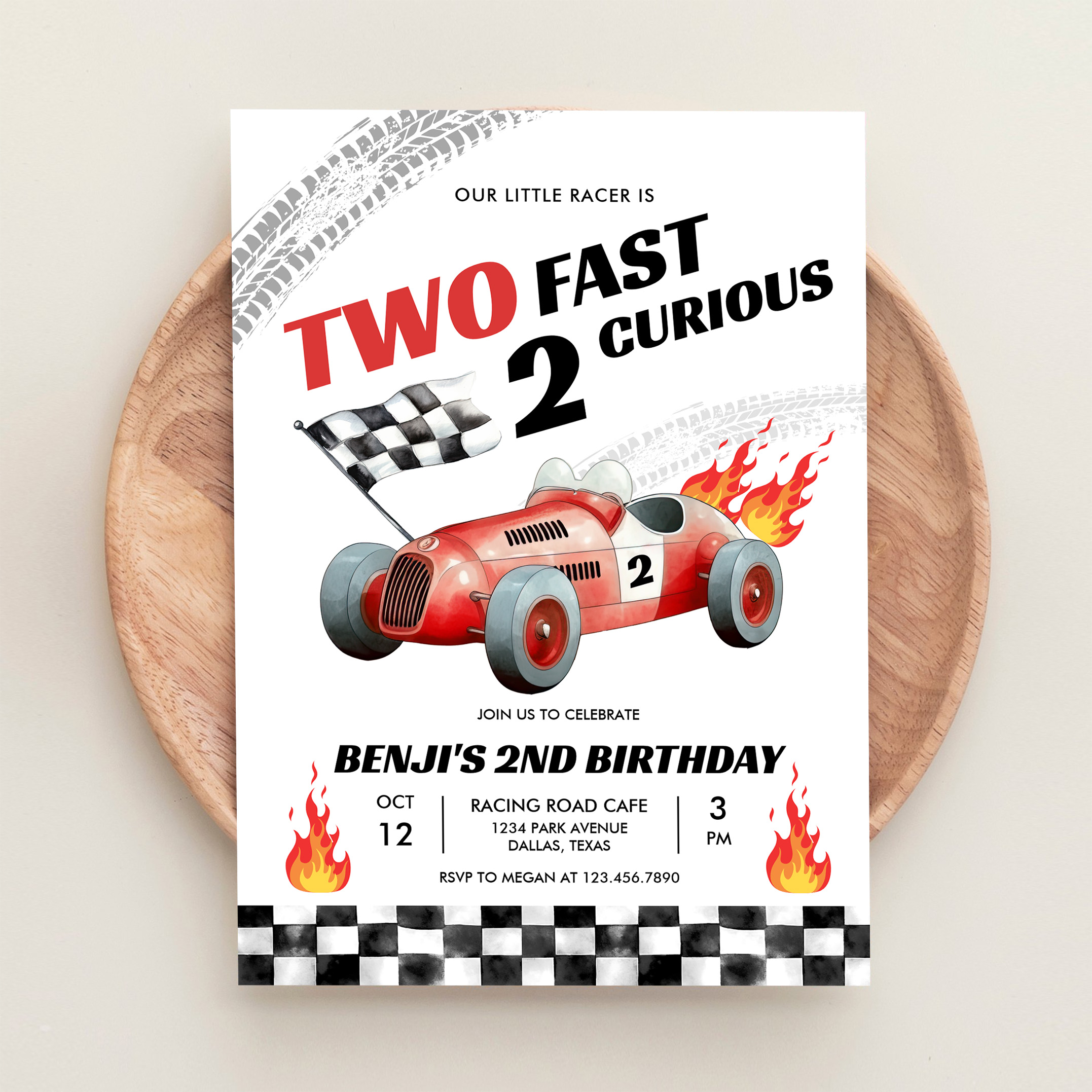 Two Fast Race Car 2nd Birthday 2nd Racing Boy Invitation