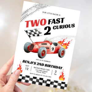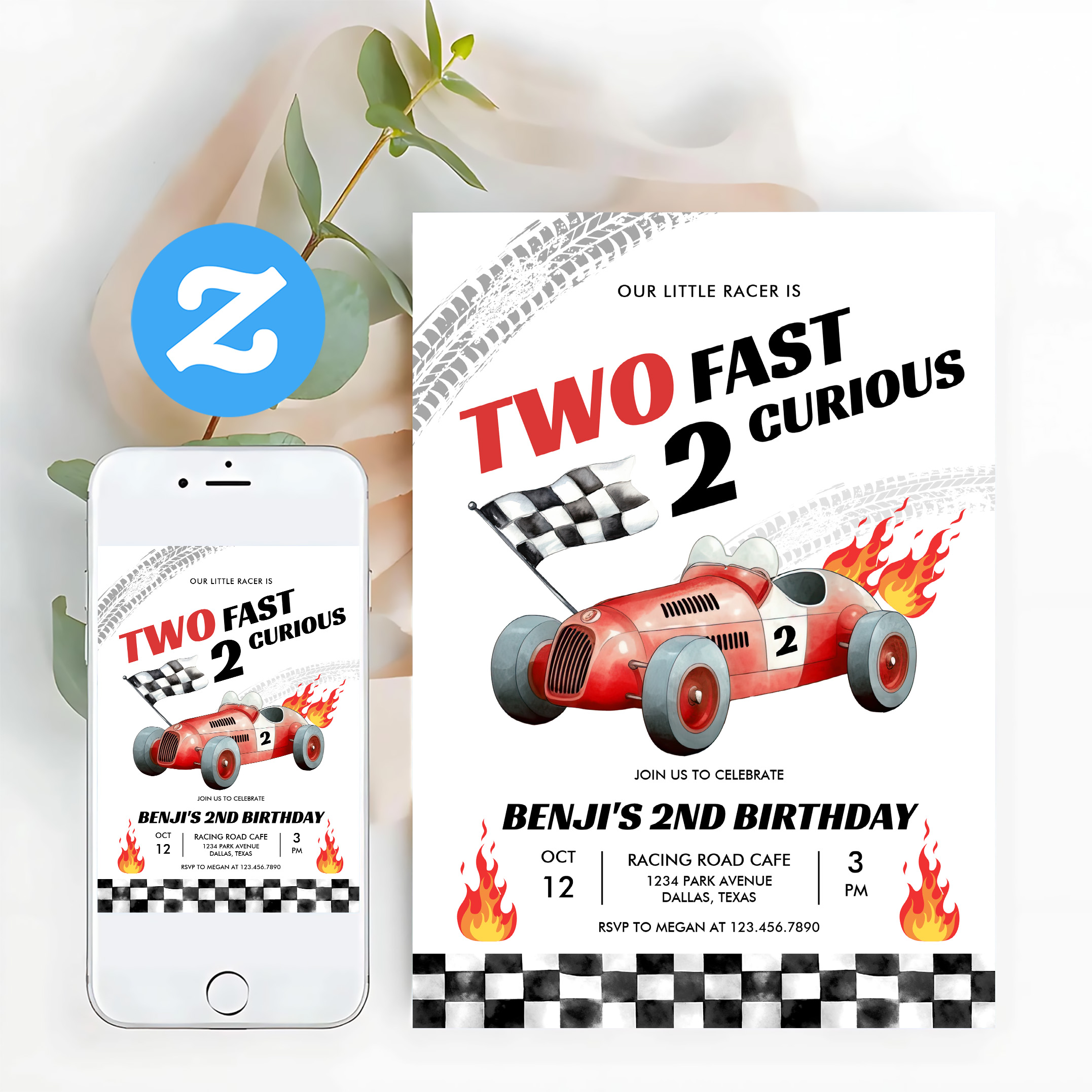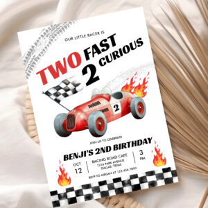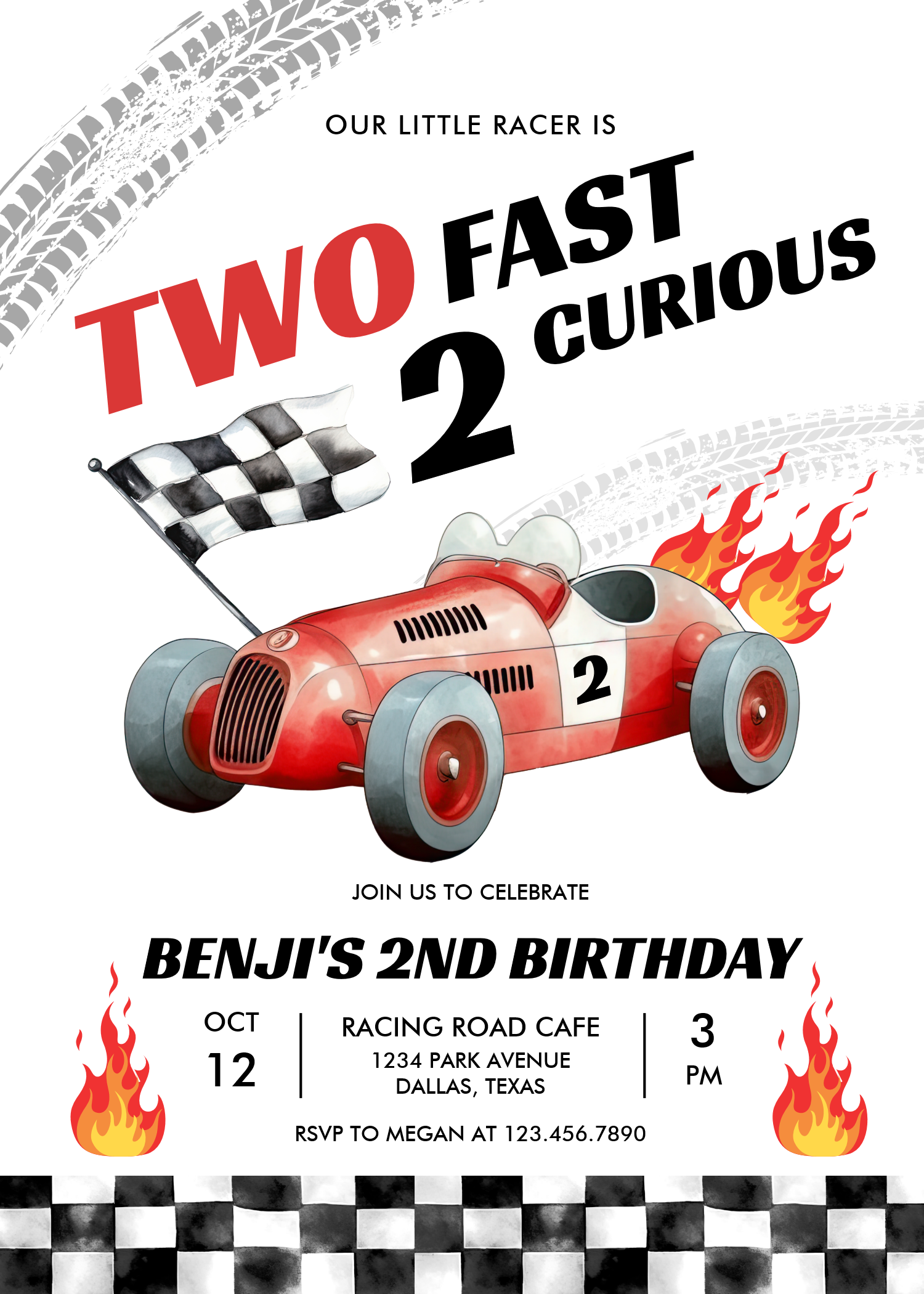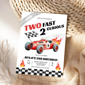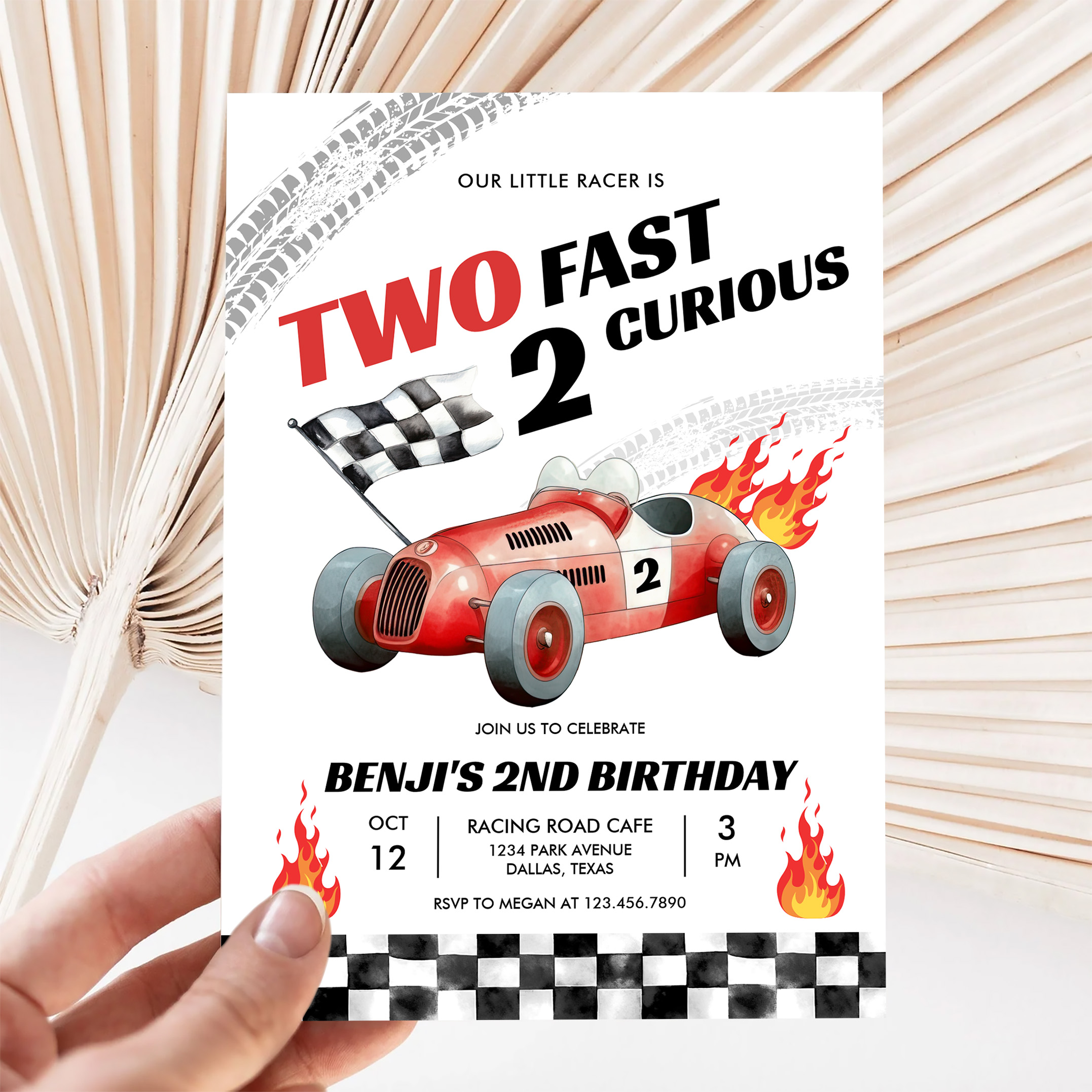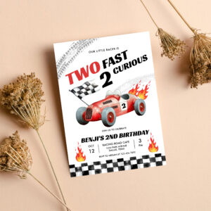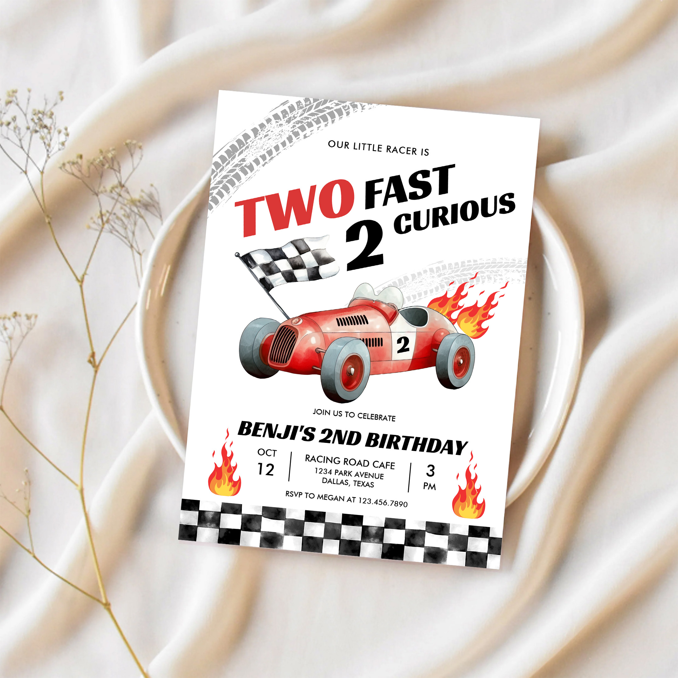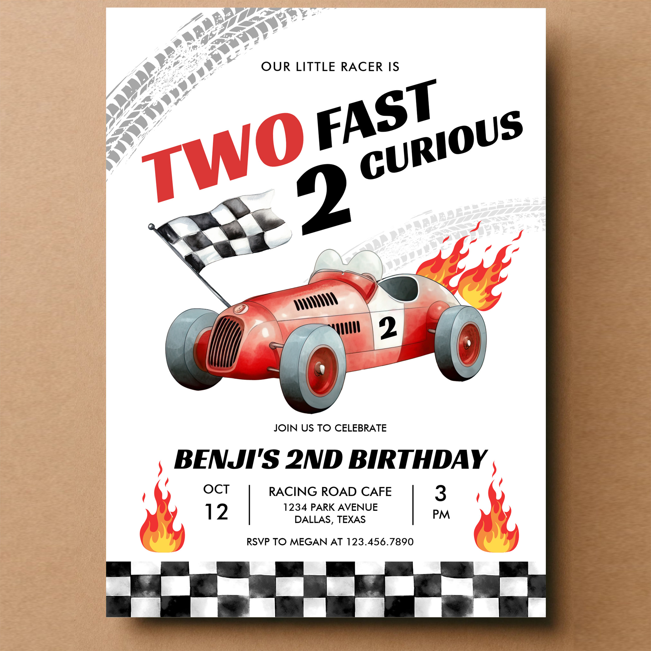 Two Fast Race Car 2nd Birthday 2nd Racing Boy Invitation