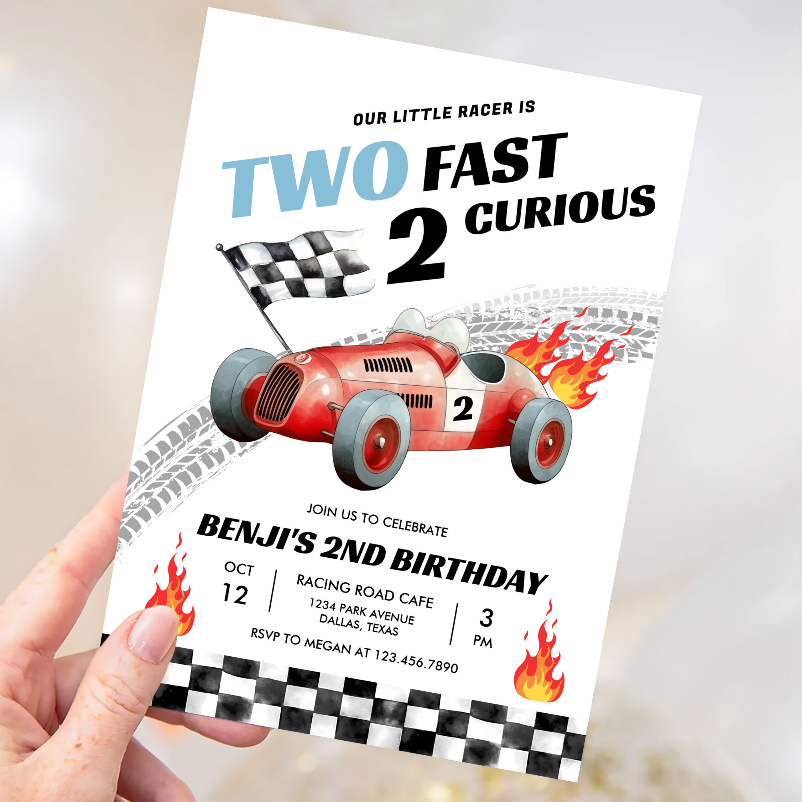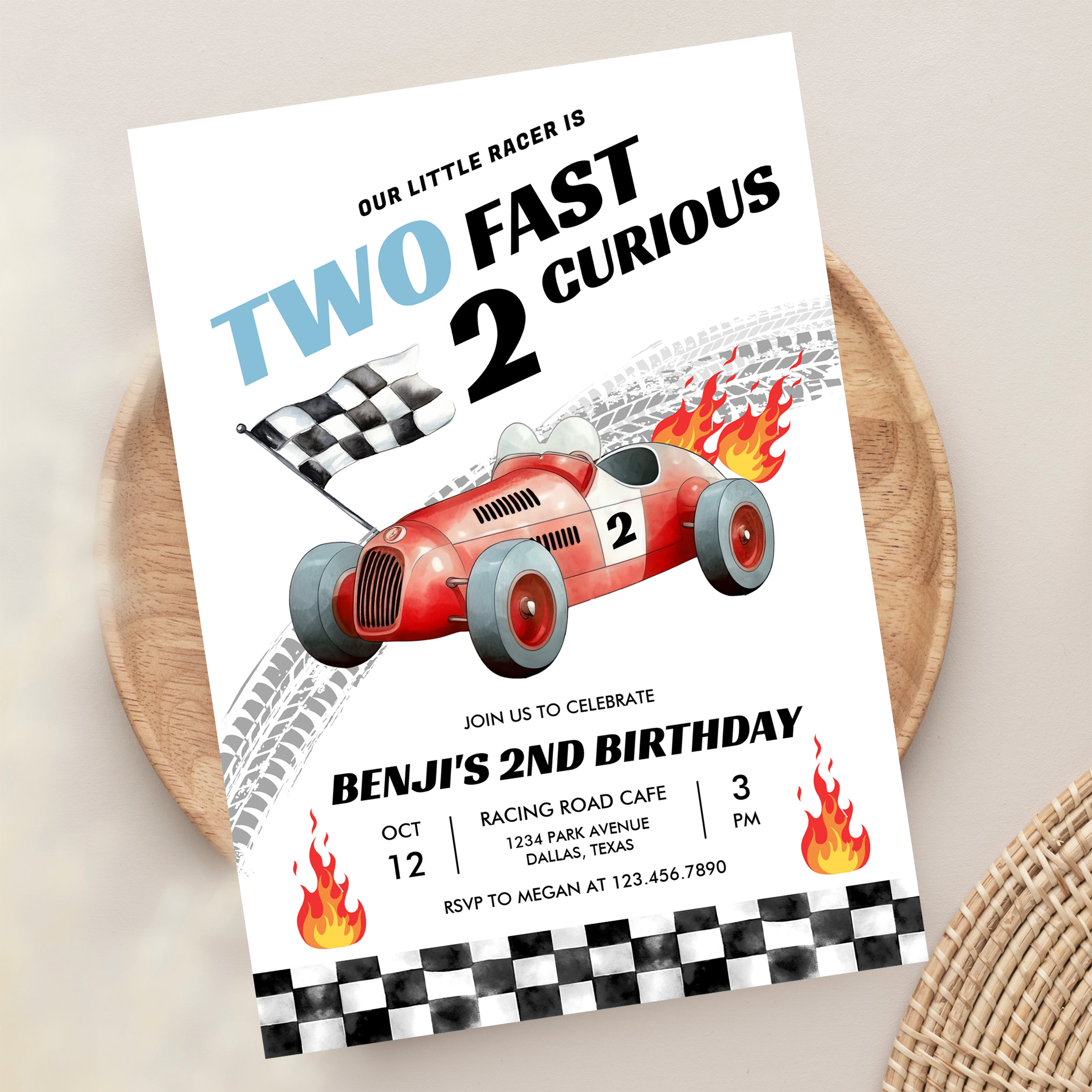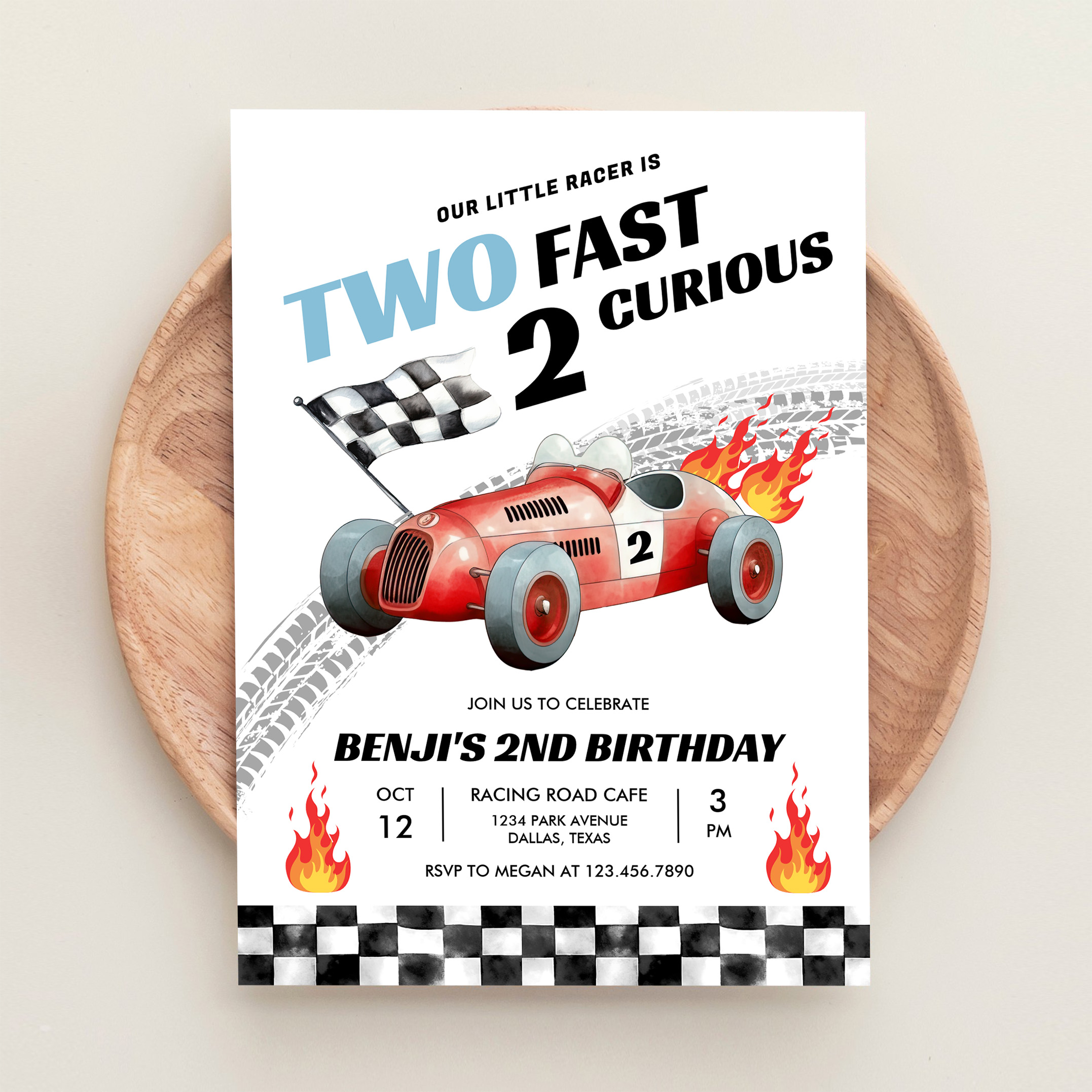 Two Fast Race Car 2nd Birthday Racing Invitation