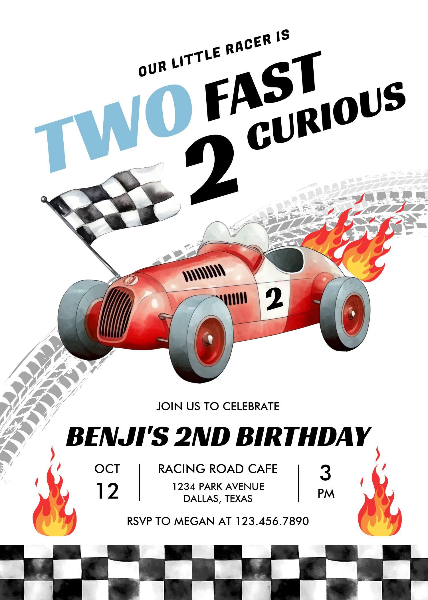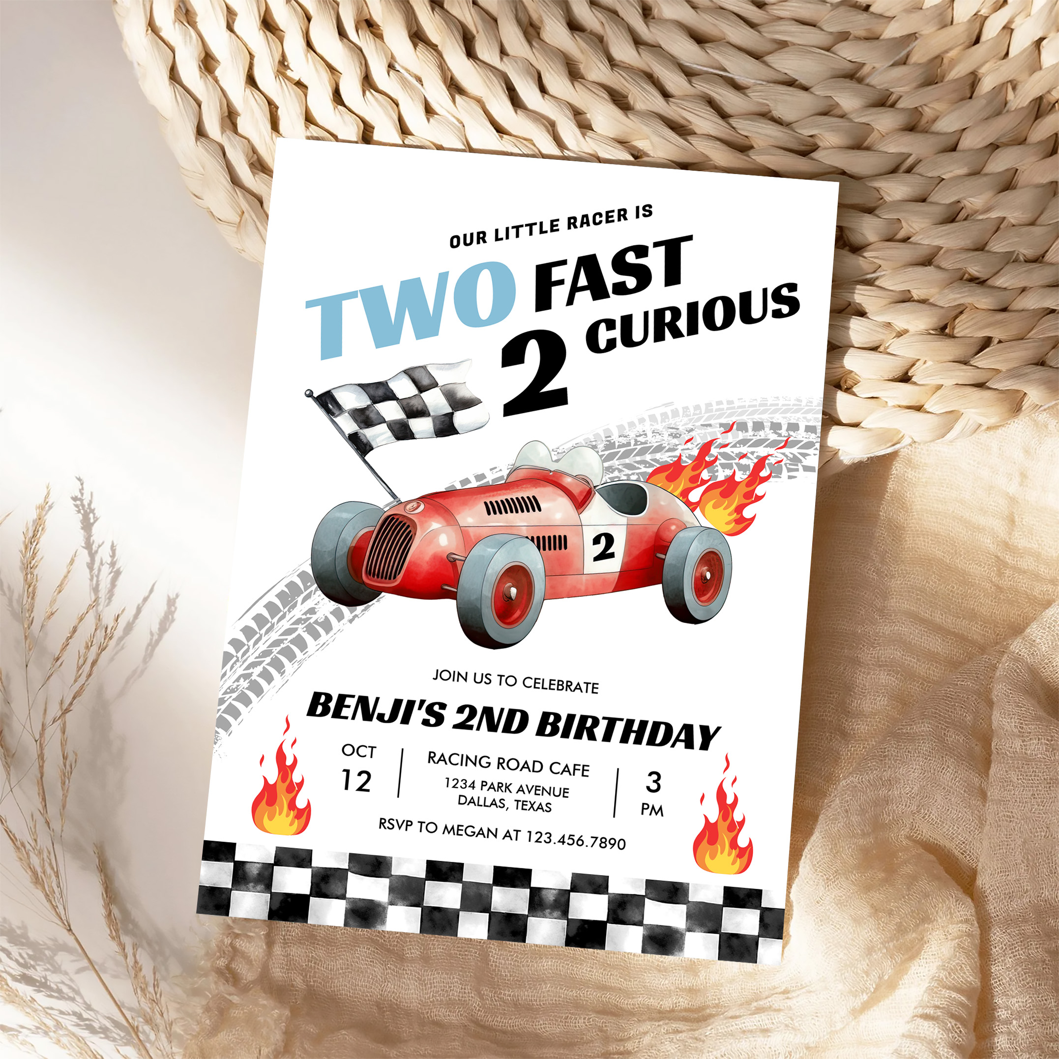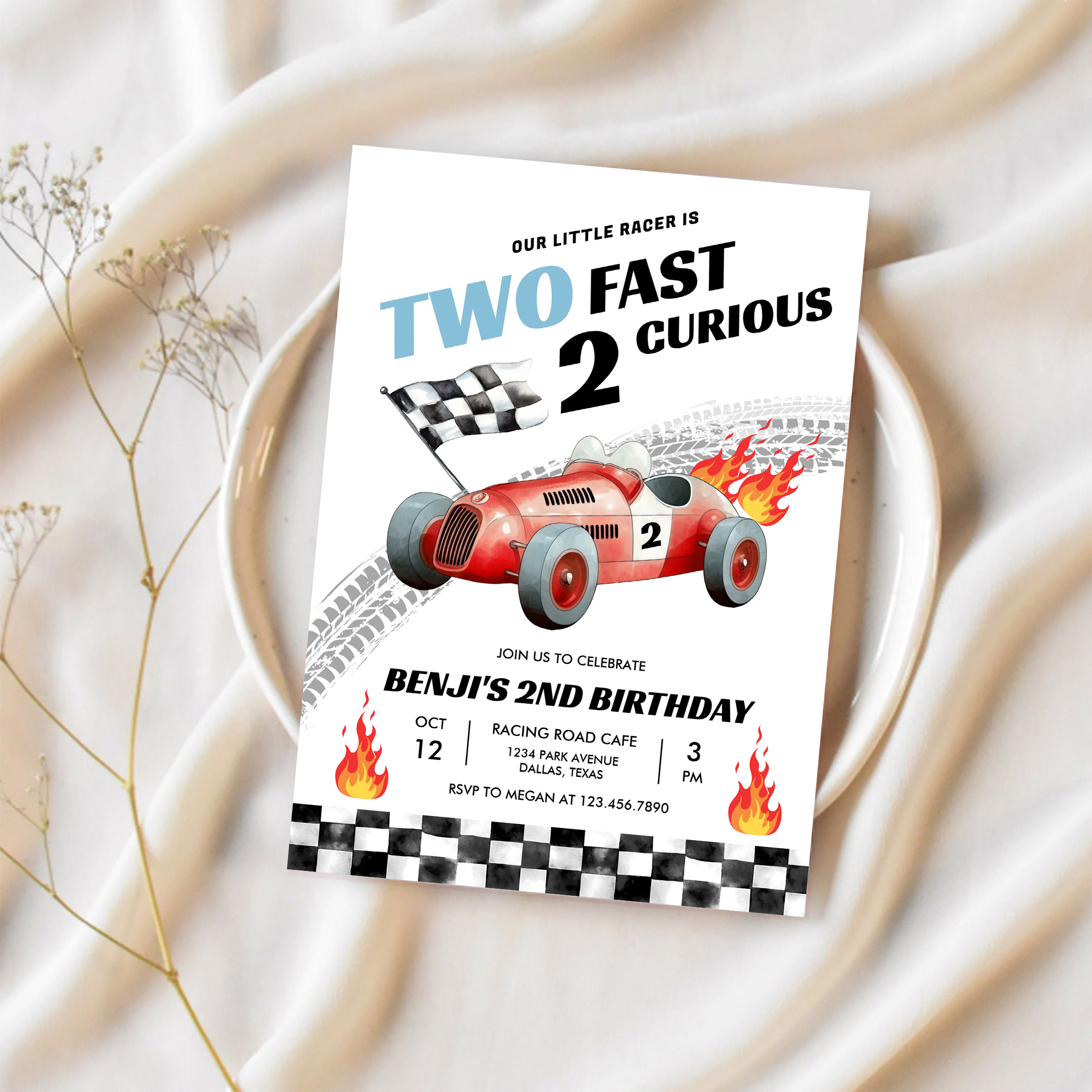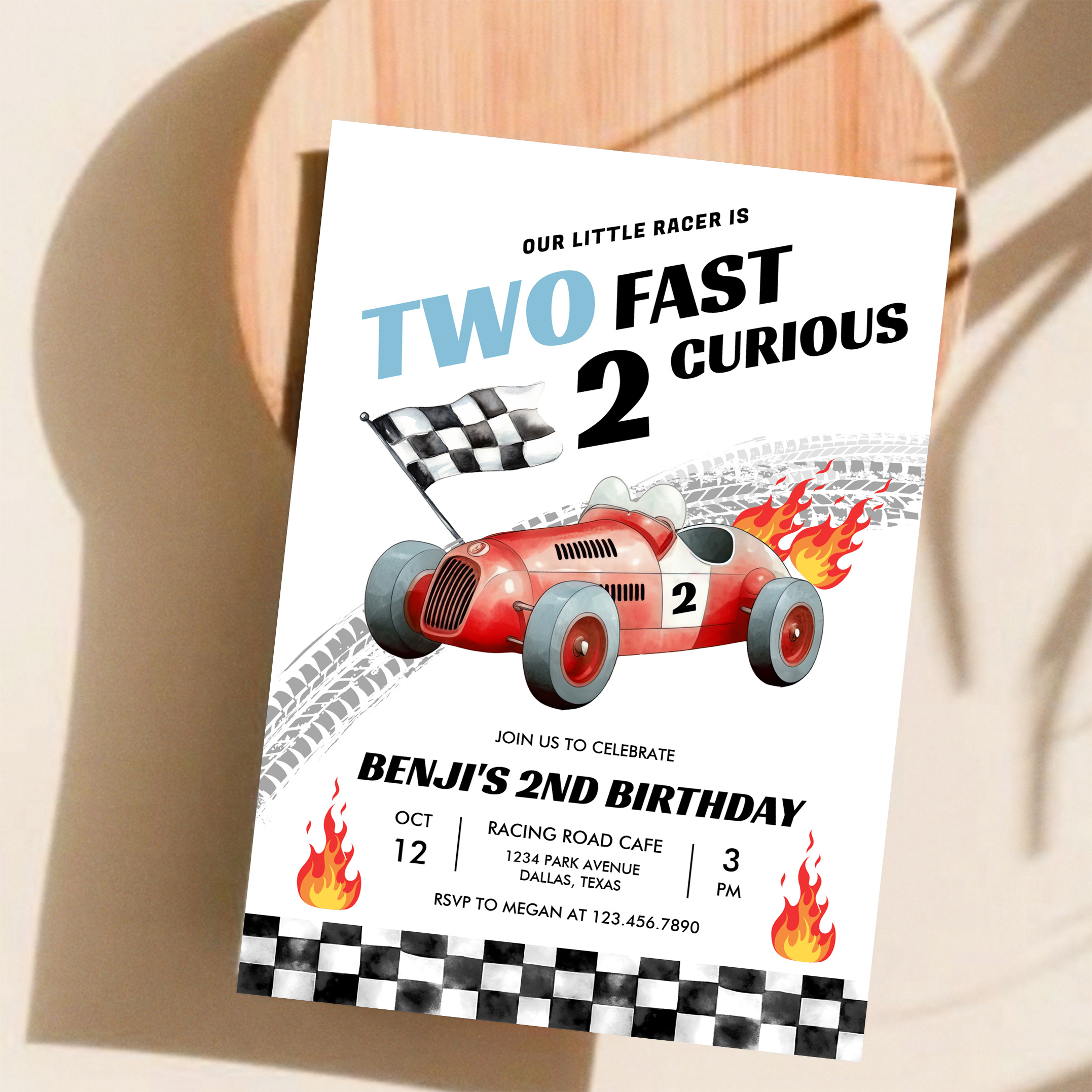 Two Fast Race Car 2nd Birthday Racing Invitation