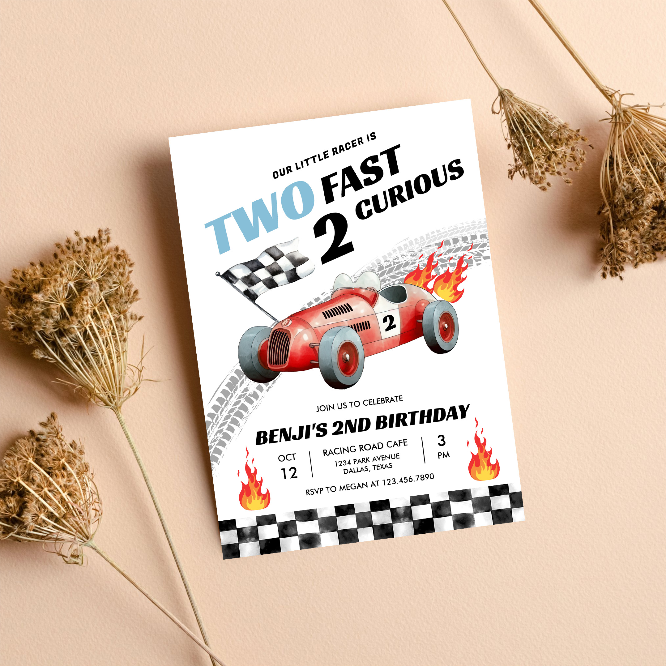 Two Fast Race Car 2nd Birthday Racing Invitation - Related products