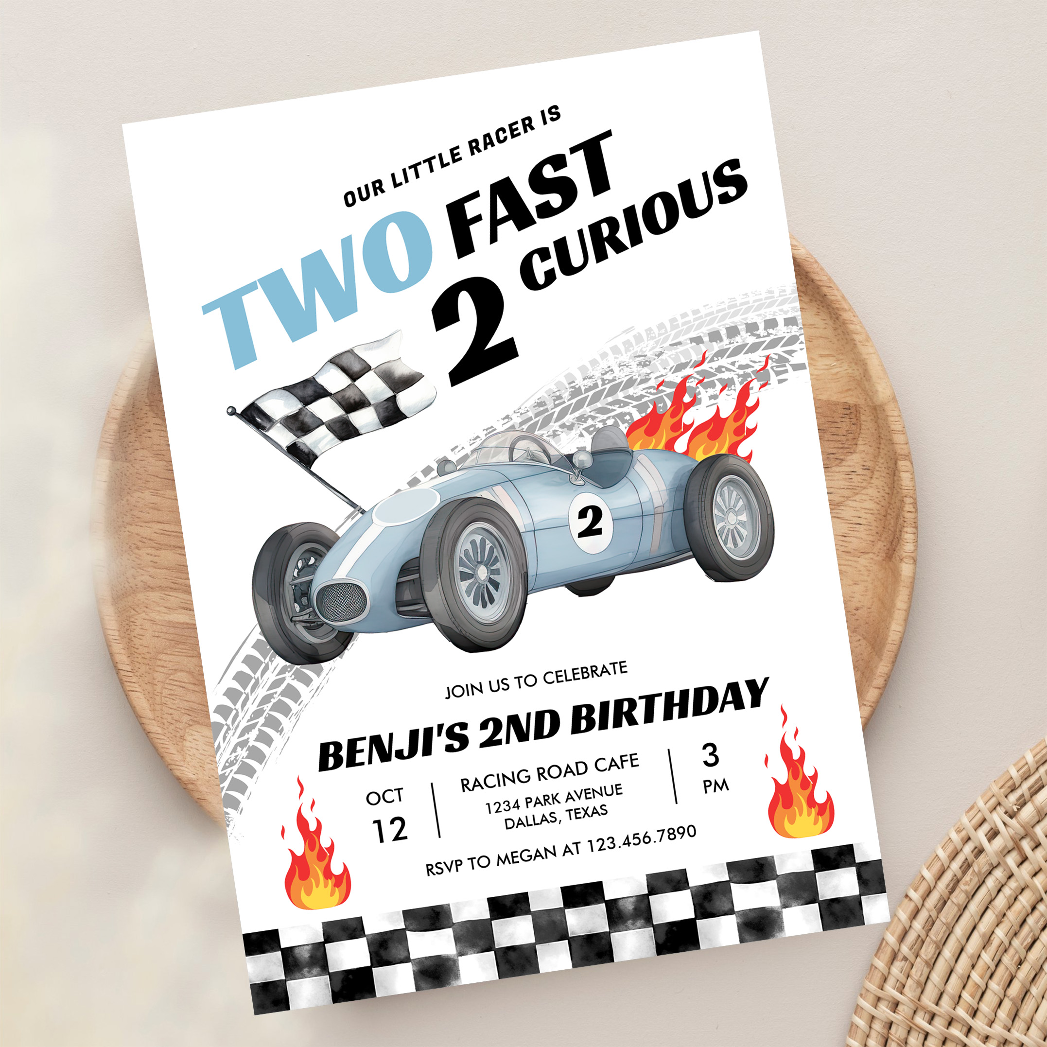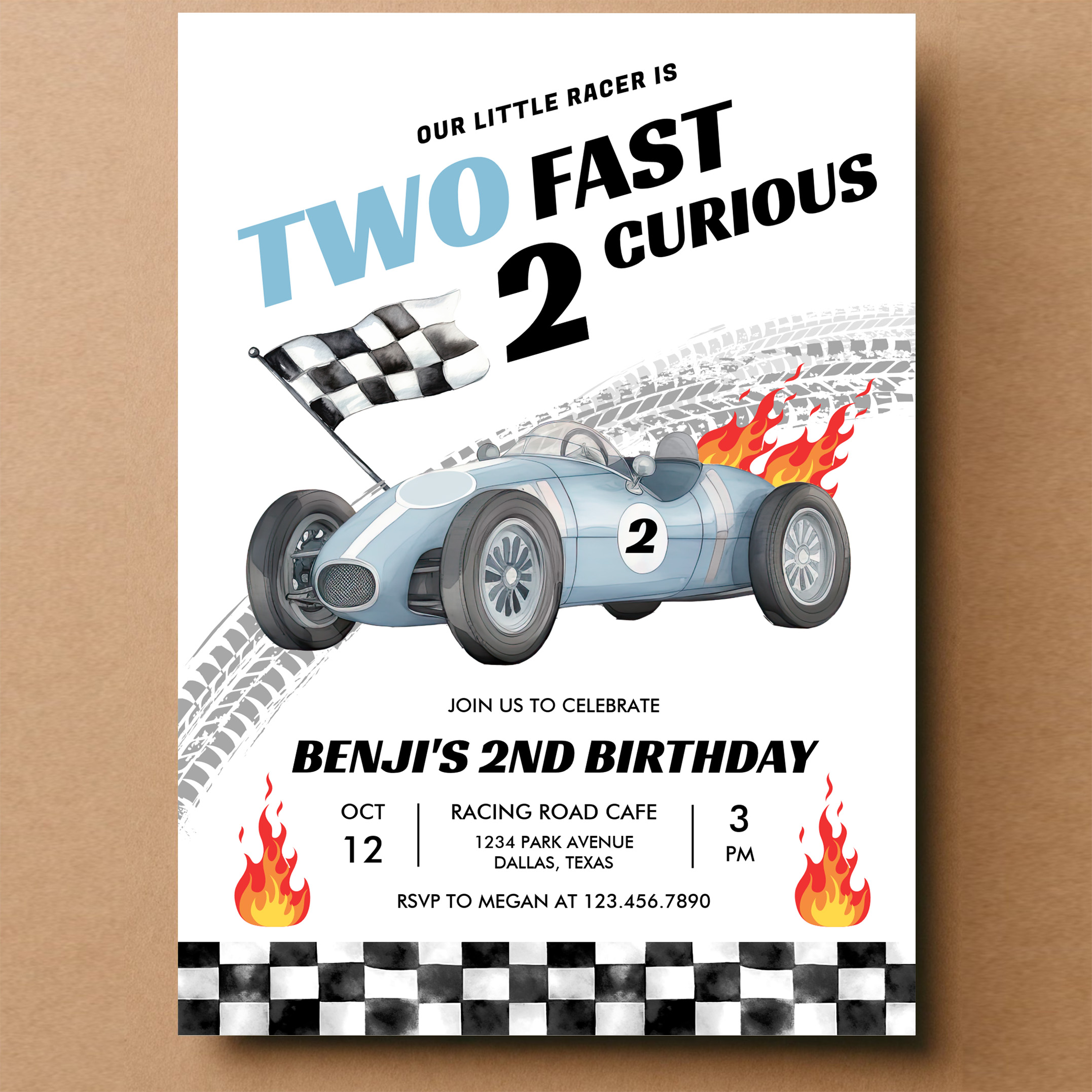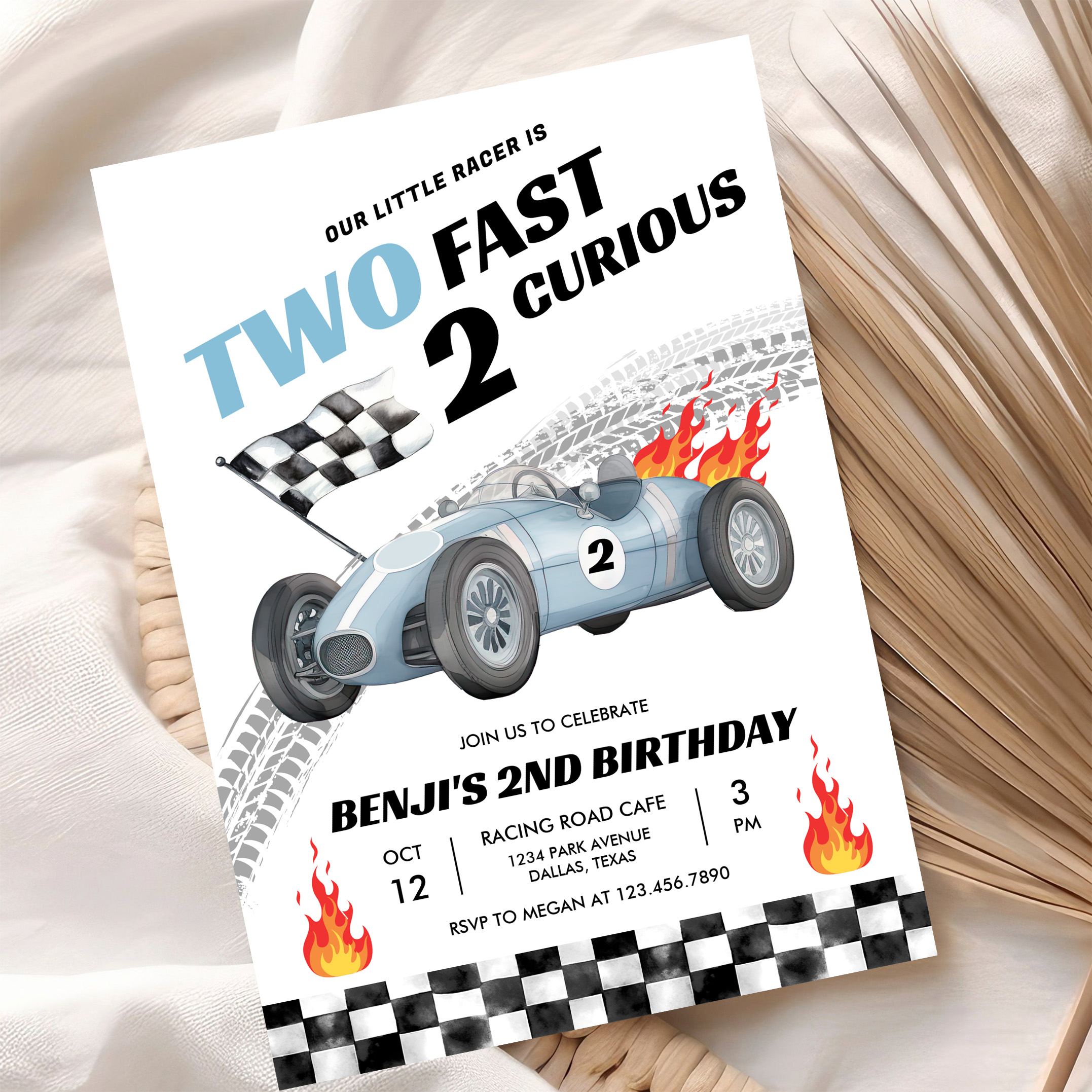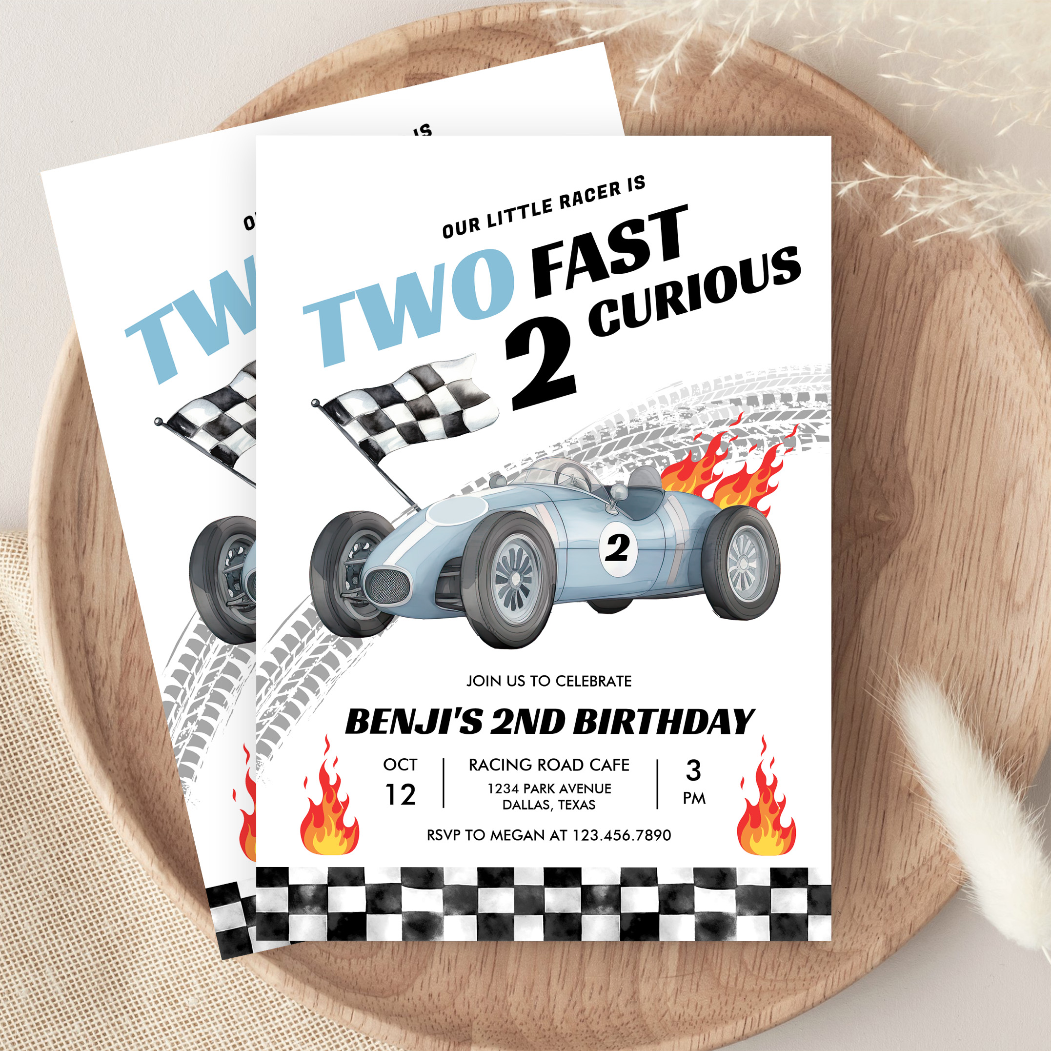 Two Fast Race Car 2nd Birthday Racing Invitation