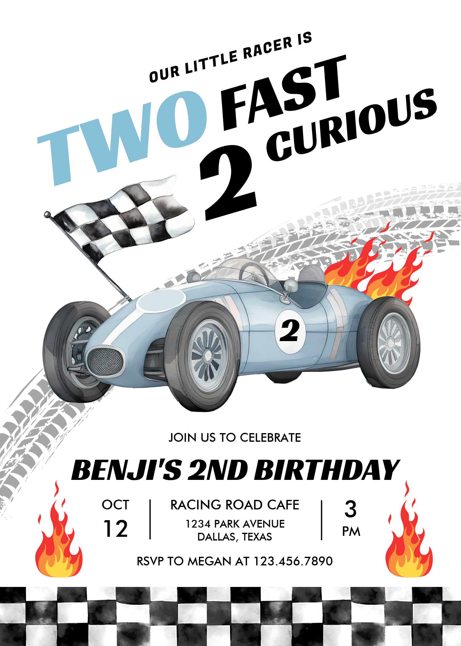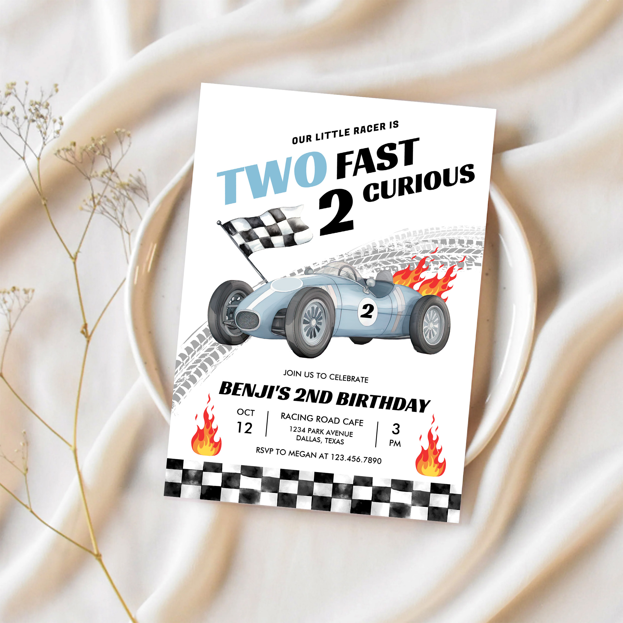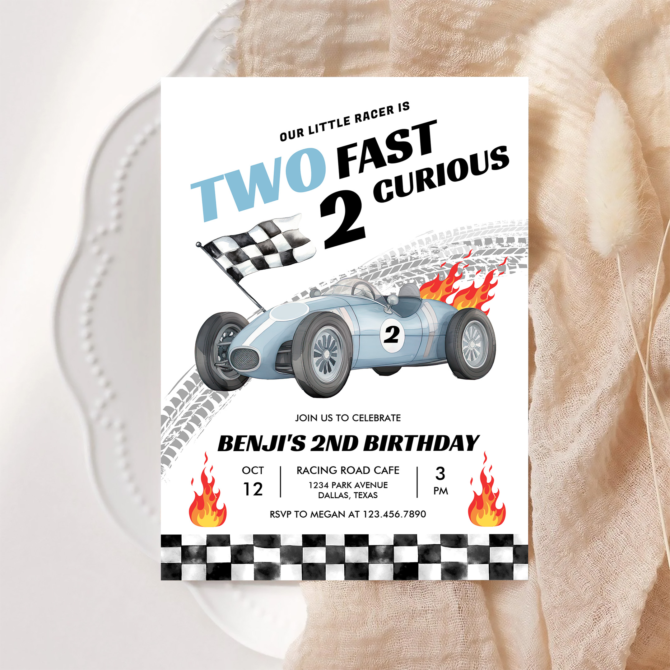 Two Fast Race Car 2nd Birthday Racing Invitation