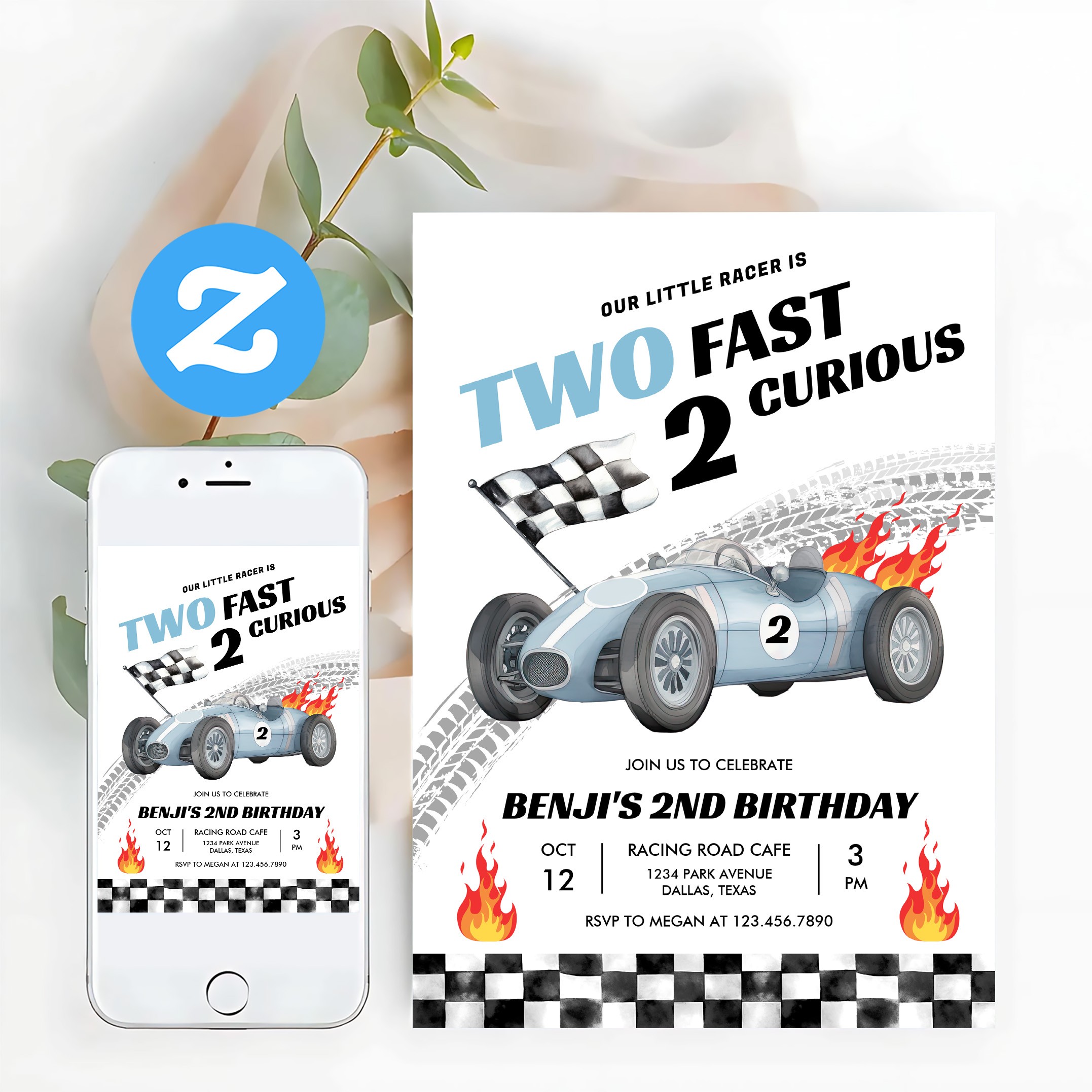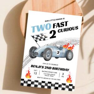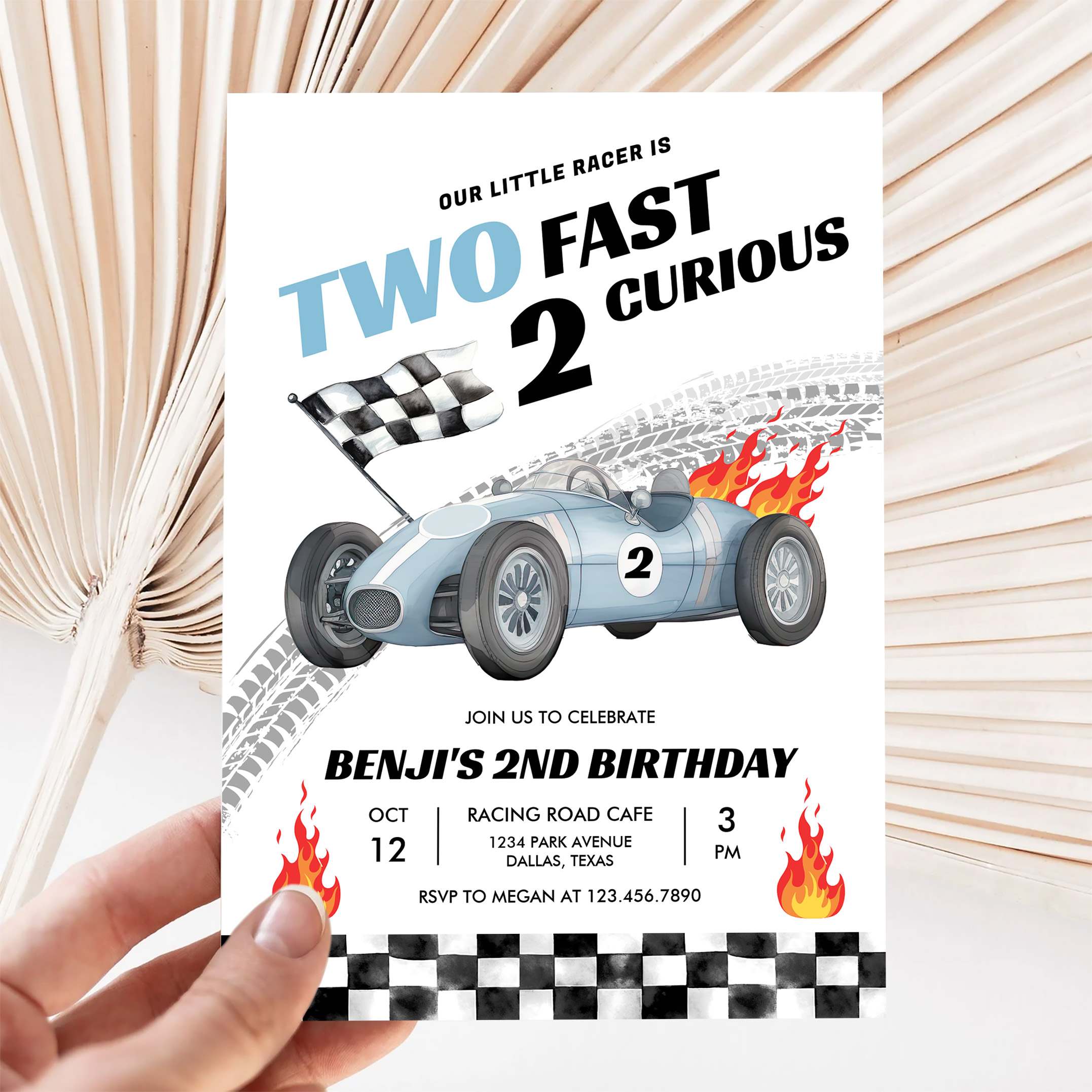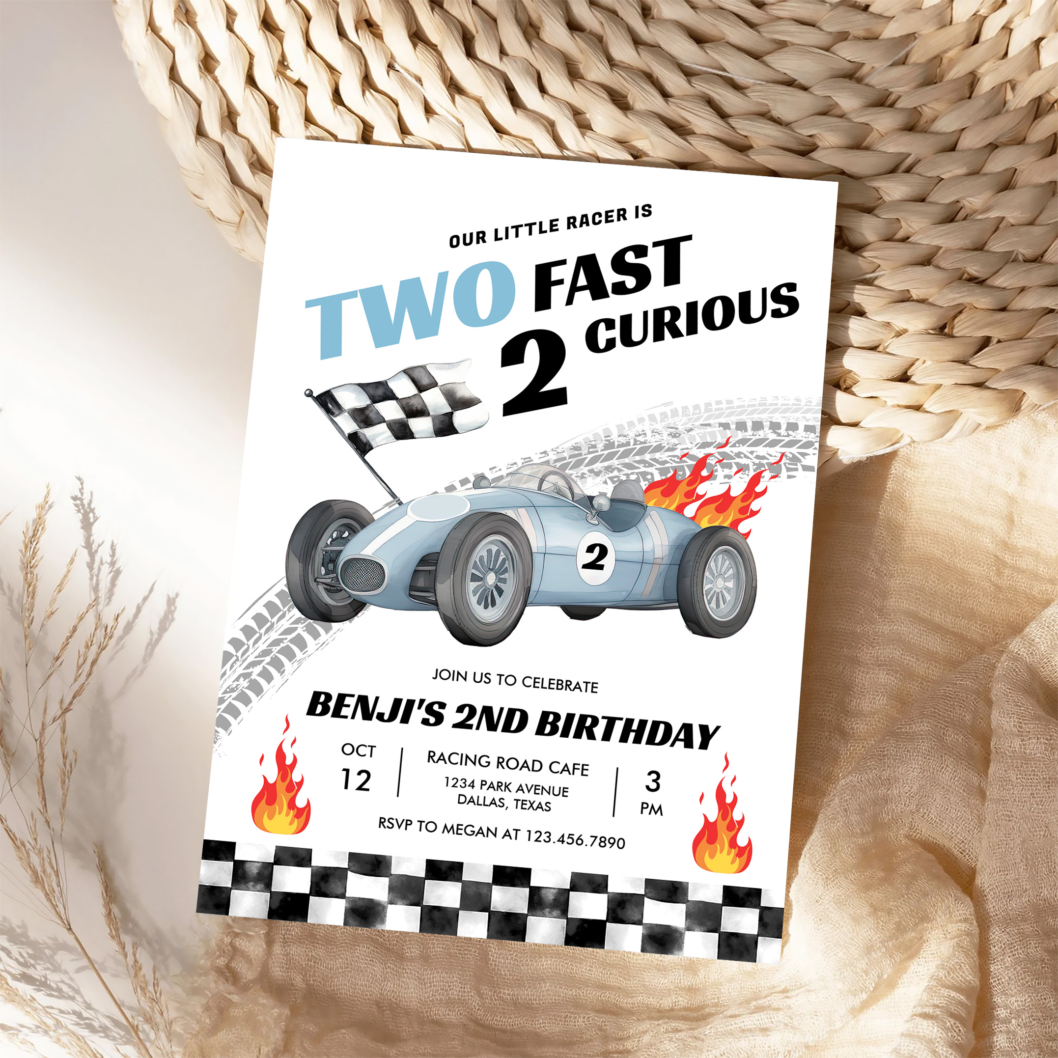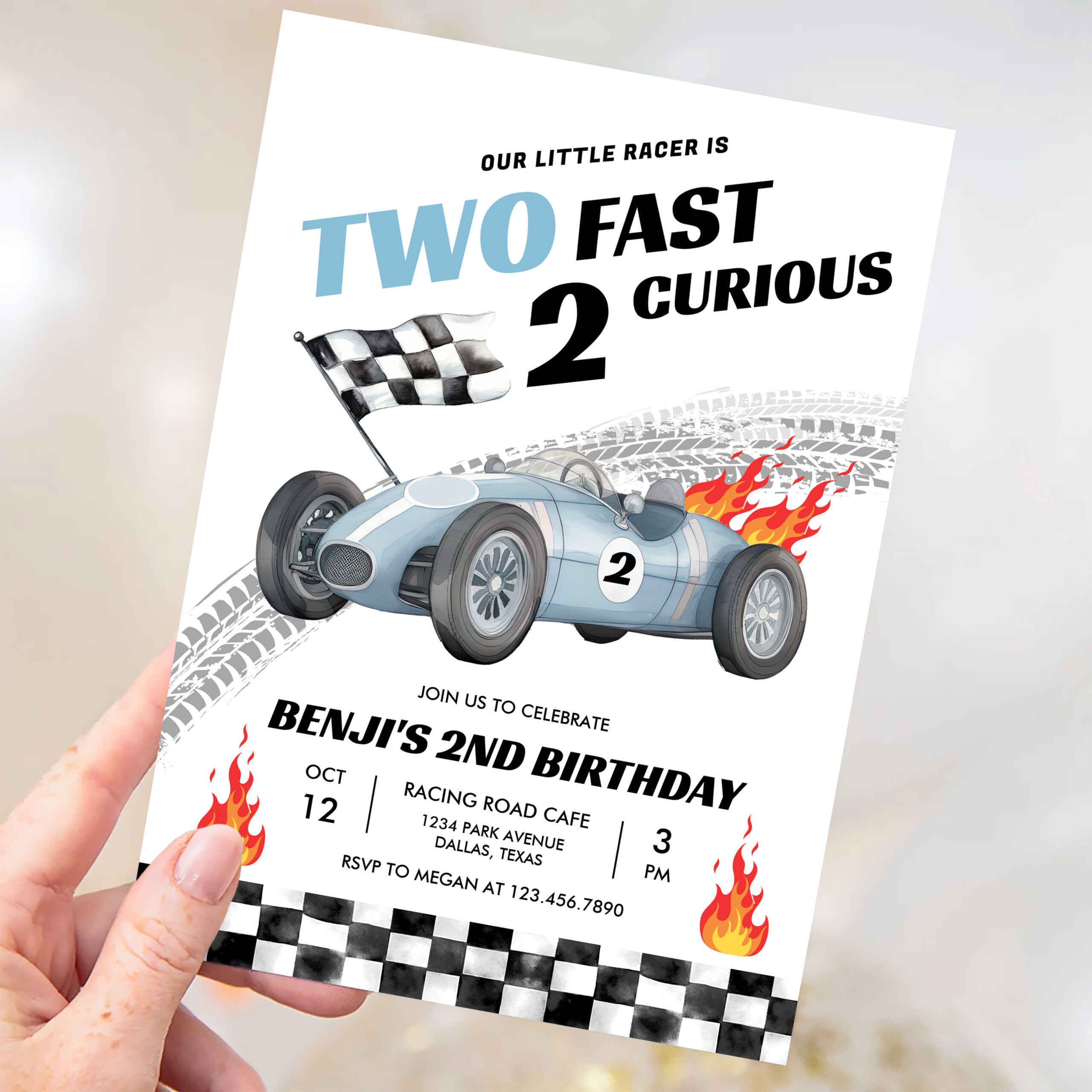 Two Fast Race Car 2nd Birthday Racing Invitation