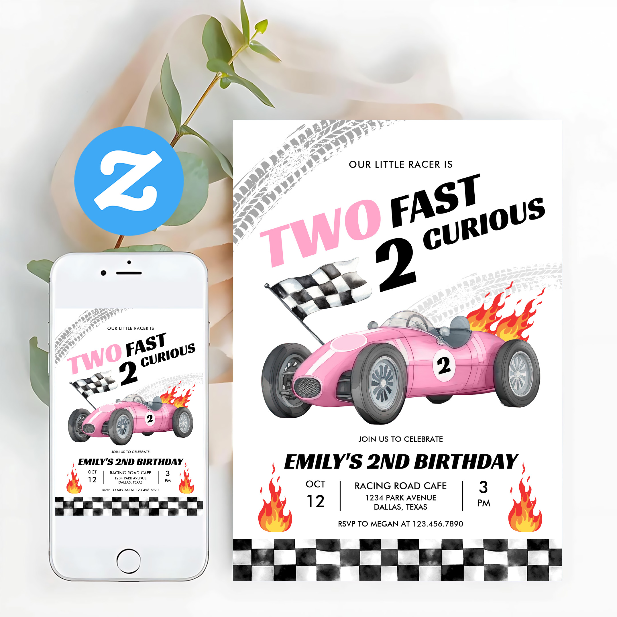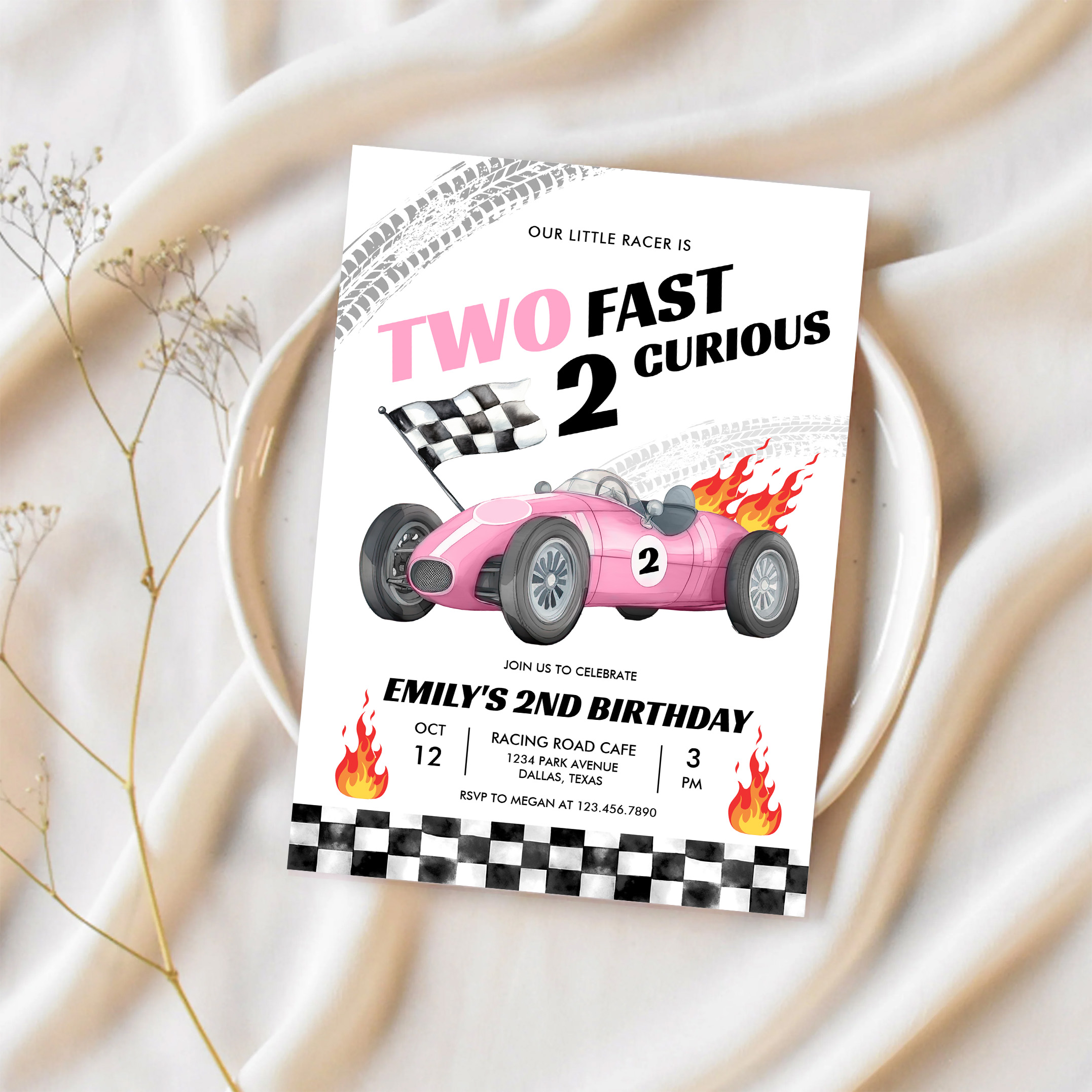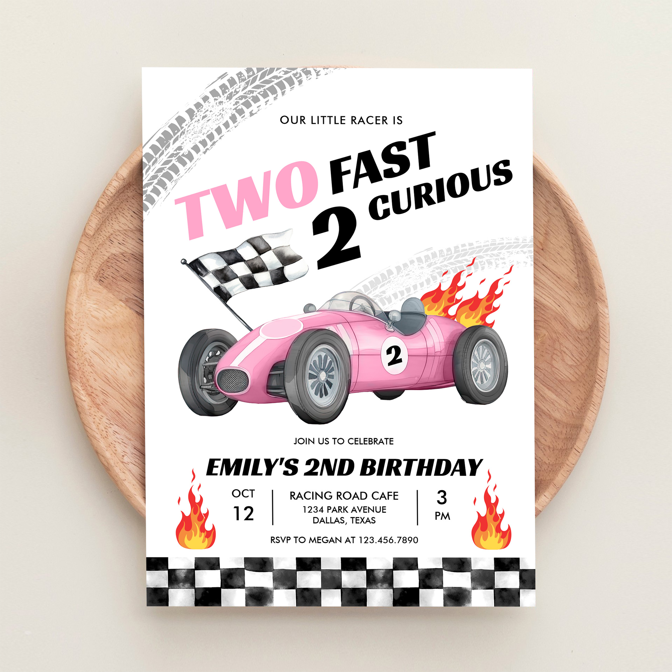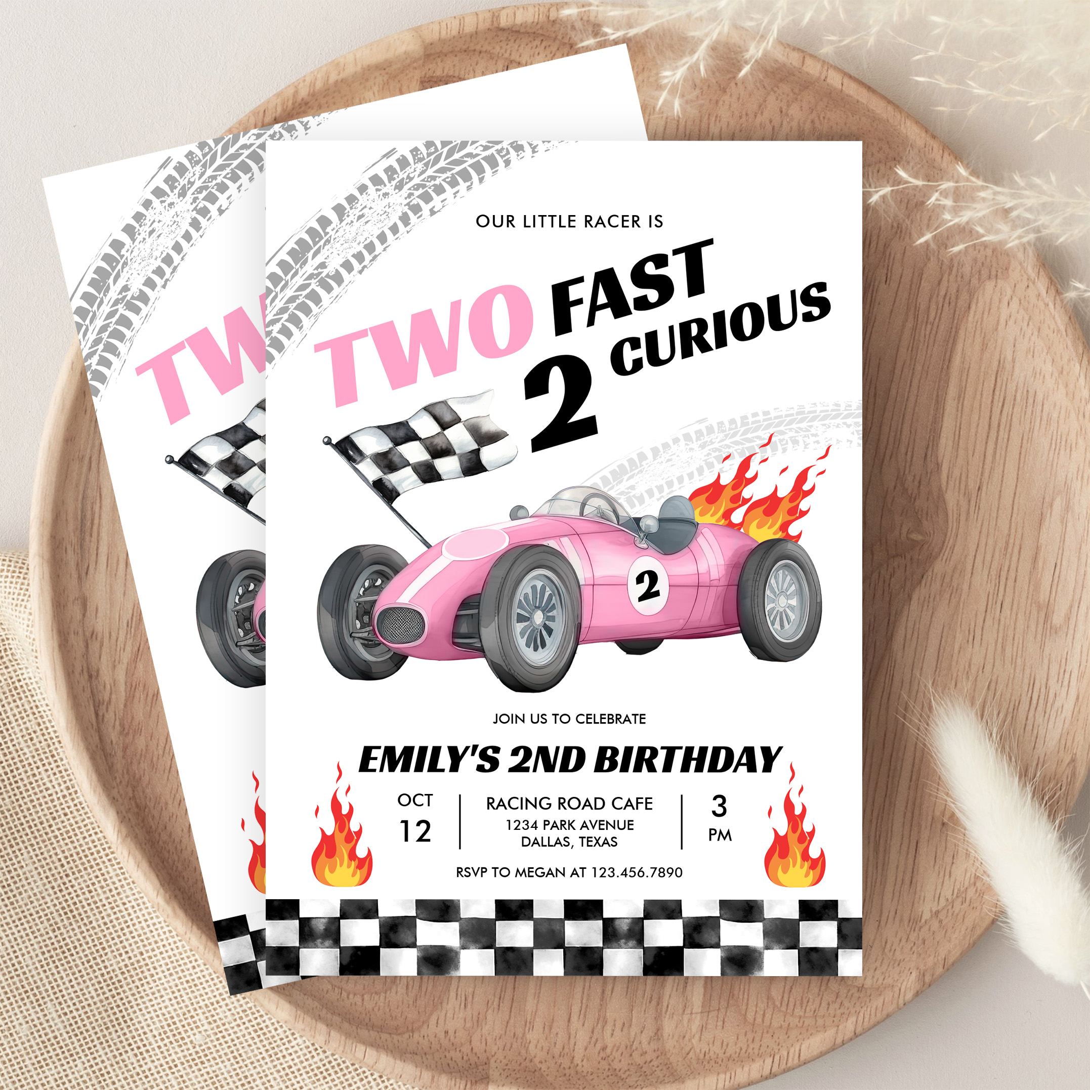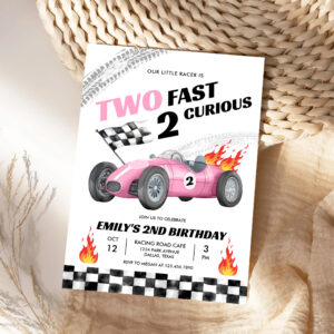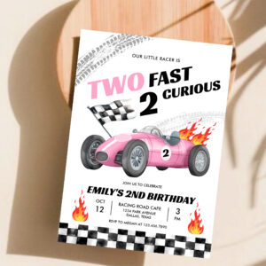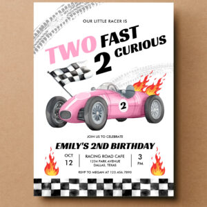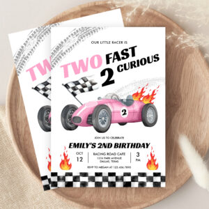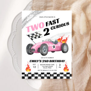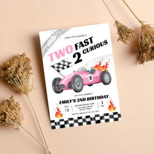 Two Fast Race Pink Car 2nd Girl Birthday Invitation - Related products