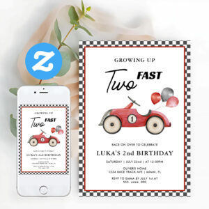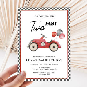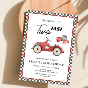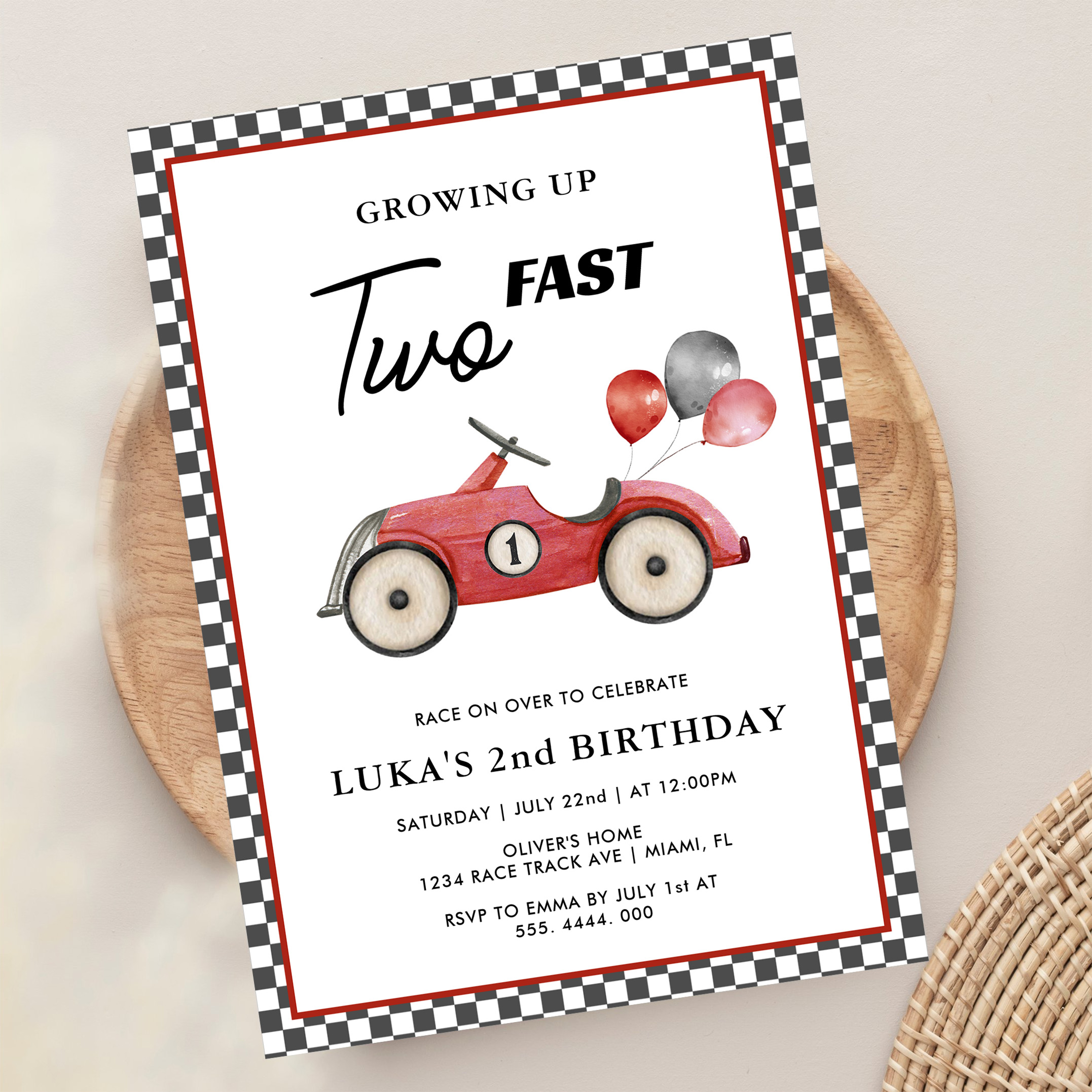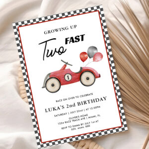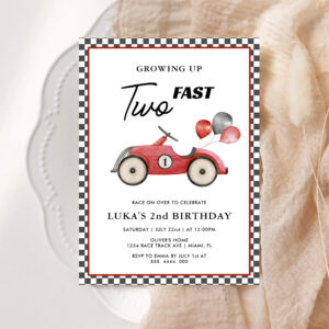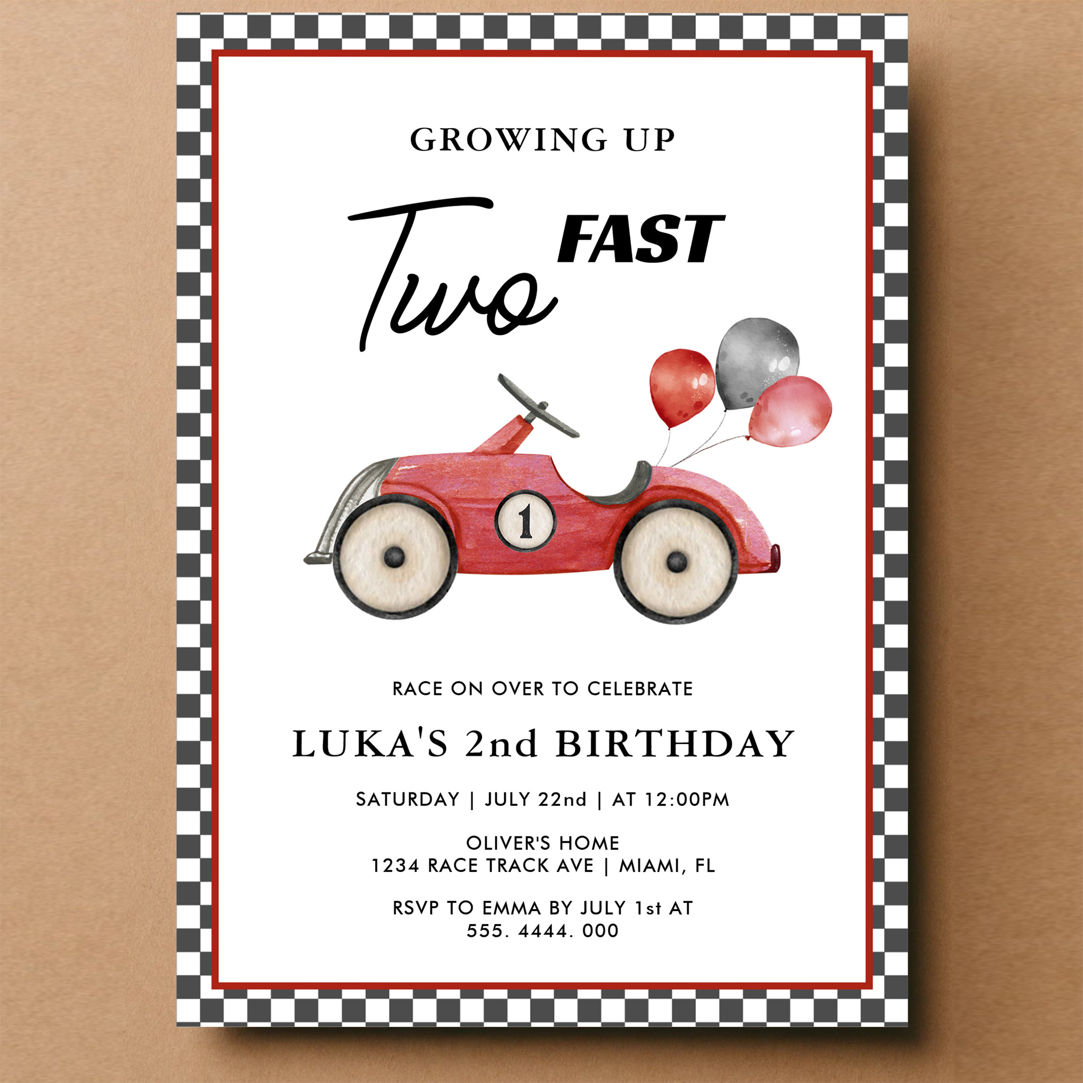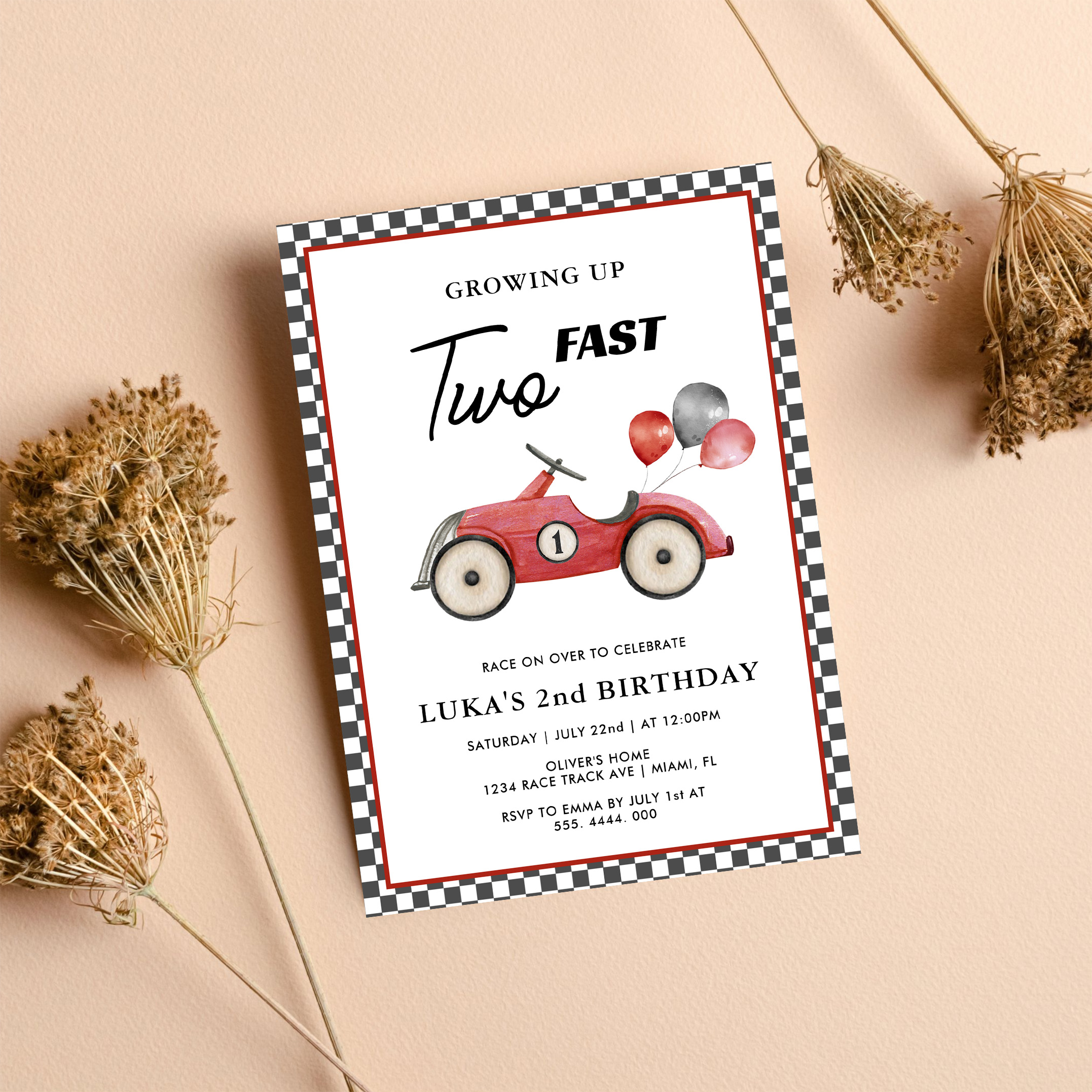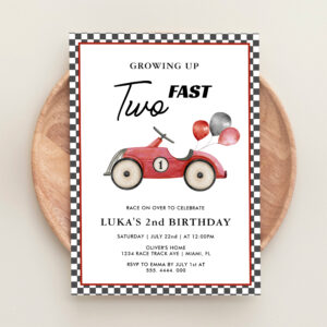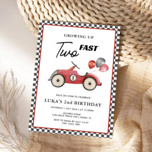 Two Fast Red Race Car Boys 2nd Birthday Invitation - Related products