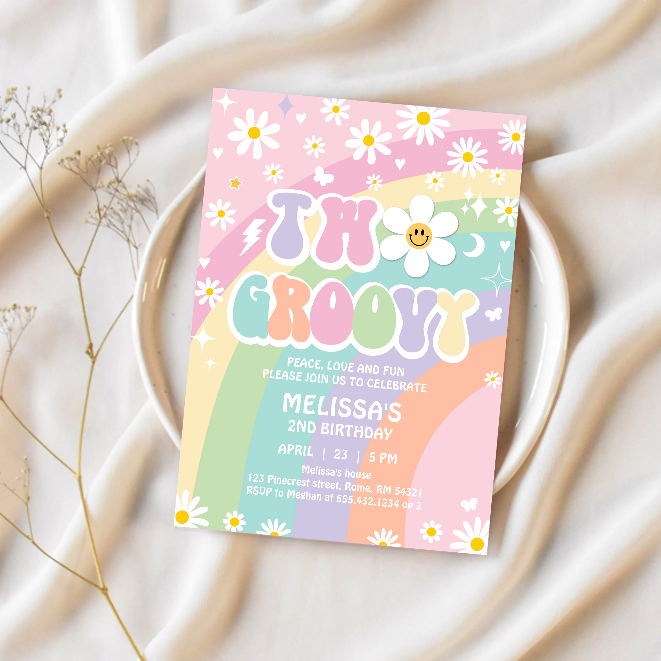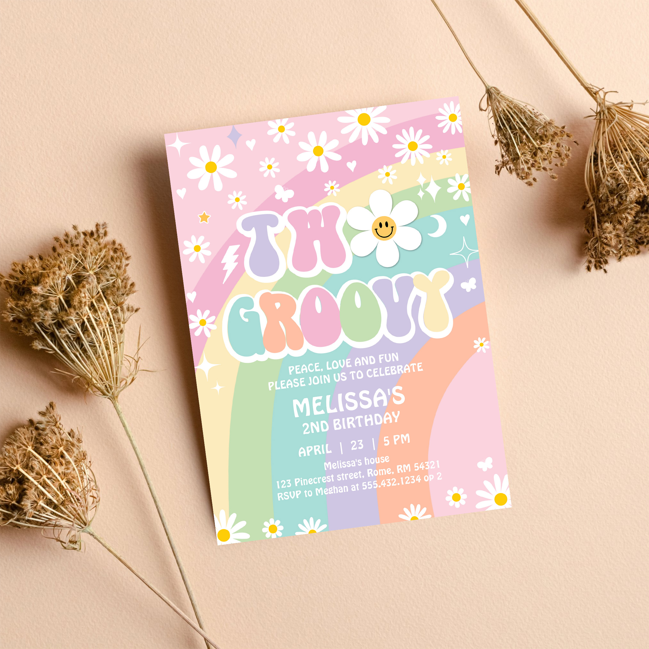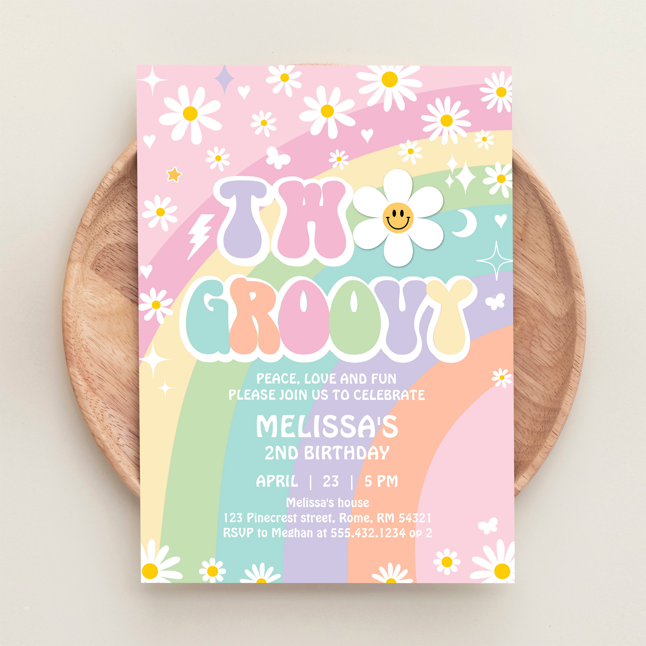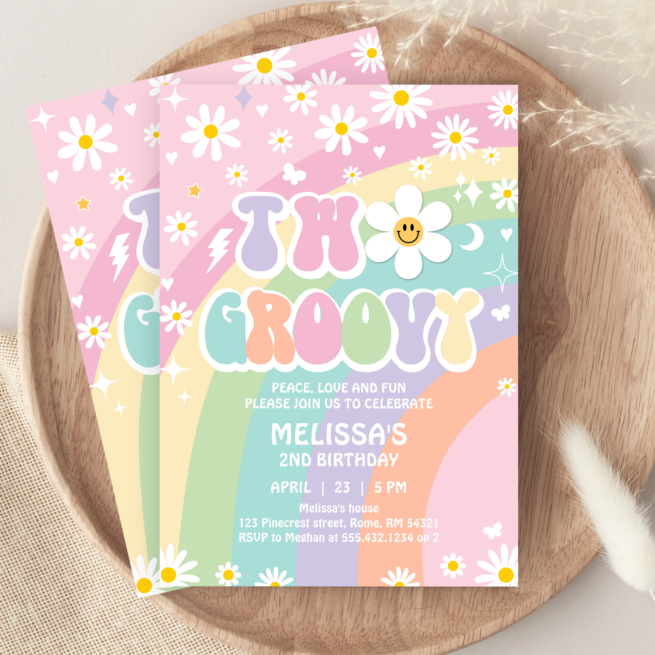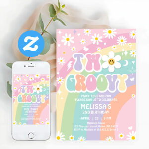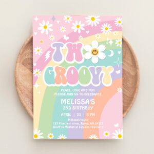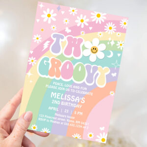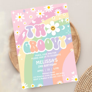 Two Groovy Daisy Rainbow Hippie 2nd Birthday Invitation - Related products