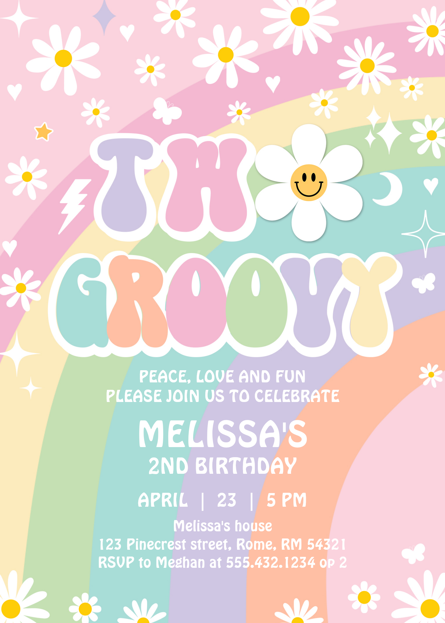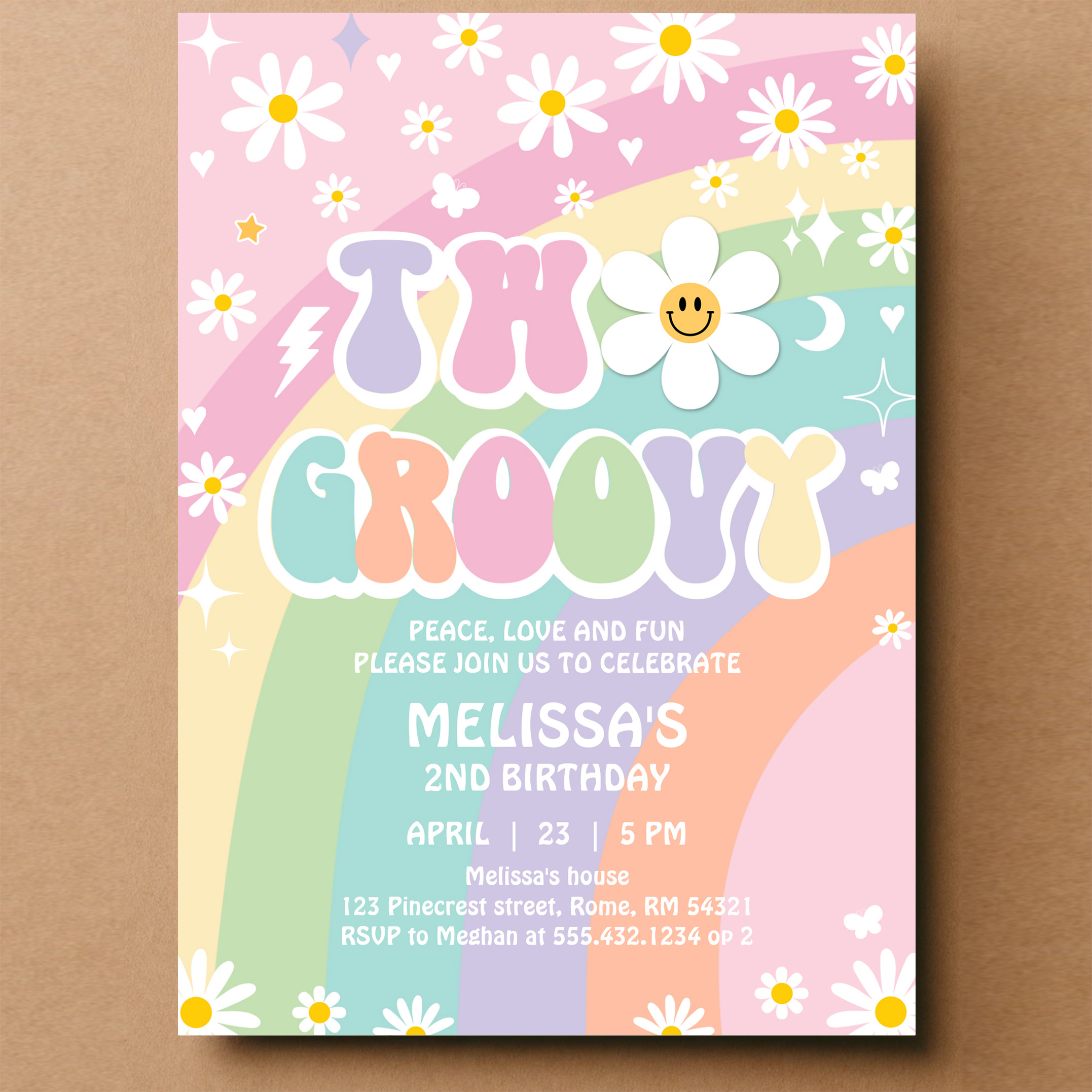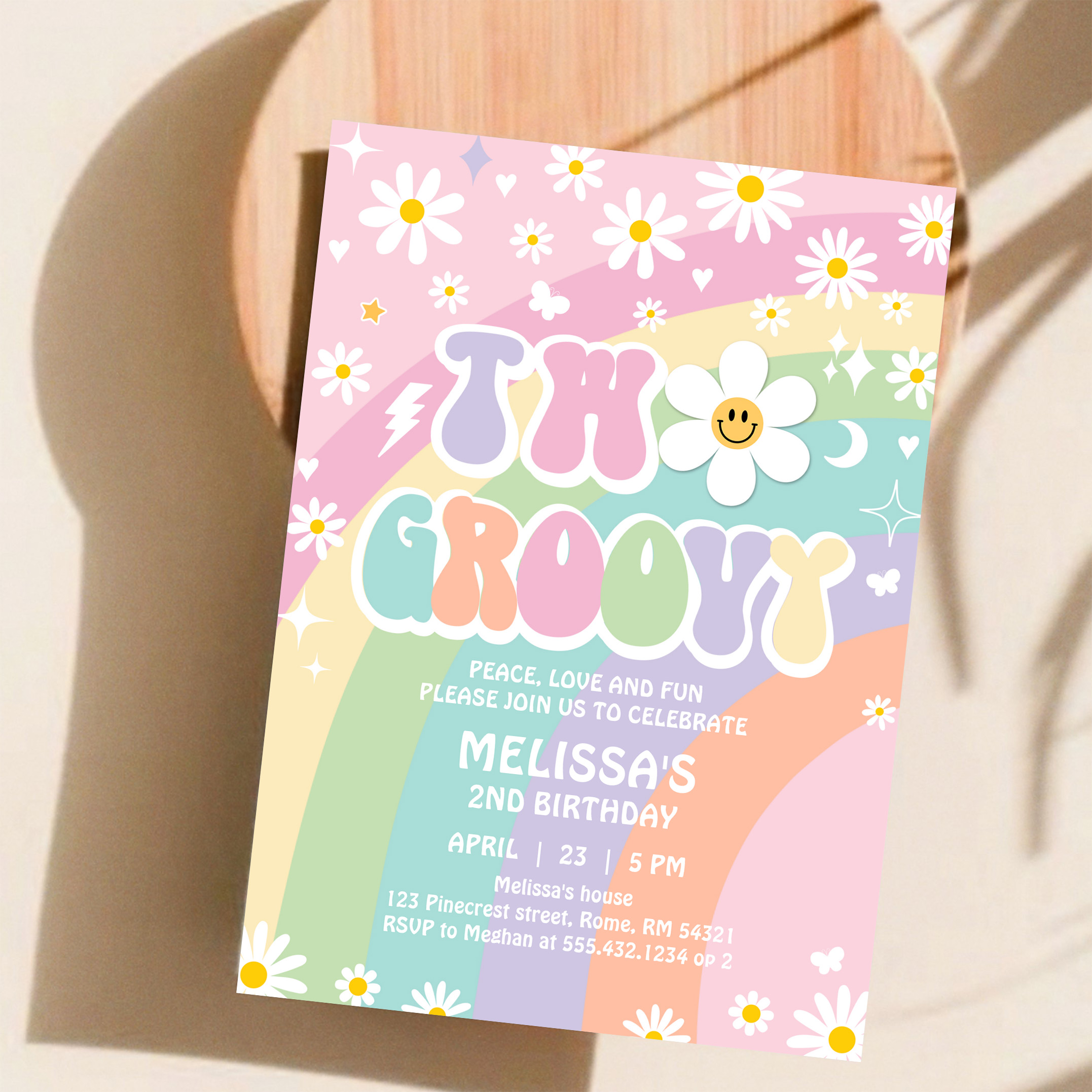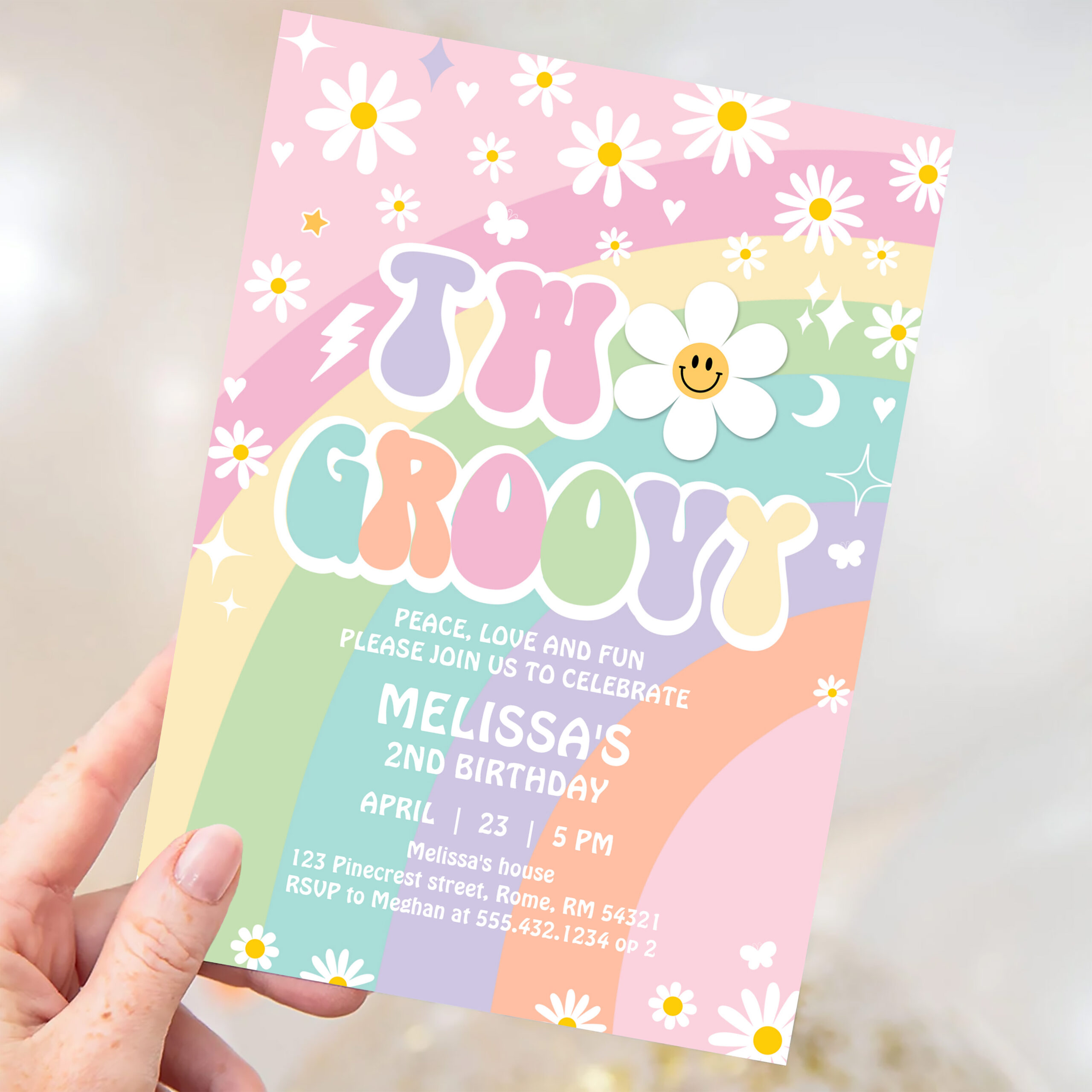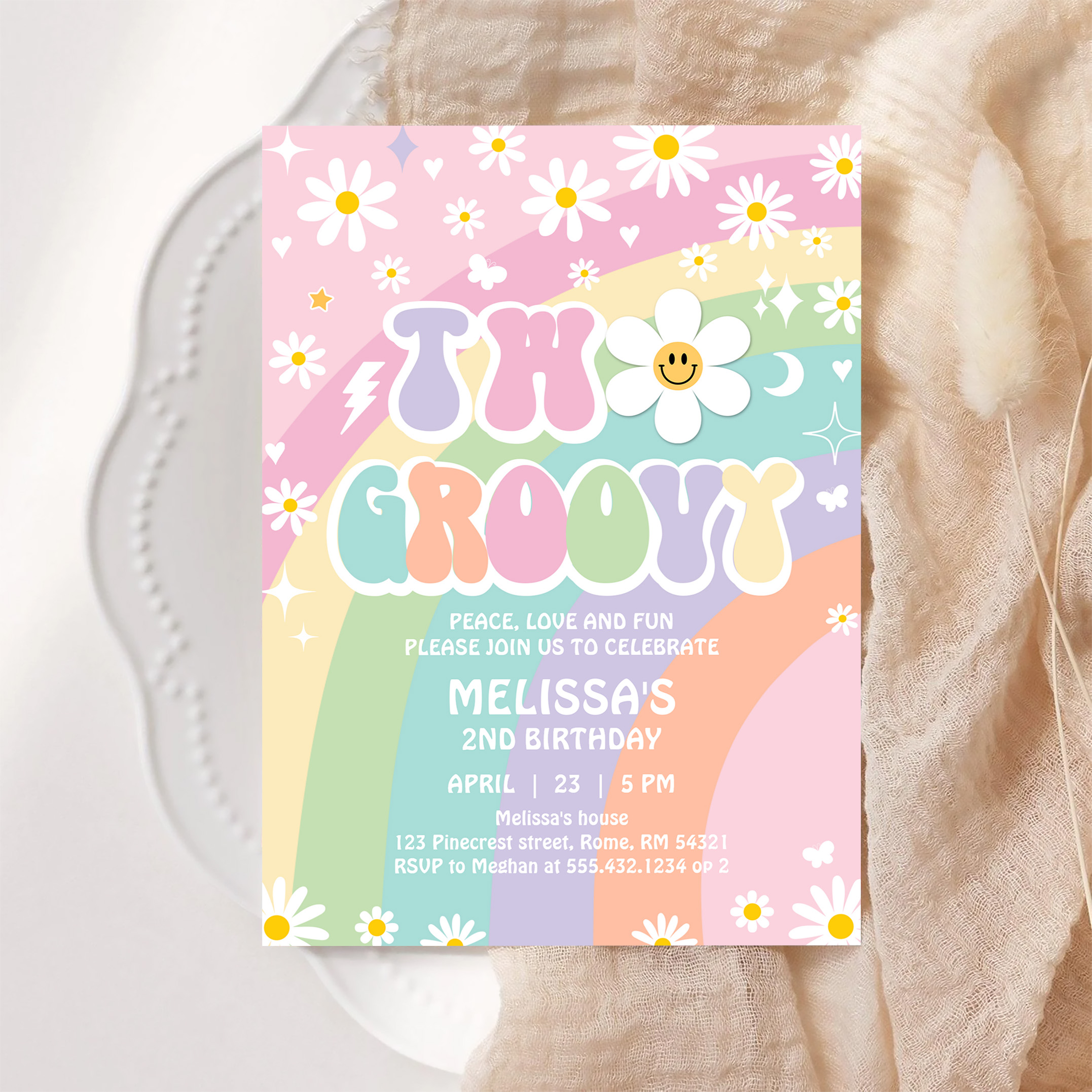 Two Groovy Daisy Rainbow Hippie 2nd Birthday Invitation - Related products