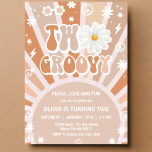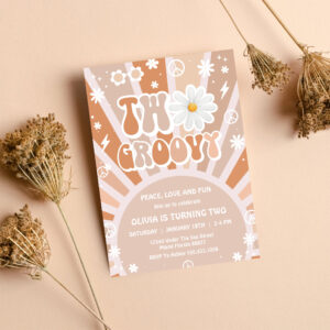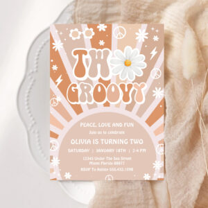 Two Groovy Hippie Pink Daisy Rainbow 2nd Birthday Invitation - Related products