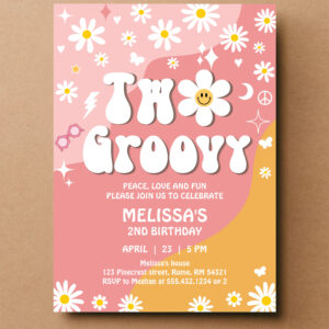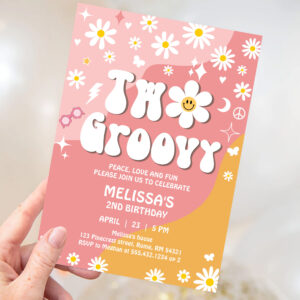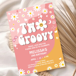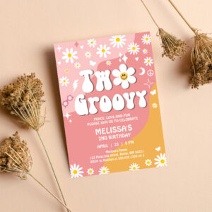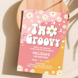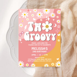 Two Groovy Pink Yellow Daisy Groovy 2nd Birthday Invitation - Related products