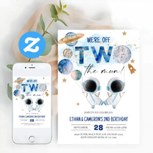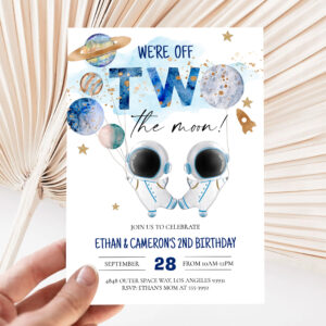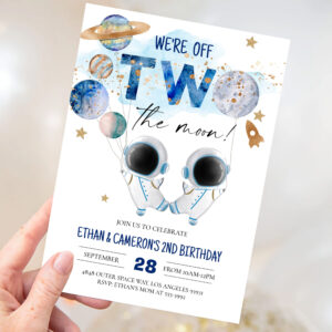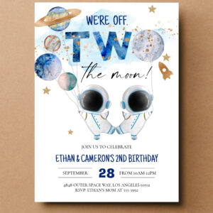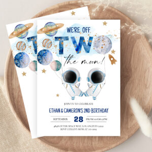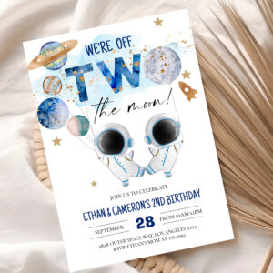 Two The Moon Astronaut Girl 2nd Boy Birthday Invitation - Related products