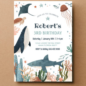 Under The Sea Whale Turtle Shark 1st Birthday Invitation