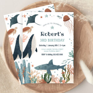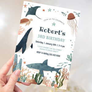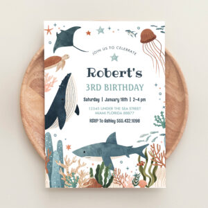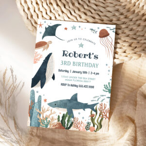 Under The Sea Whale Turtle Shark 1st Birthday Invitation - Related products