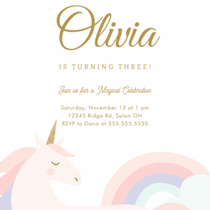 Unicorn And Rainbow Pastel Unicorn Birthday Invitation