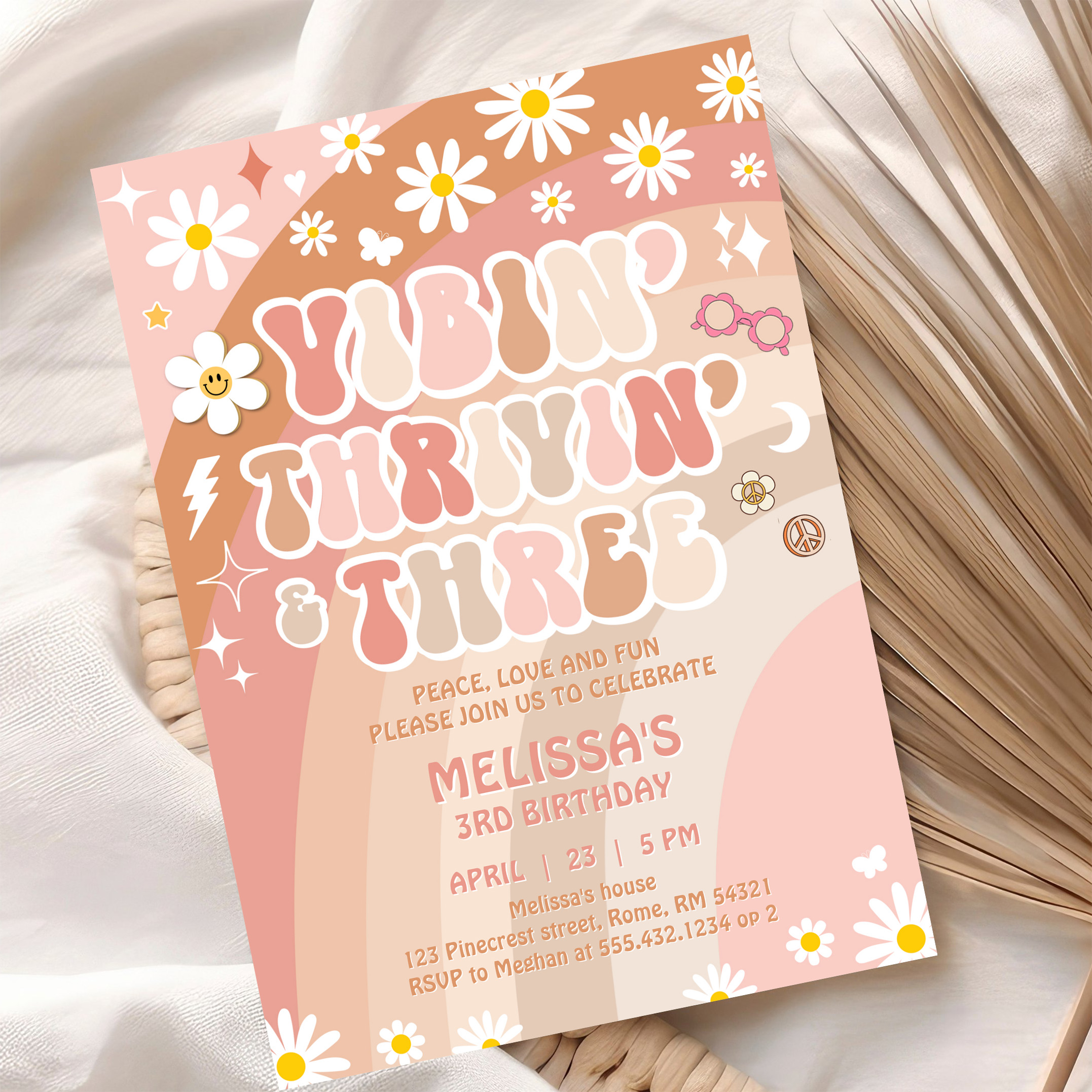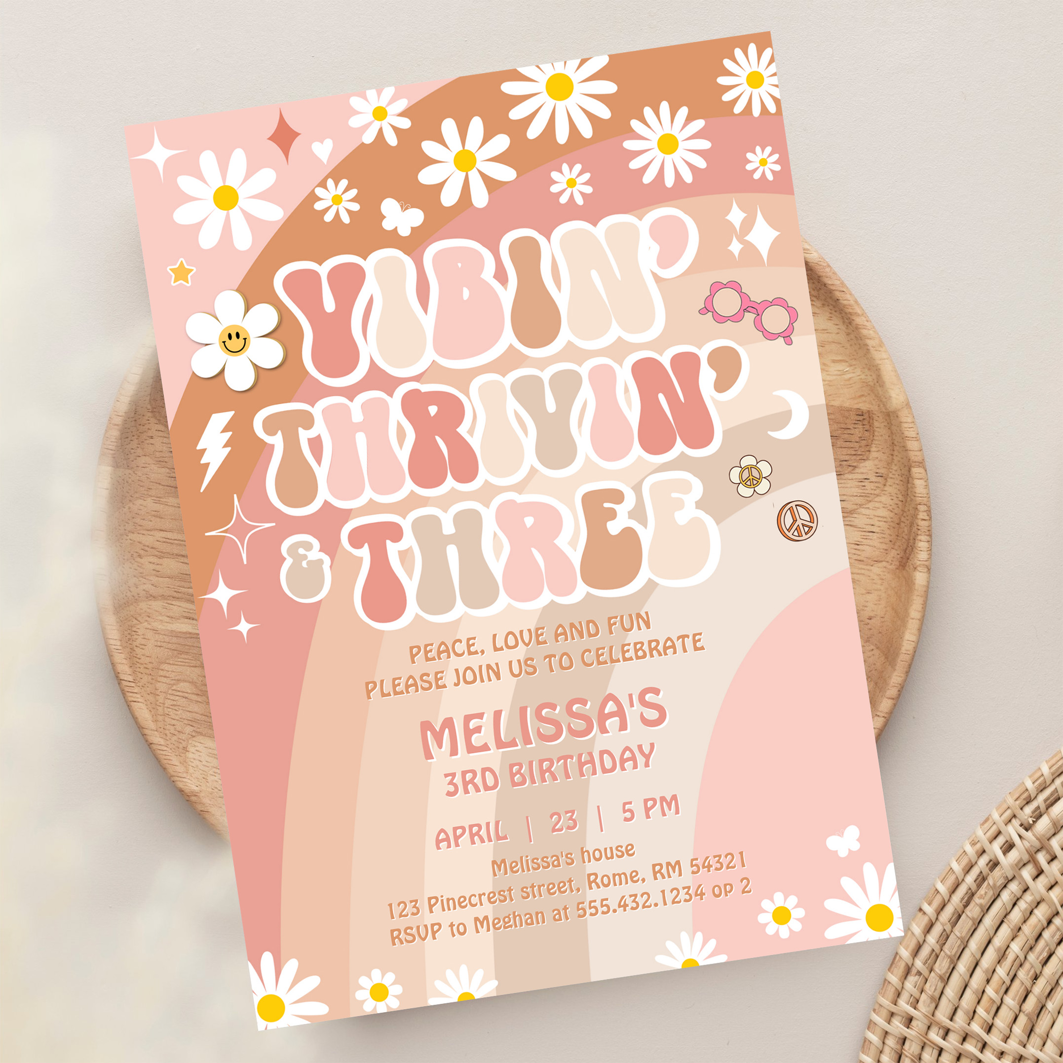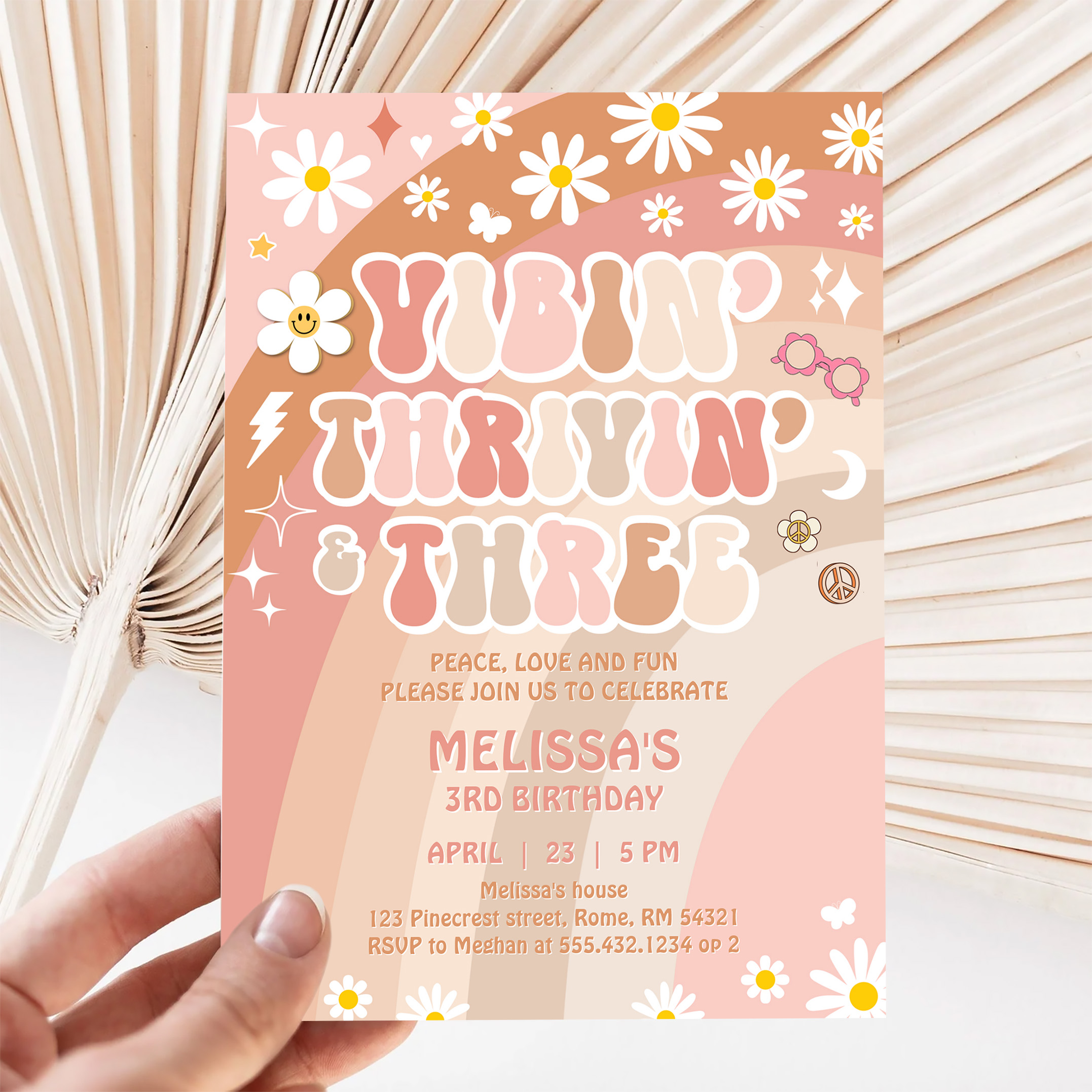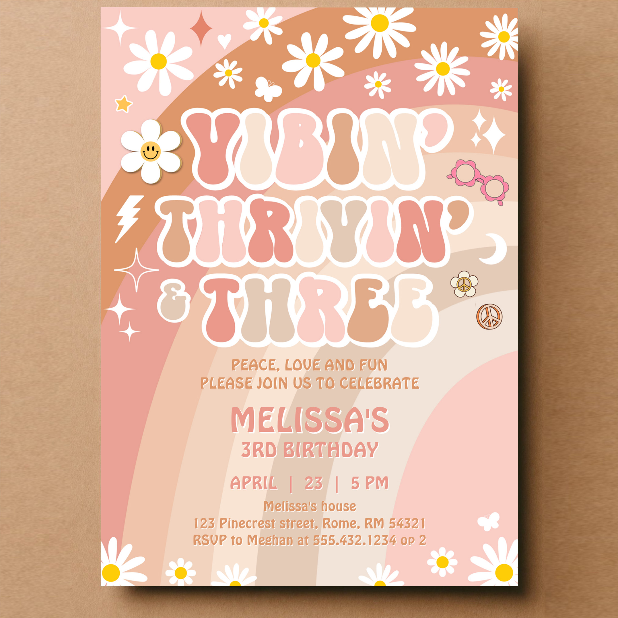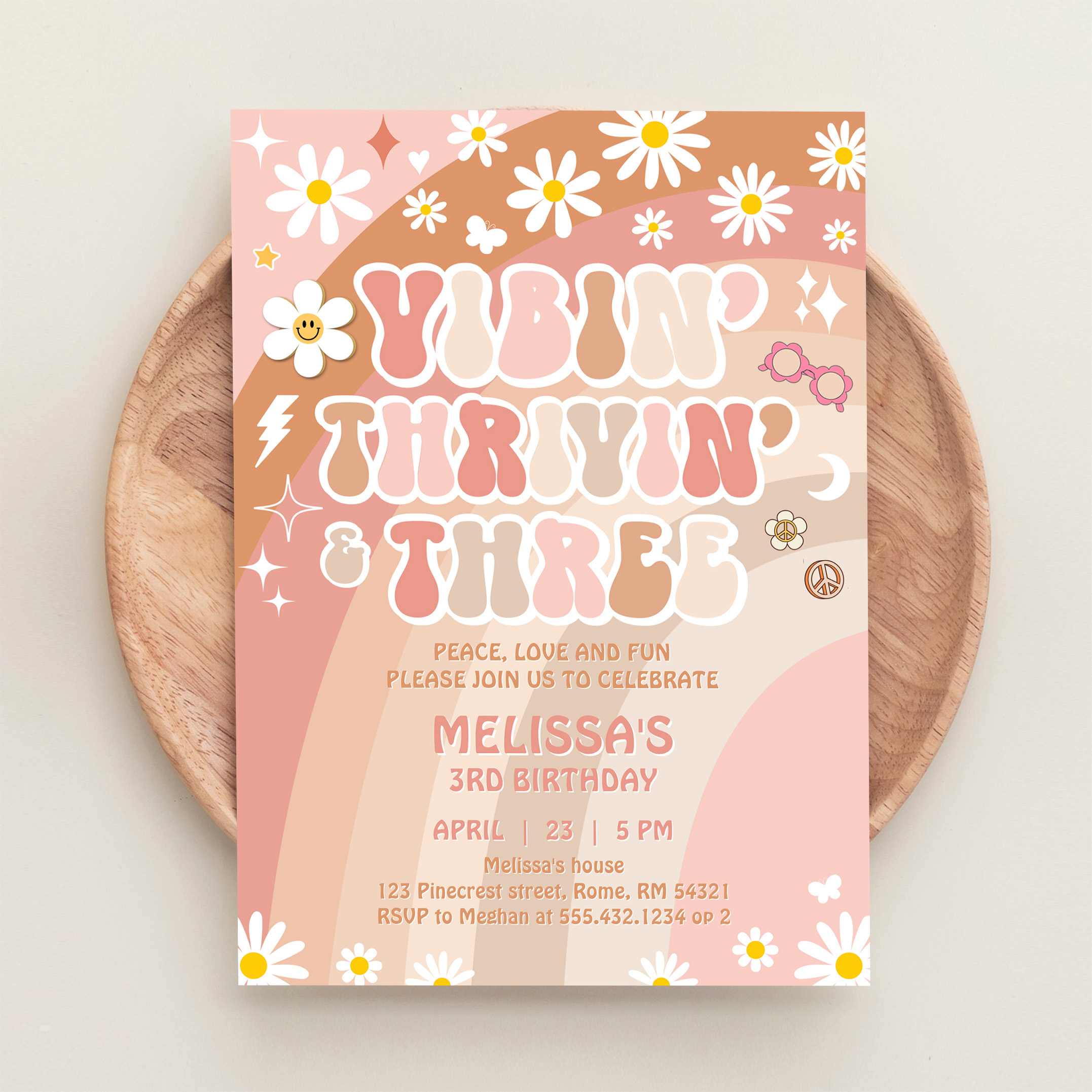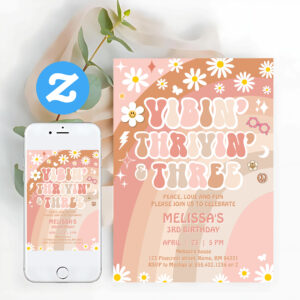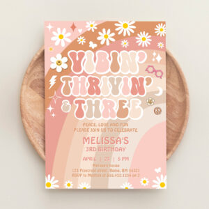 Vibin Thrivin And Three Groovy 3rd Birthday Invitation