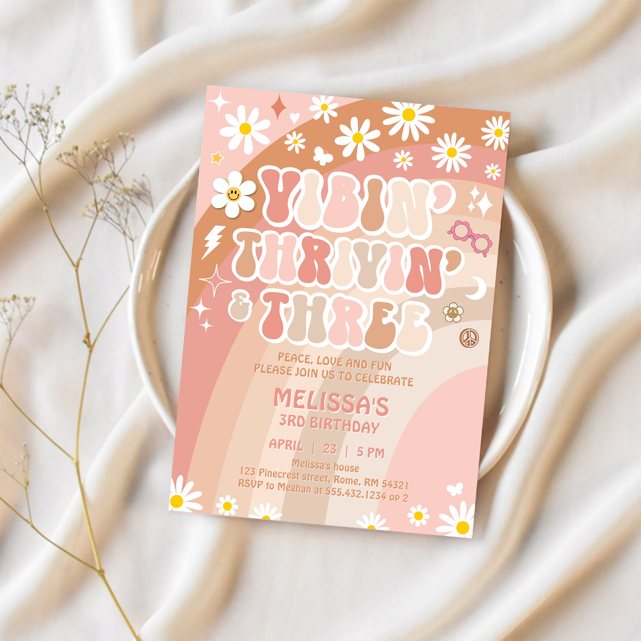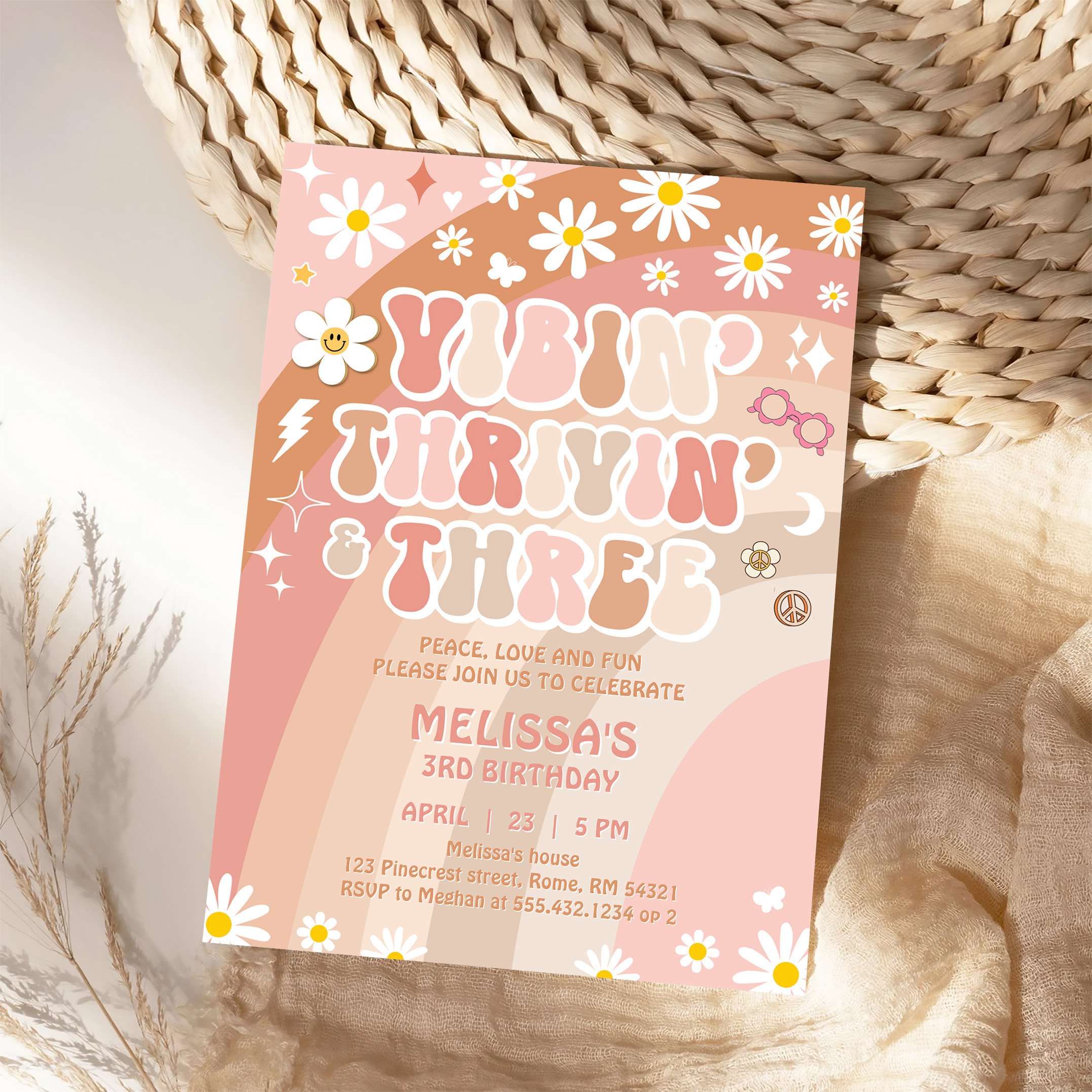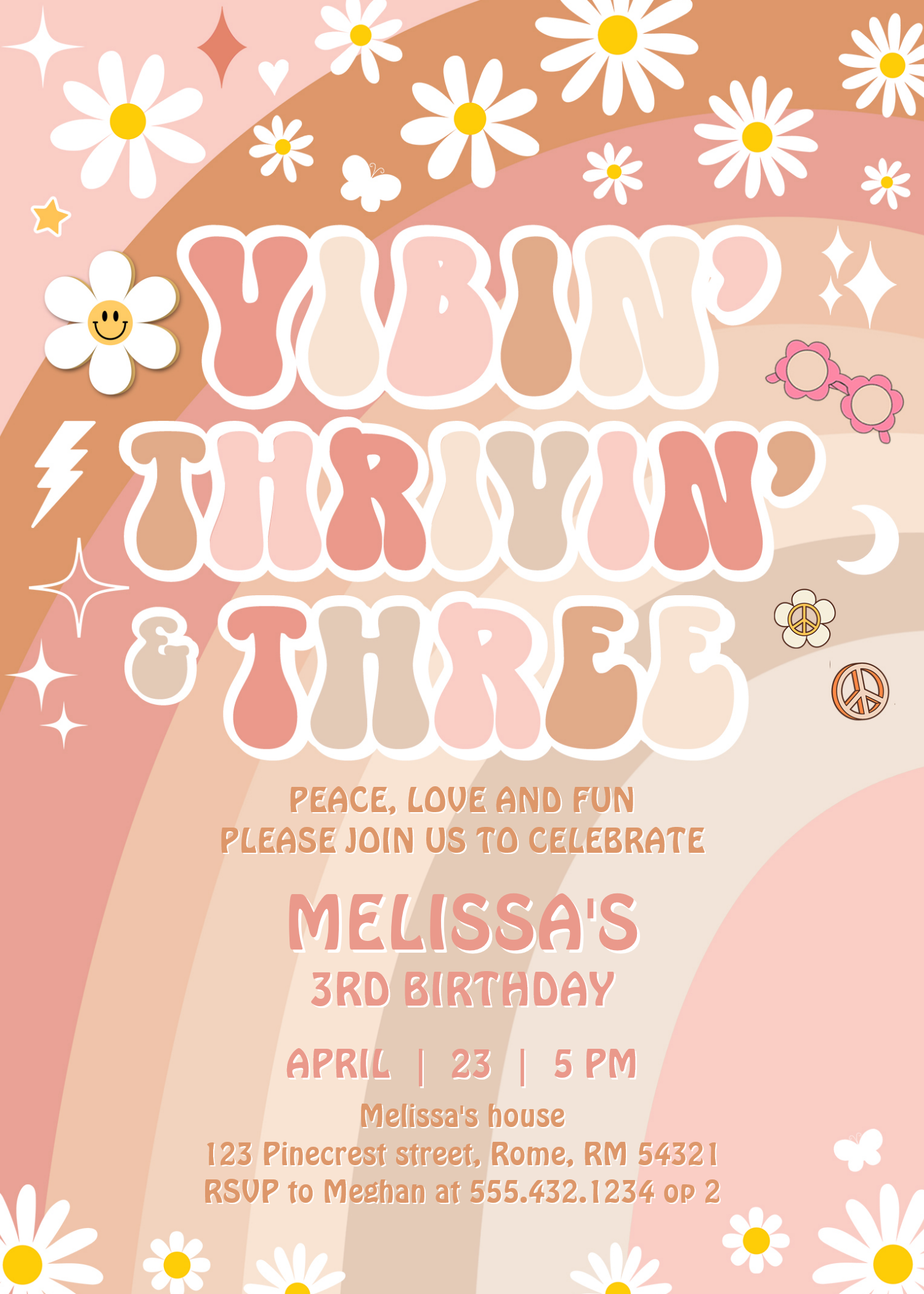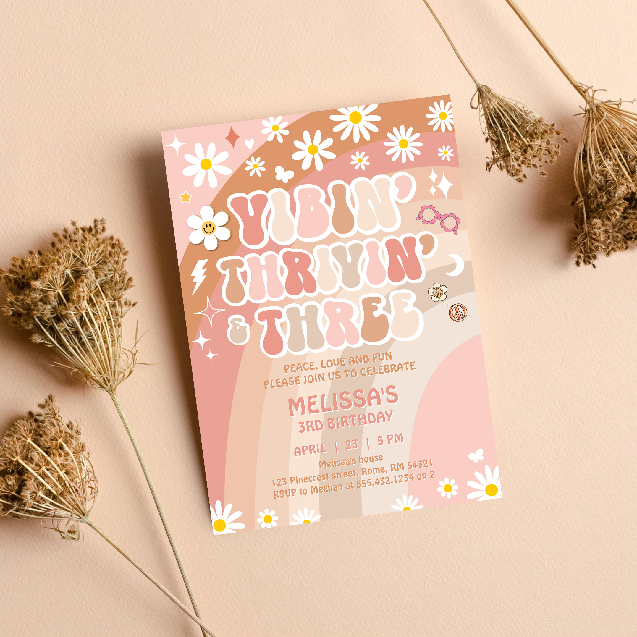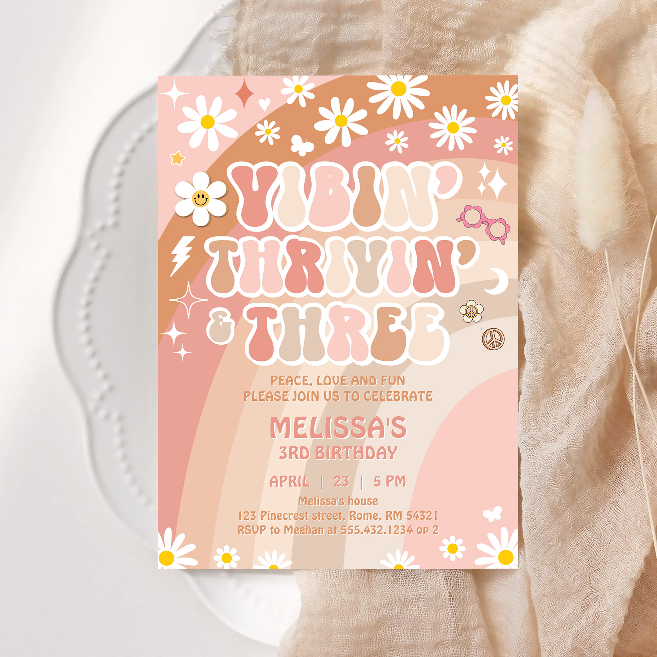 Vibin Thrivin And Three Groovy 3rd Birthday Invitation