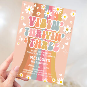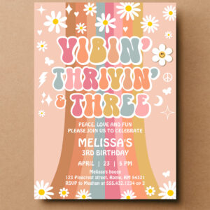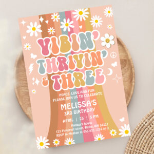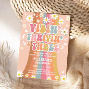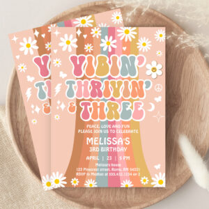 Vibin Thrivin And Three Retro Hippie 3rd Birthday Invitation - Related products