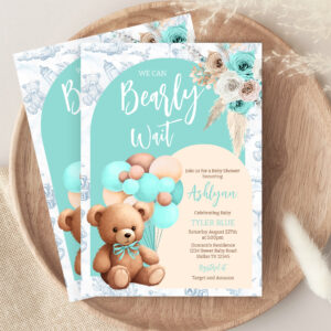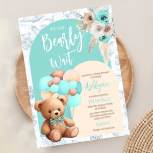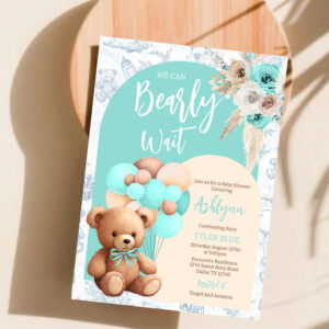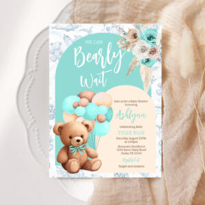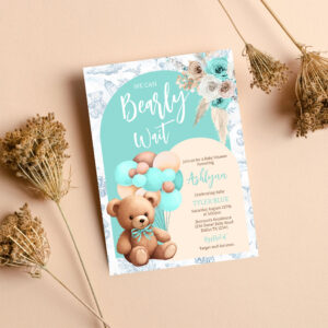 We Can Bearly Wait Blue Bear Balloon Baby Shower Invitation - Related products