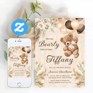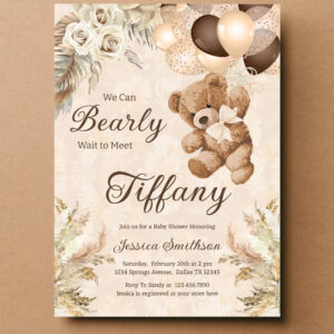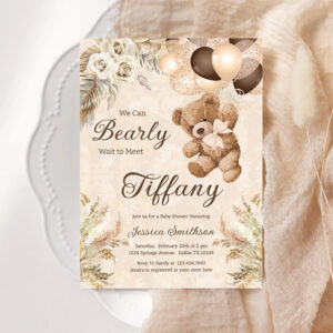 We Can Bearly Wait Boho Teddy Bear Baby Shower Invitation