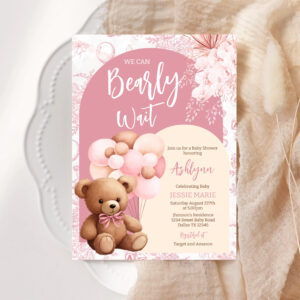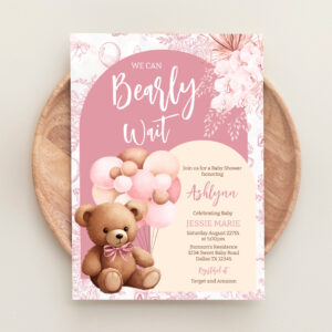 We Can Bearly Wait Brown Bear Balloon Baby Shower Invitation - Related products
