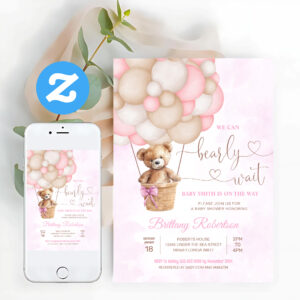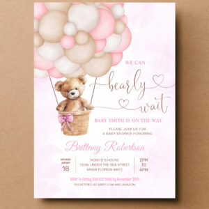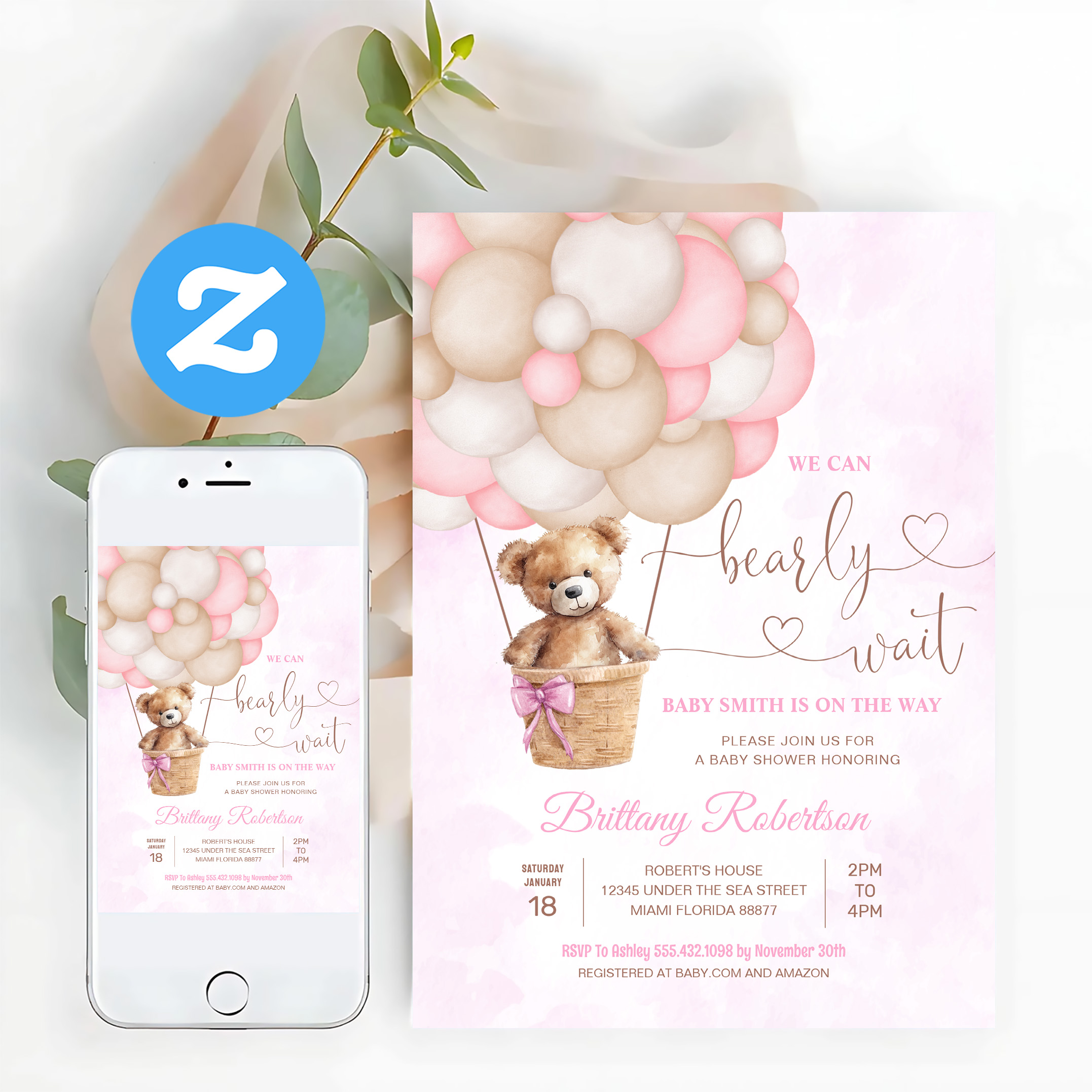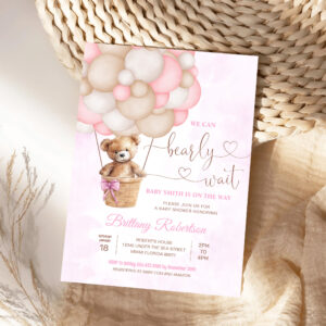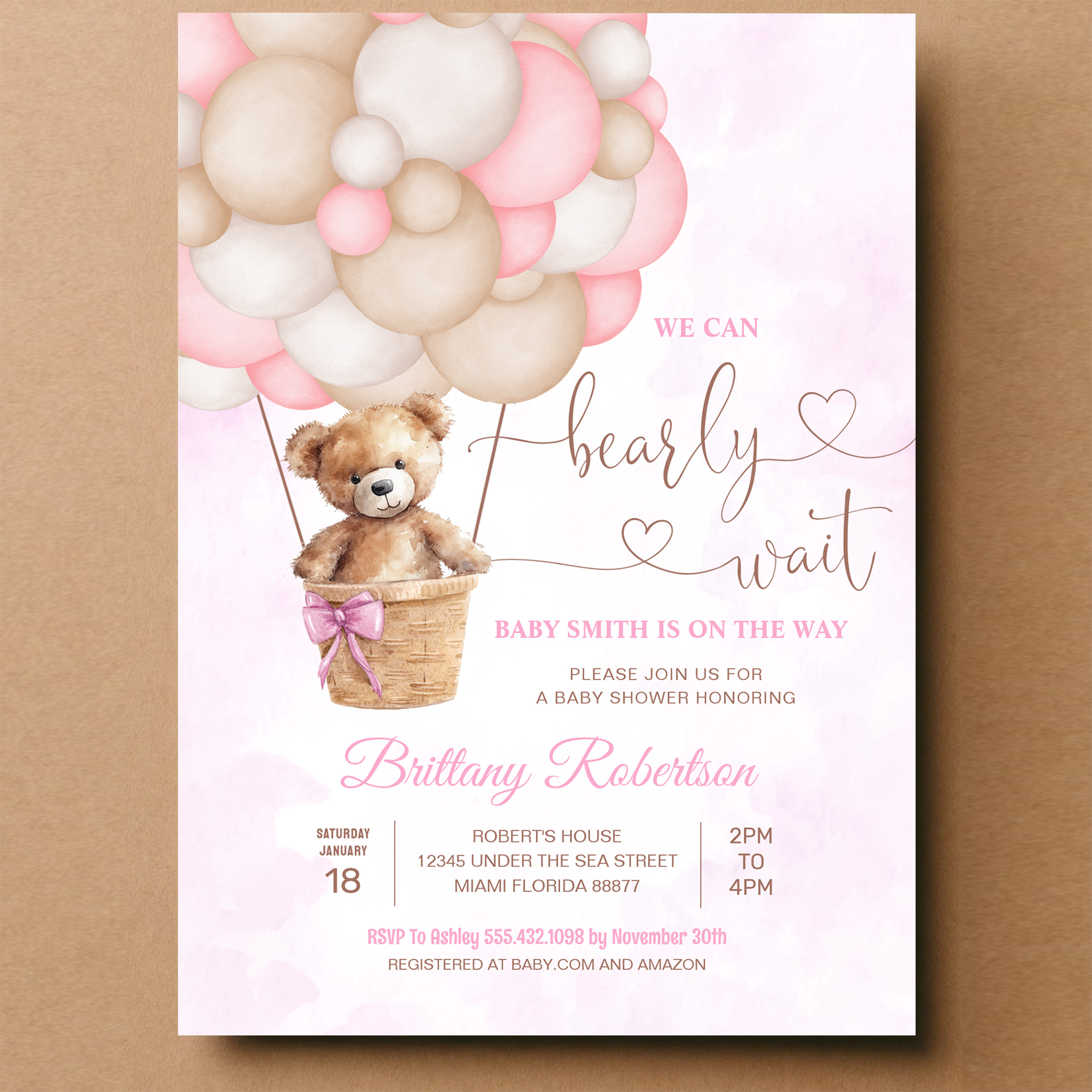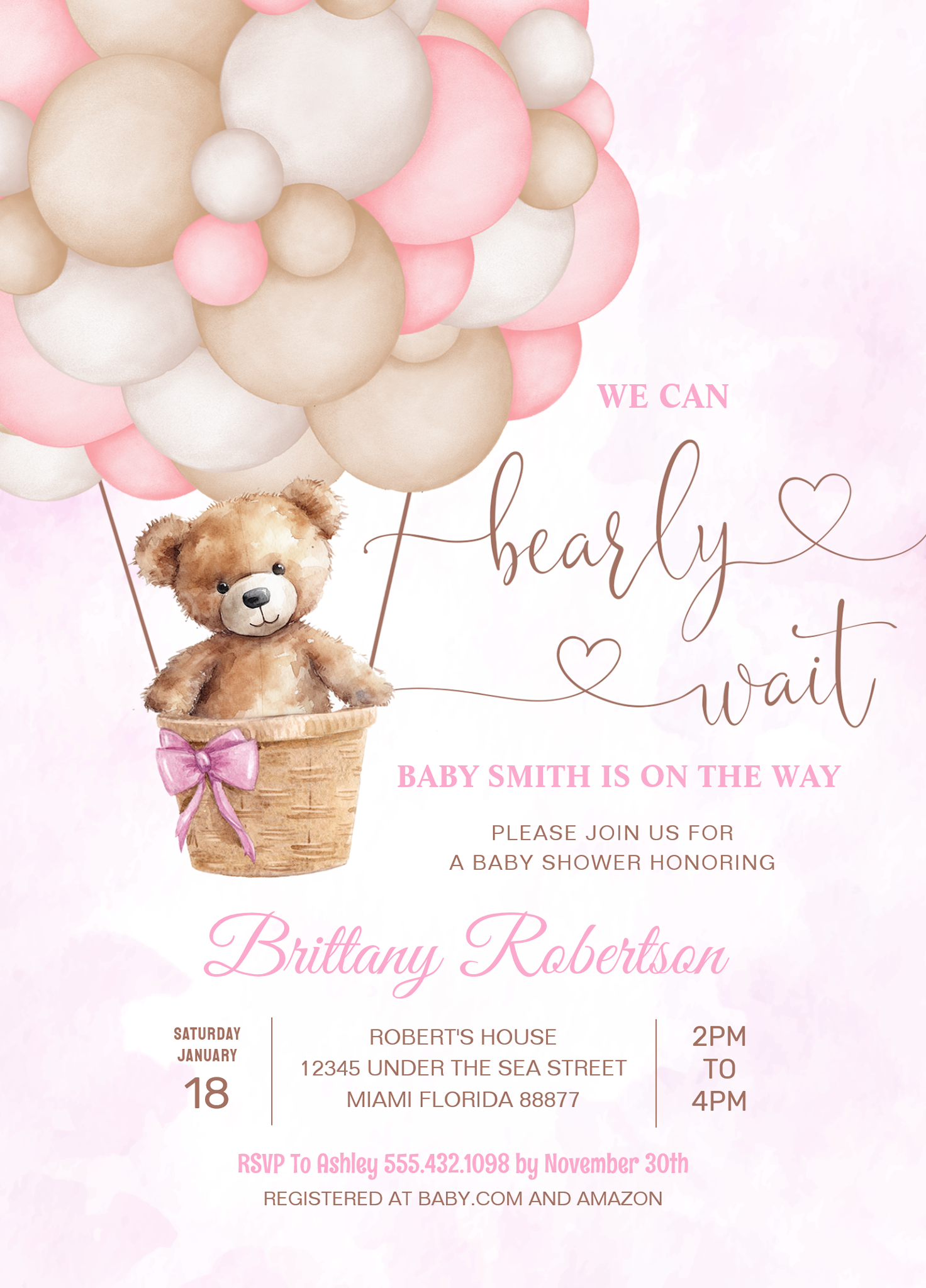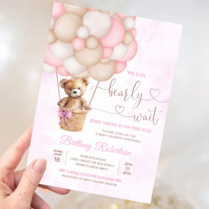 We Can Bearly Wait Girl Teddy Bear Baby Shower Invitation