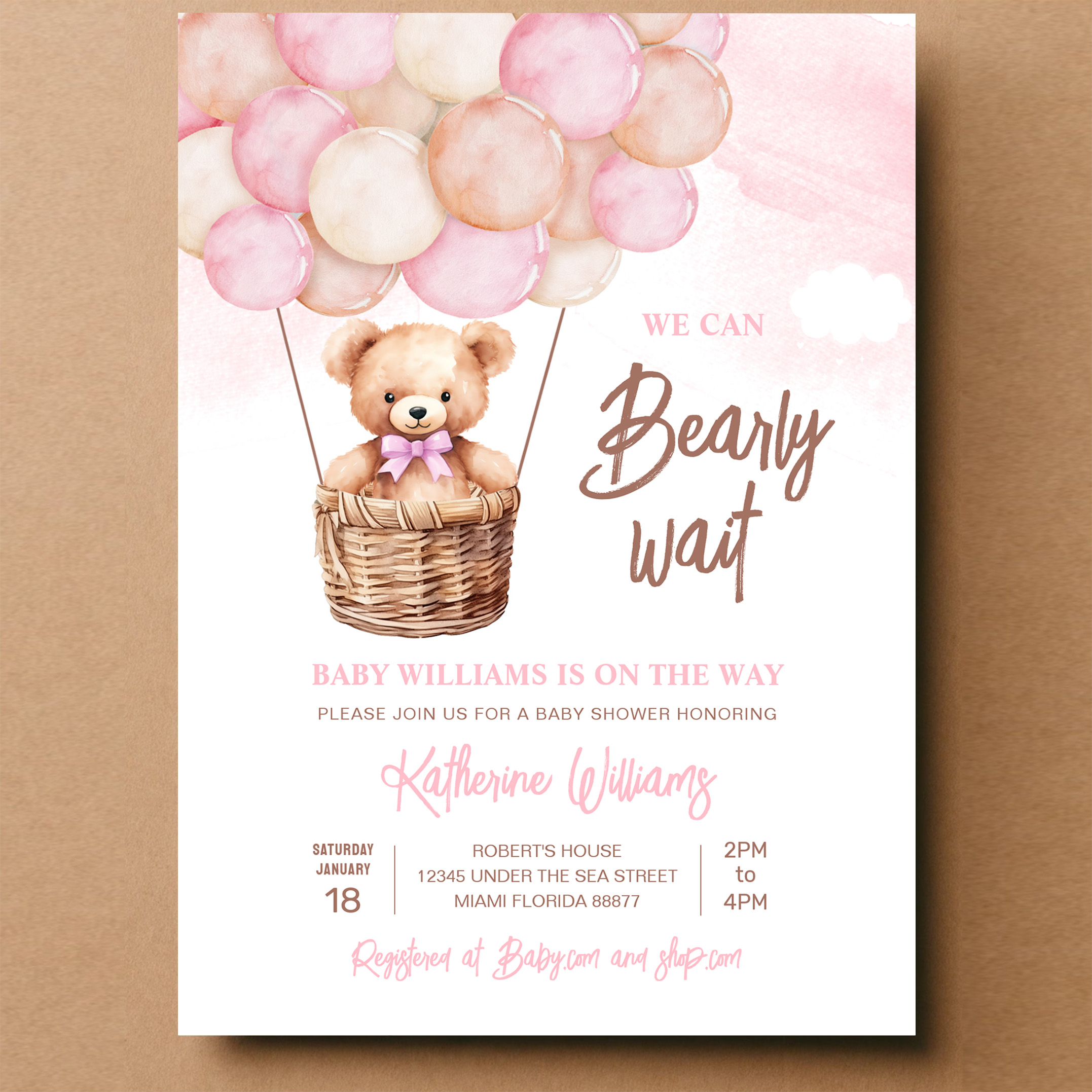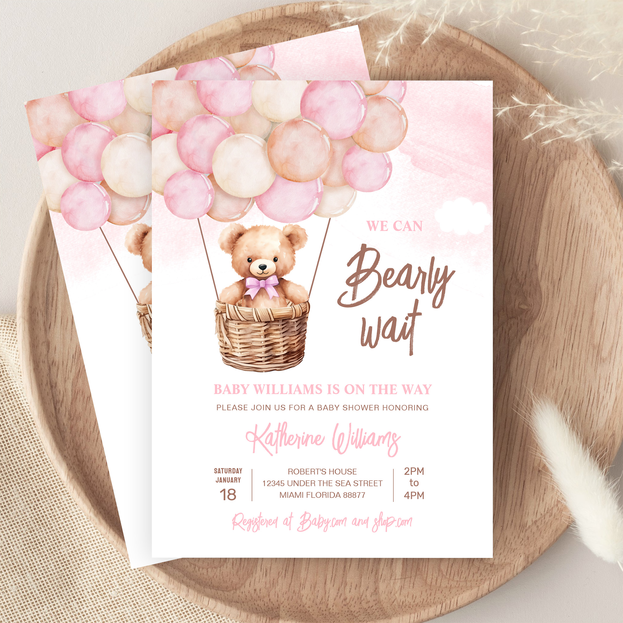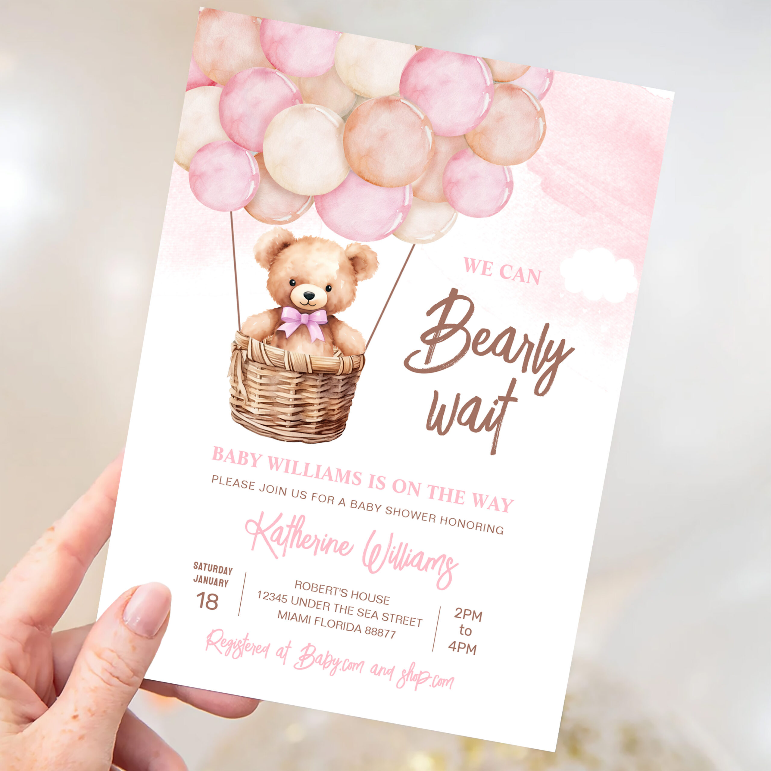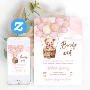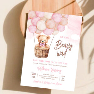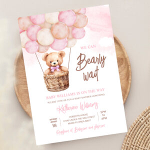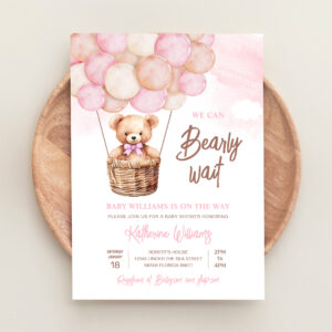 We Can Bearly Wait Teddy Bear Baby Shower Invitation