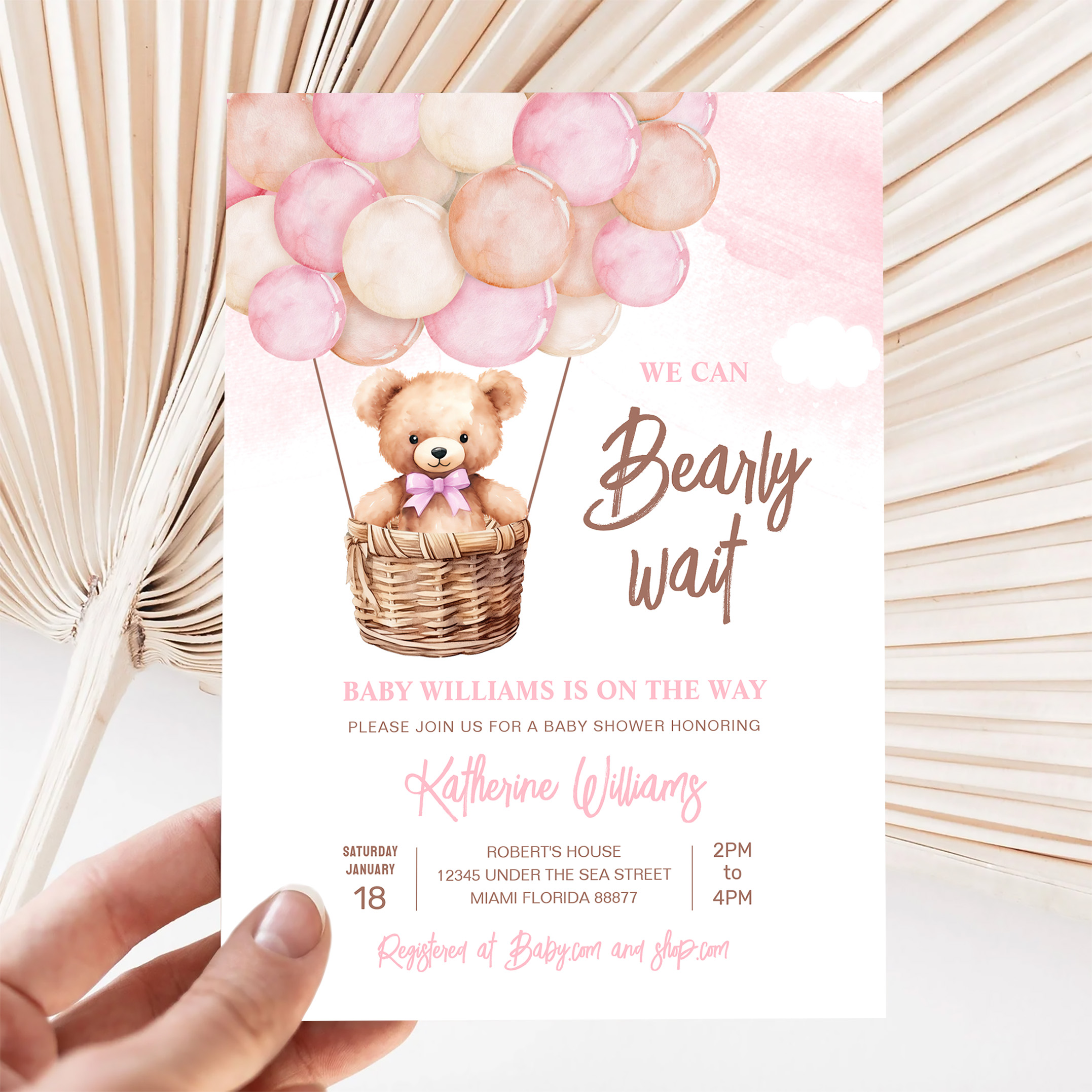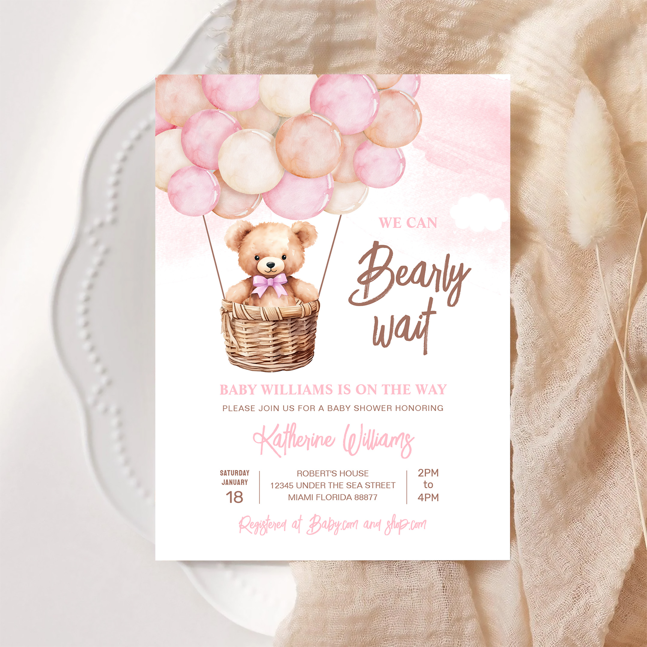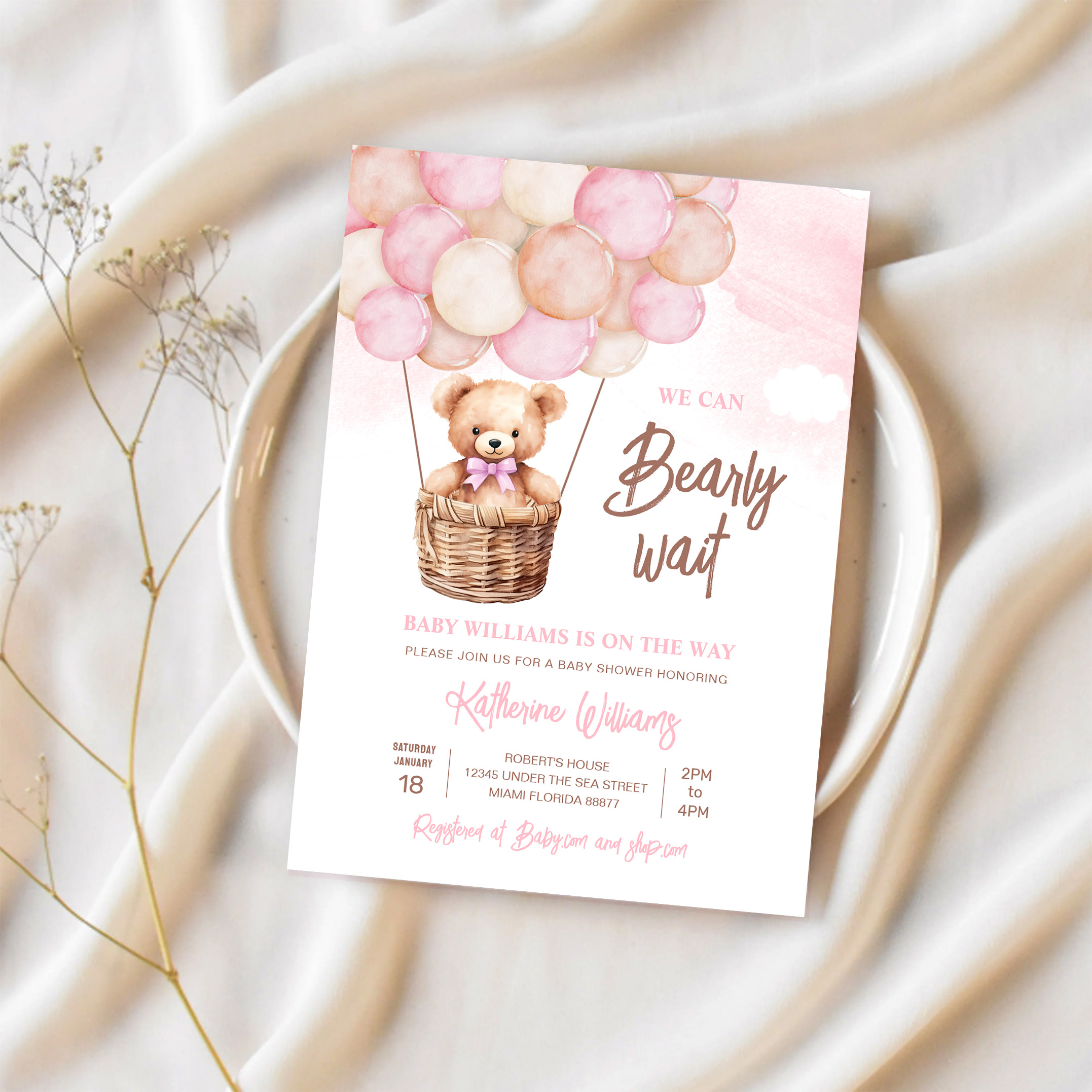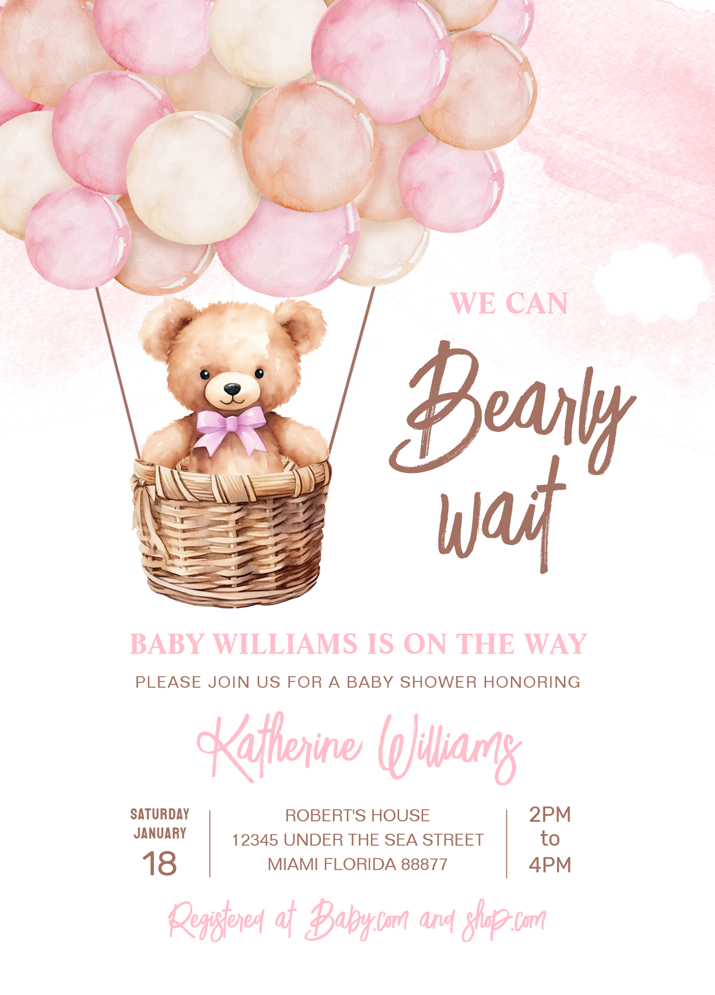 We Can Bearly Wait Teddy Bear Baby Shower Invitation