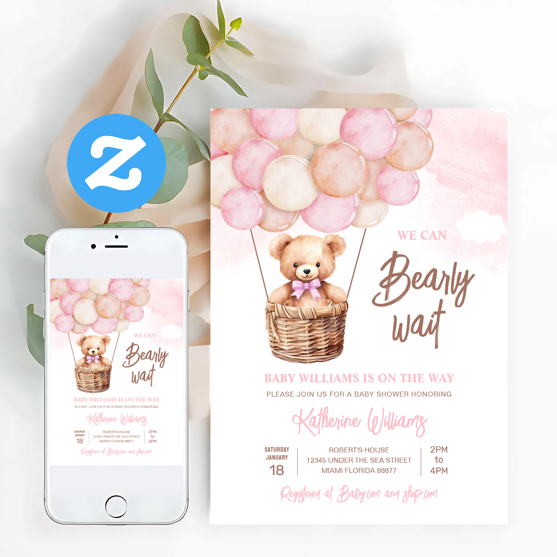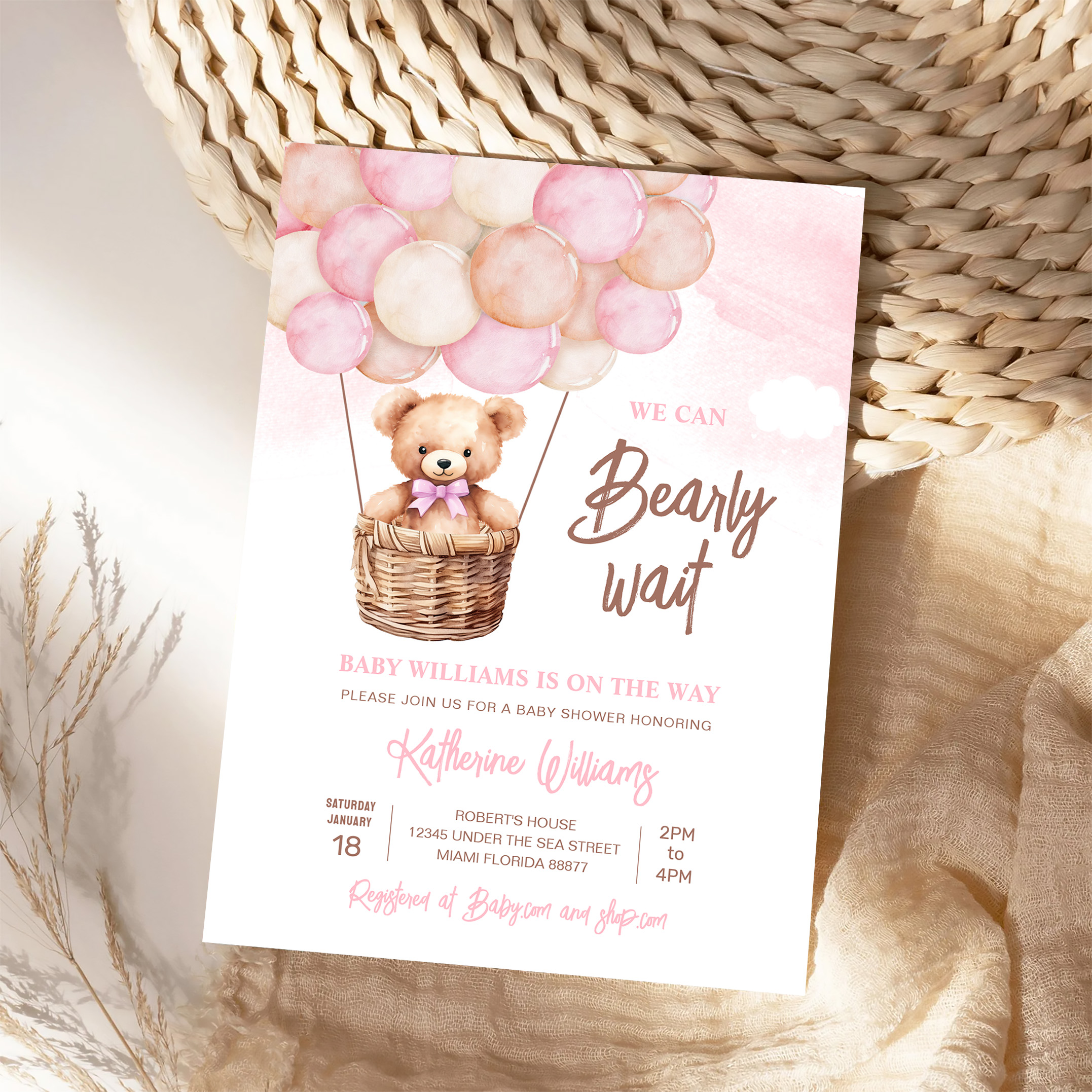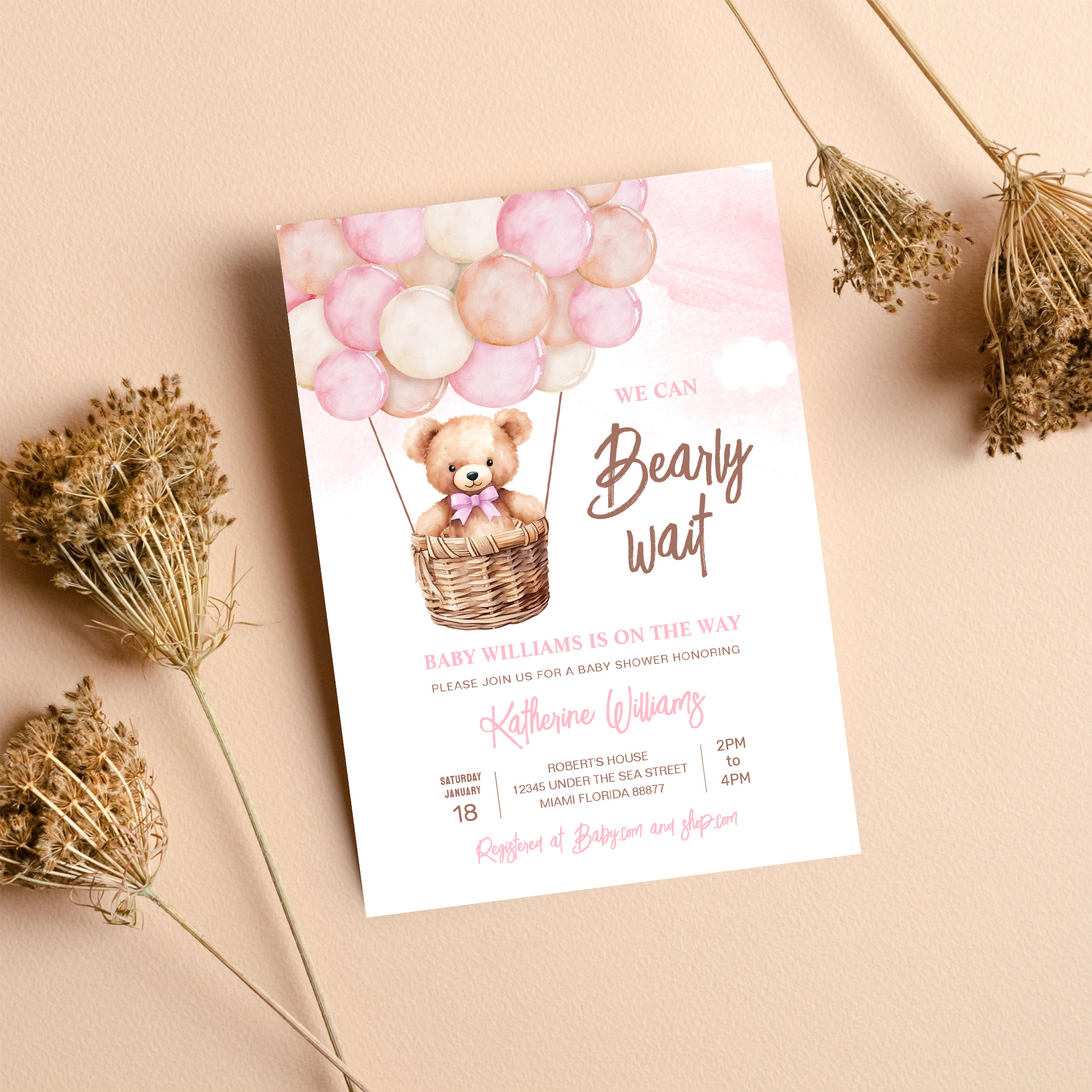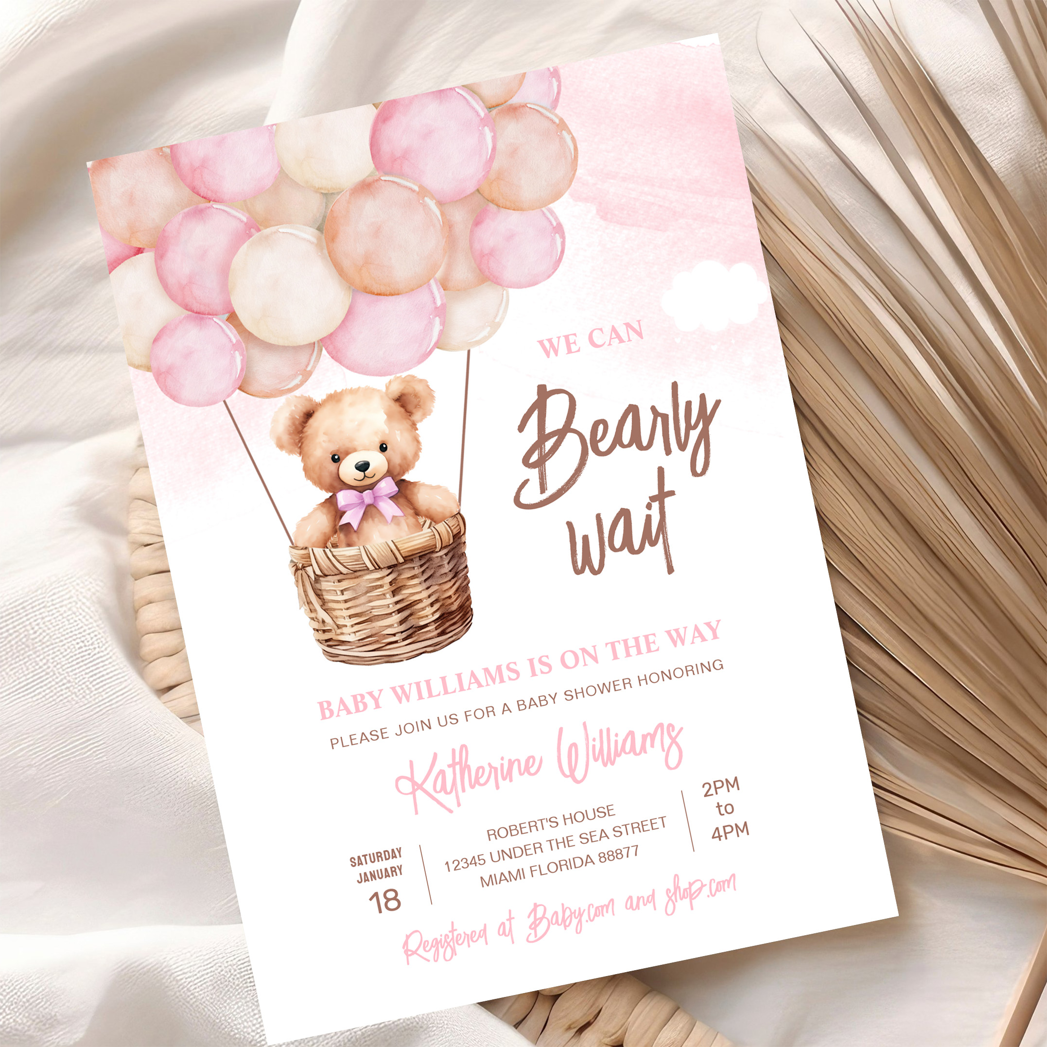 We Can Bearly Wait Teddy Bear Baby Shower Invitation