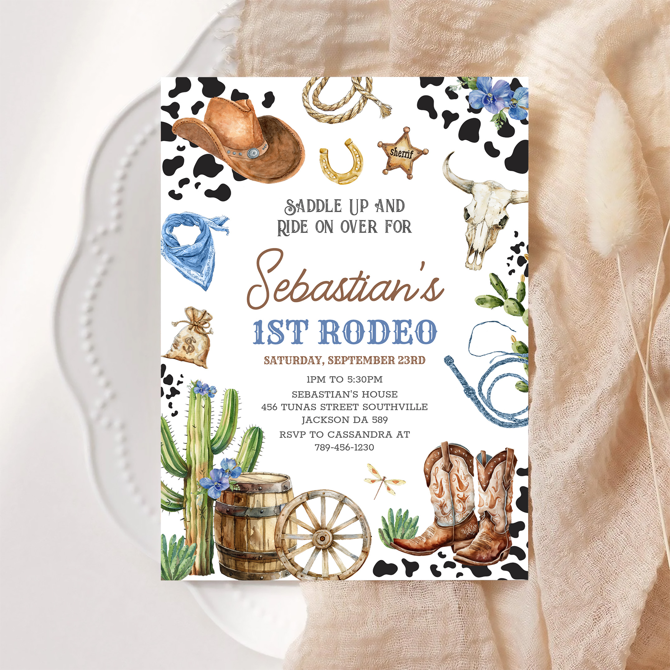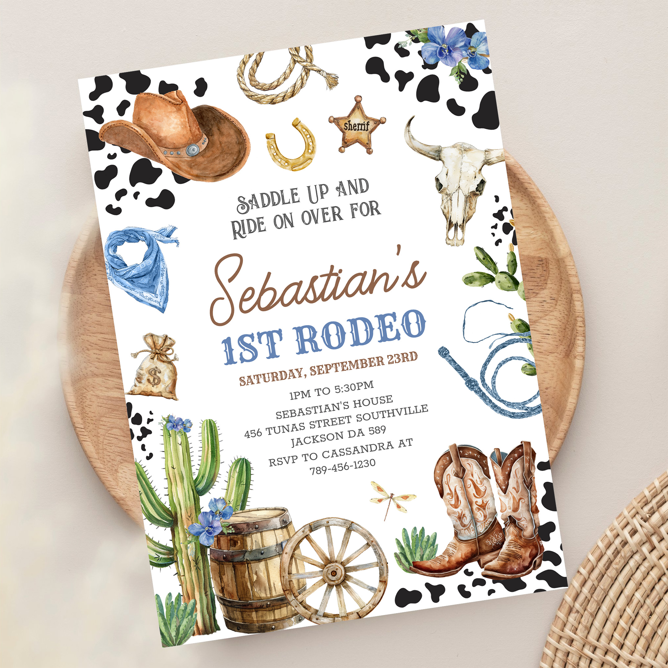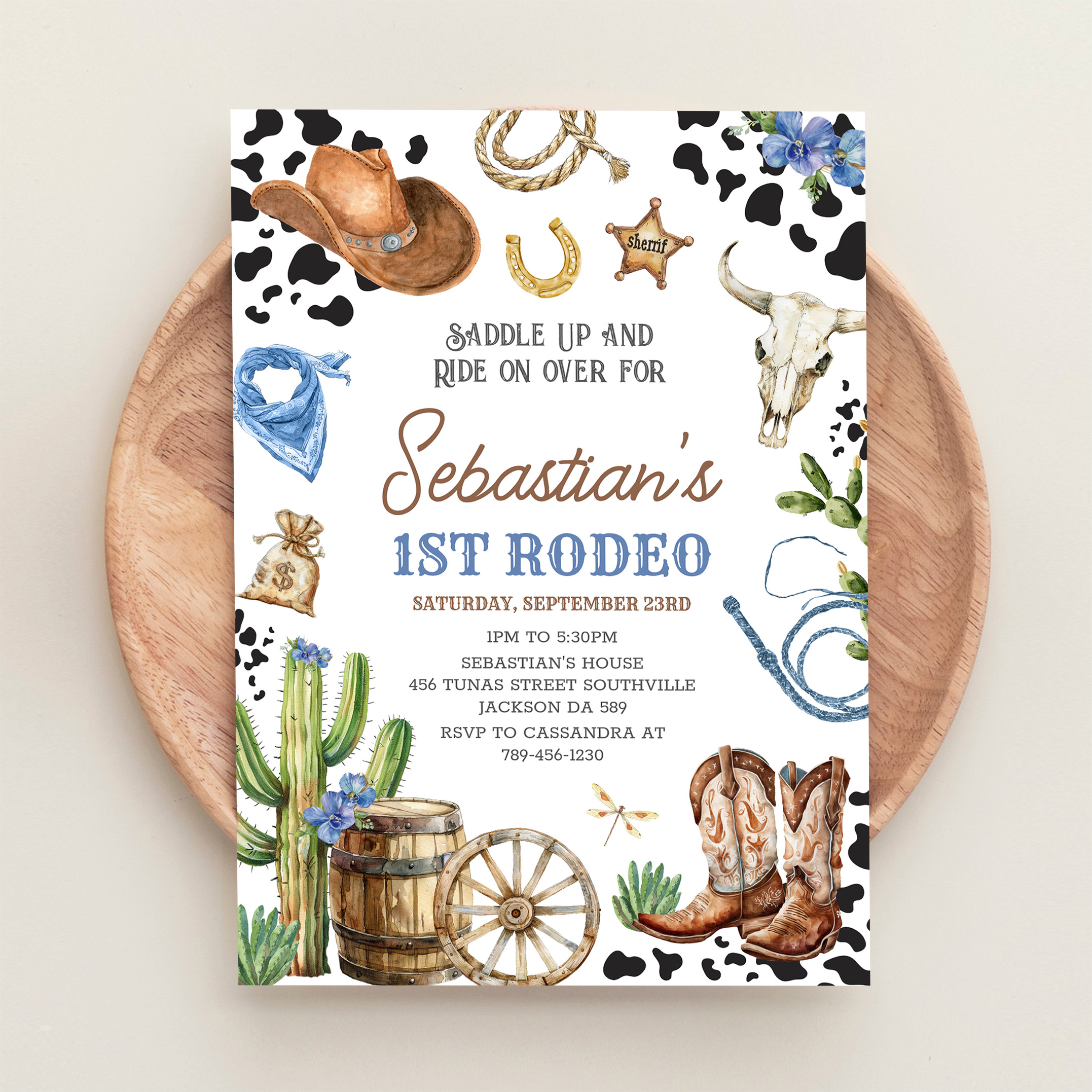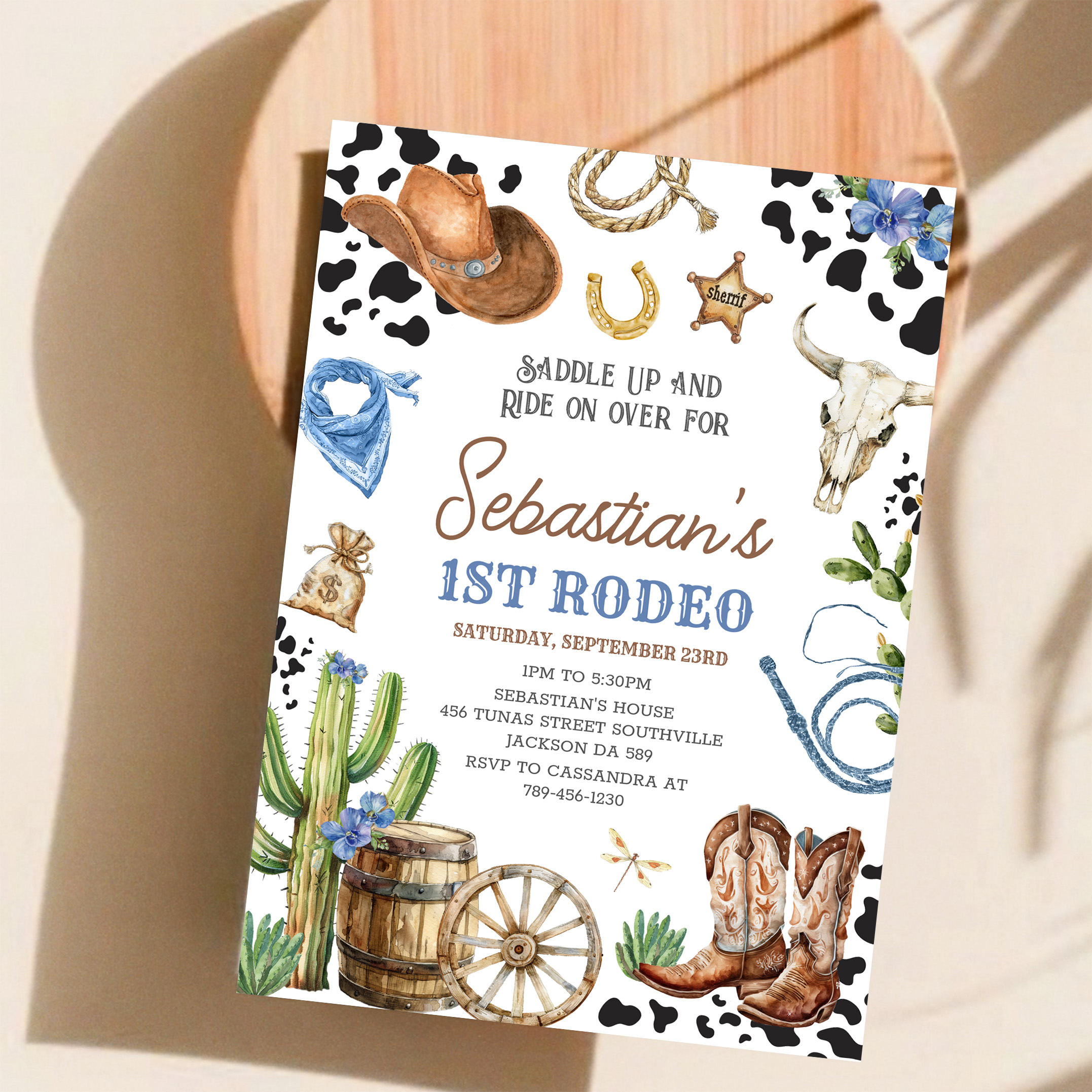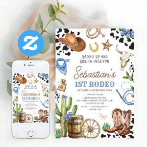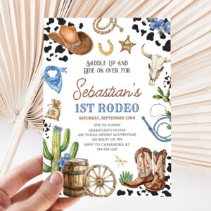 Wild West Cowboy First Rodeo Birthday Invitation