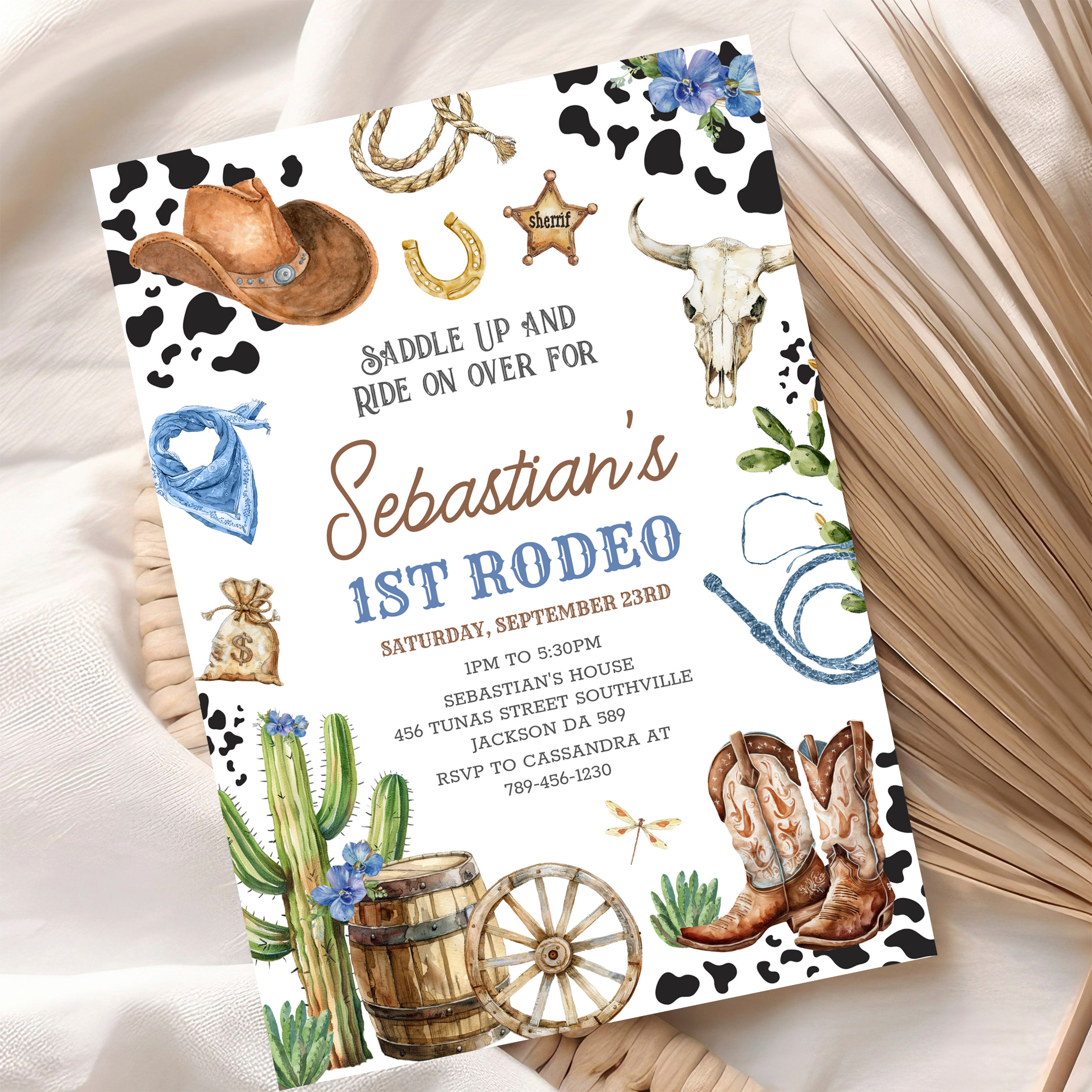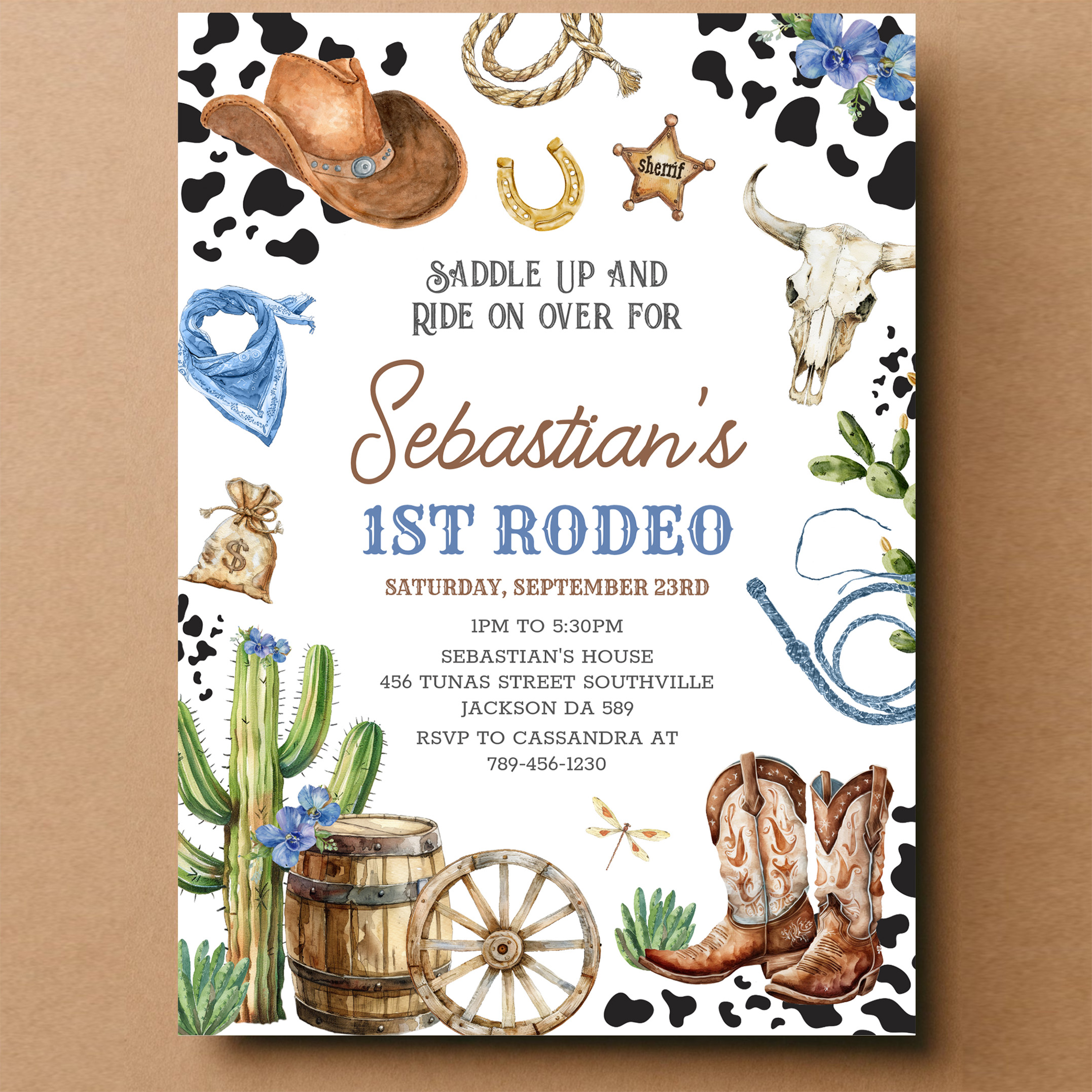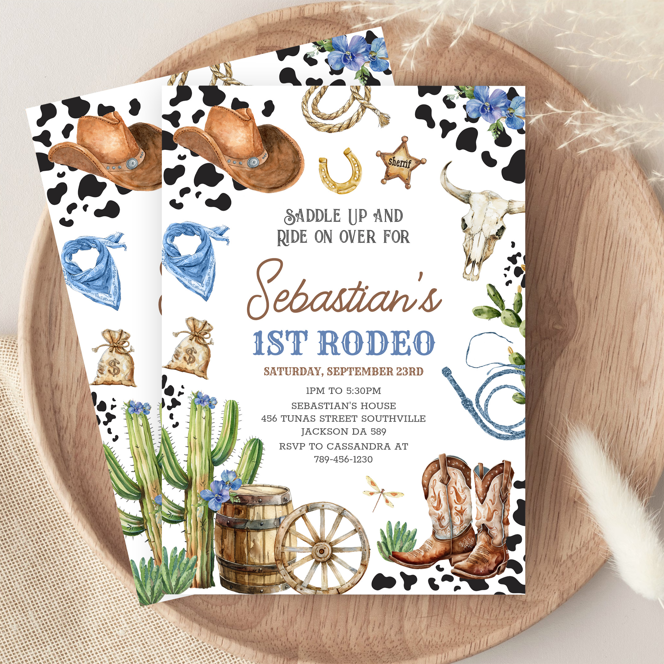 Wild West Cowboy First Rodeo Birthday Invitation